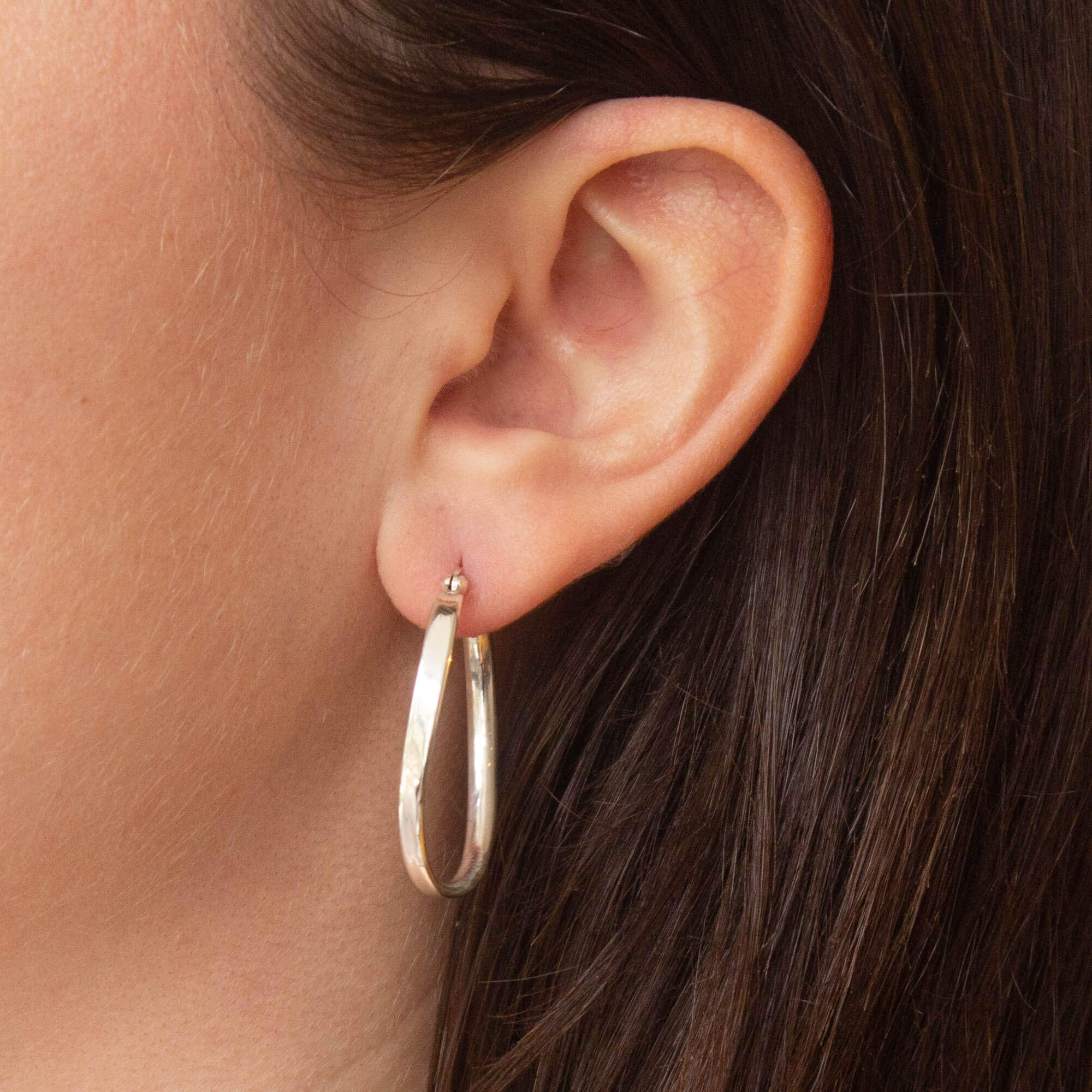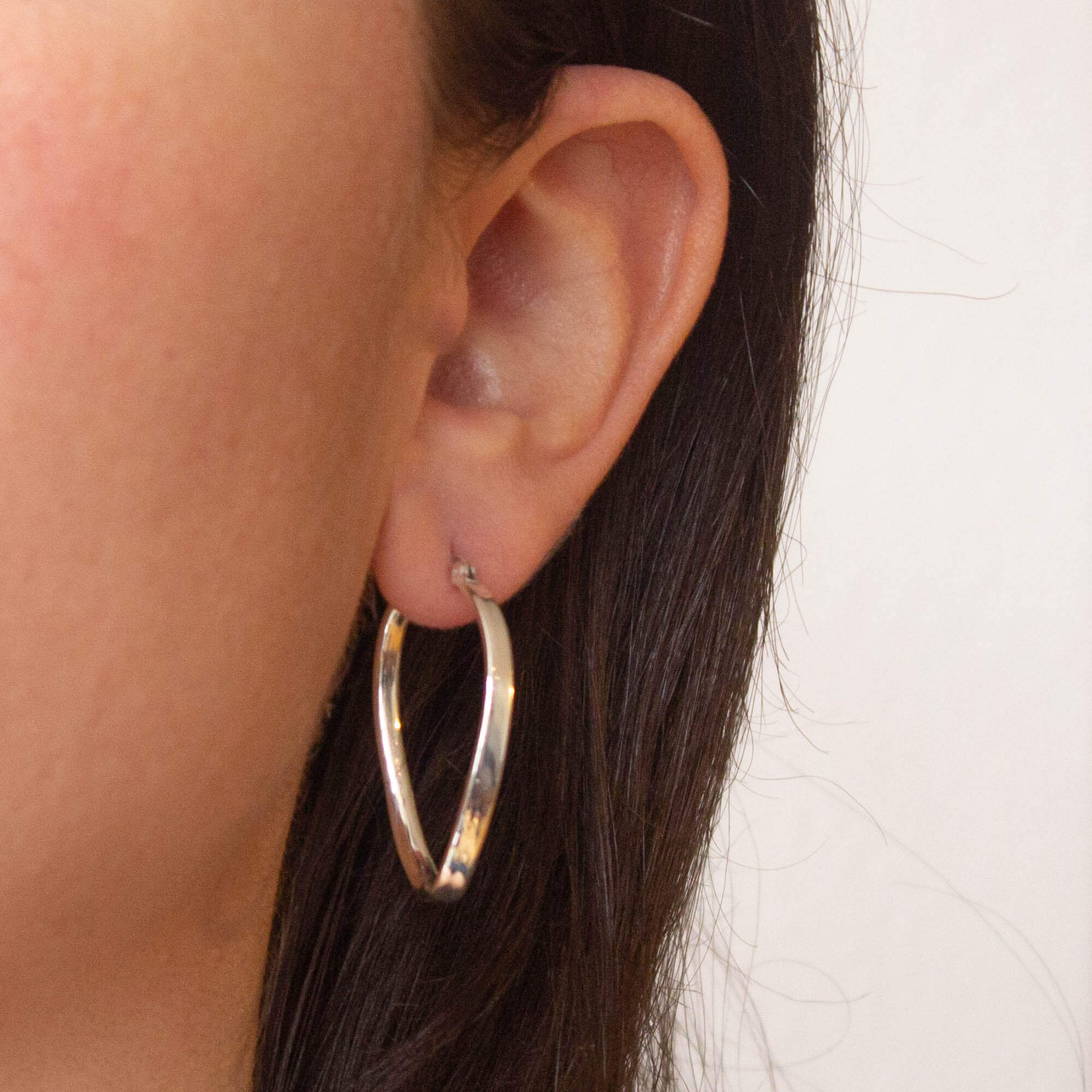 Minimalist and elegant oval hoop earrings, with a subtle twist design.