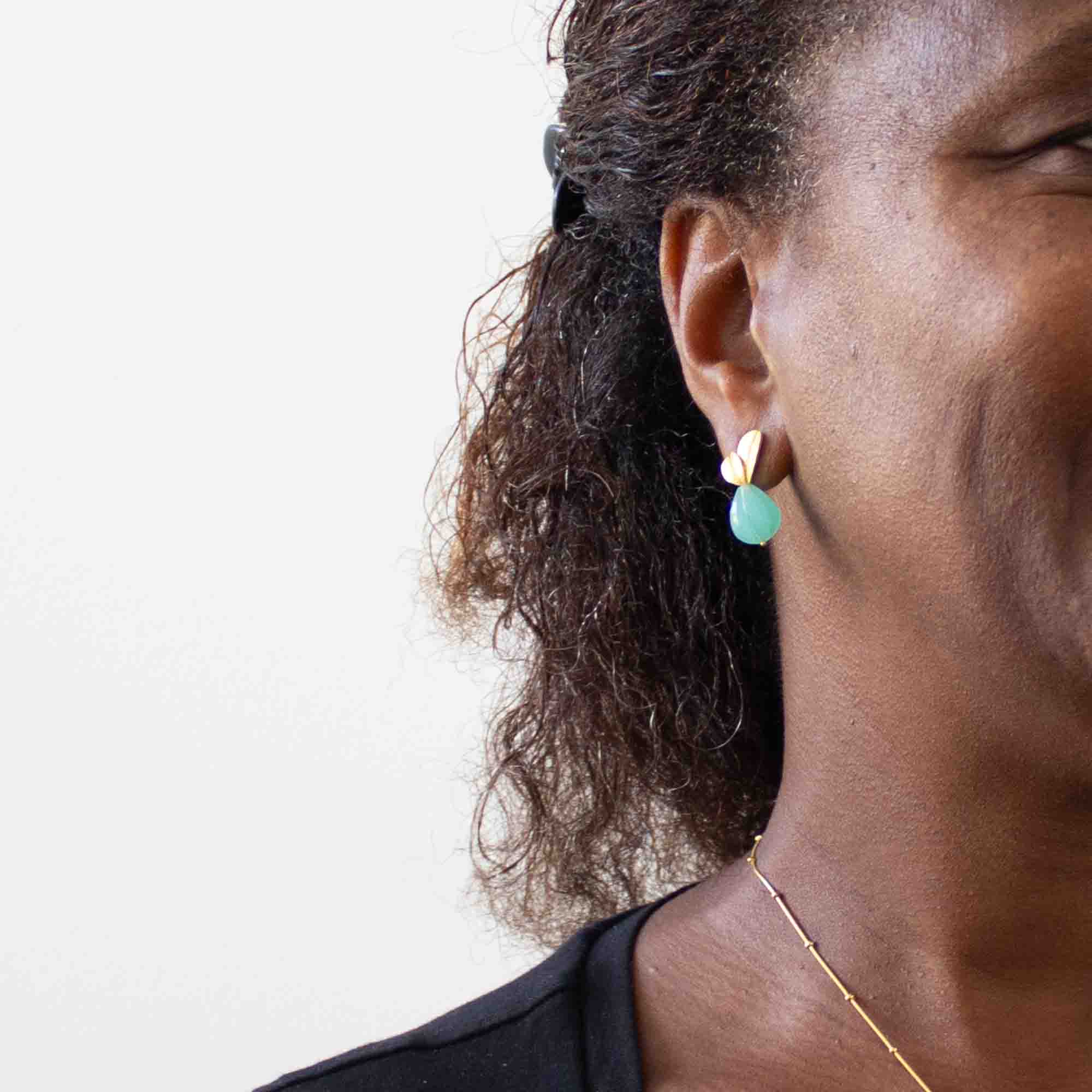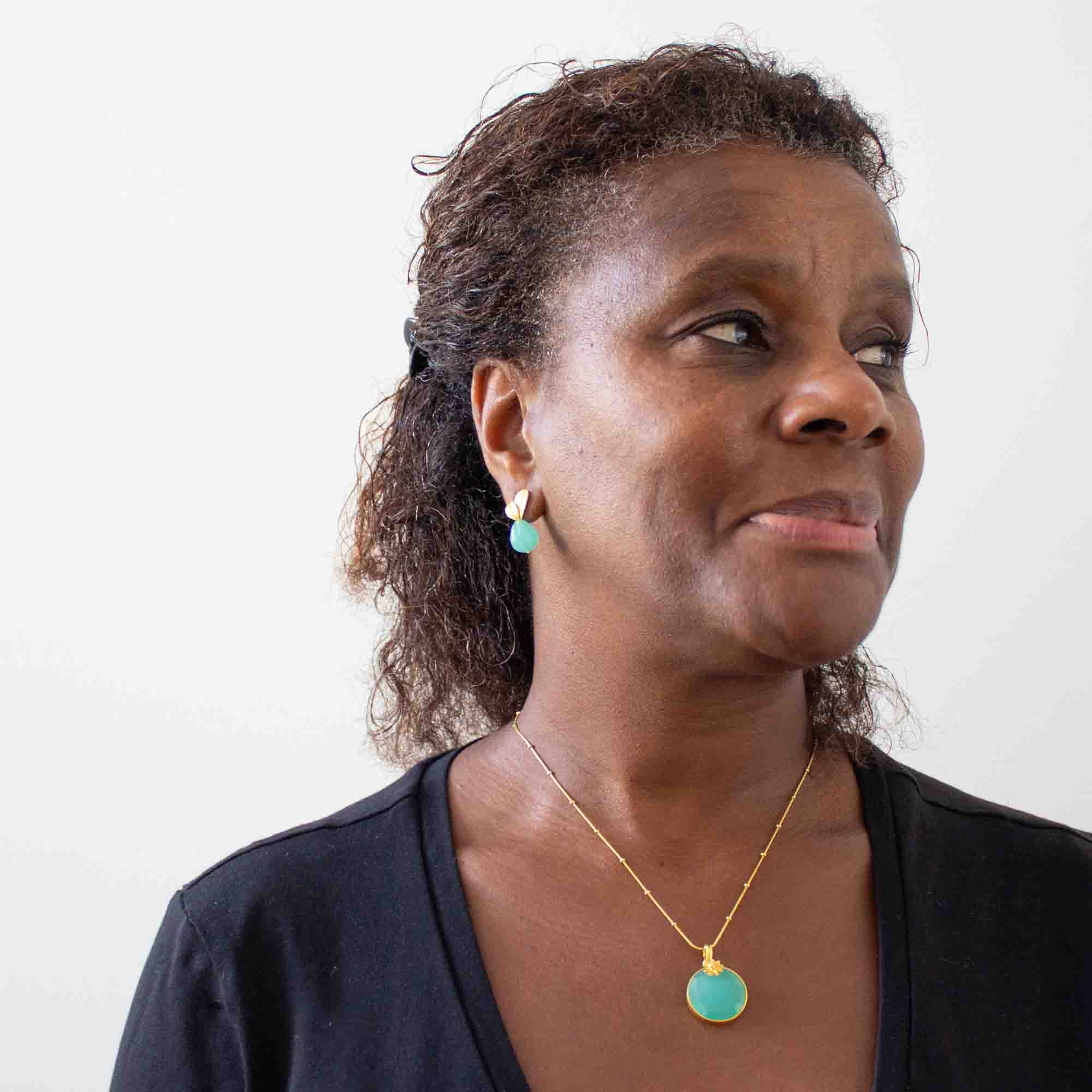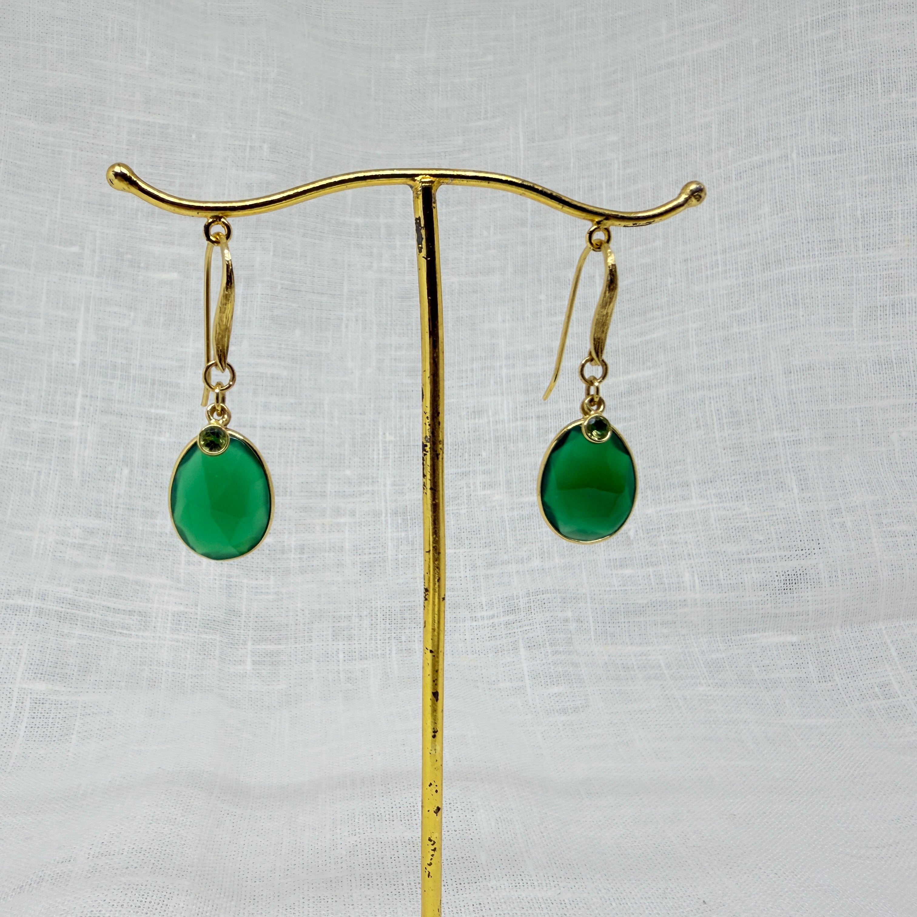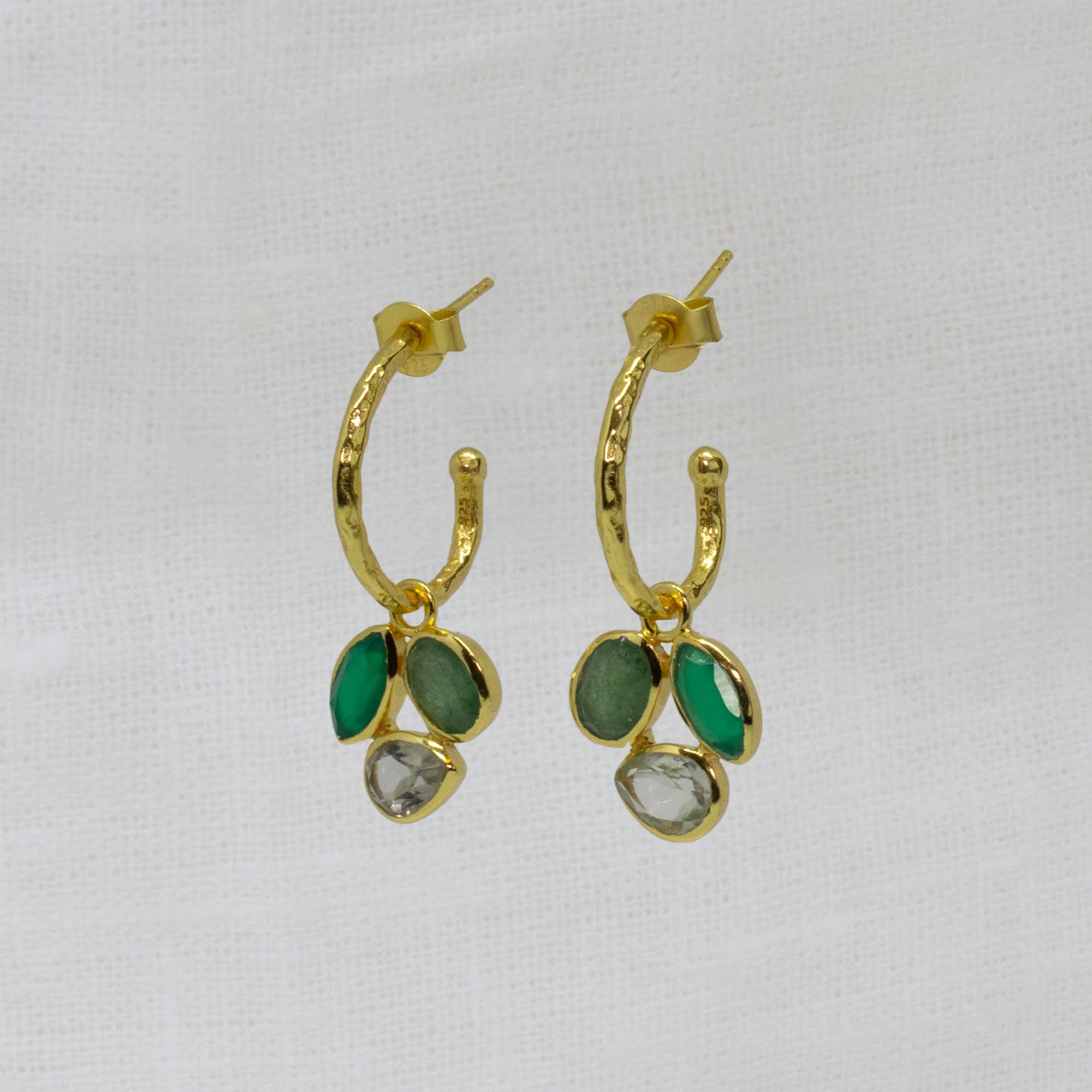 Hammered Gold and Green Gemstone Charm Hoop Earrings