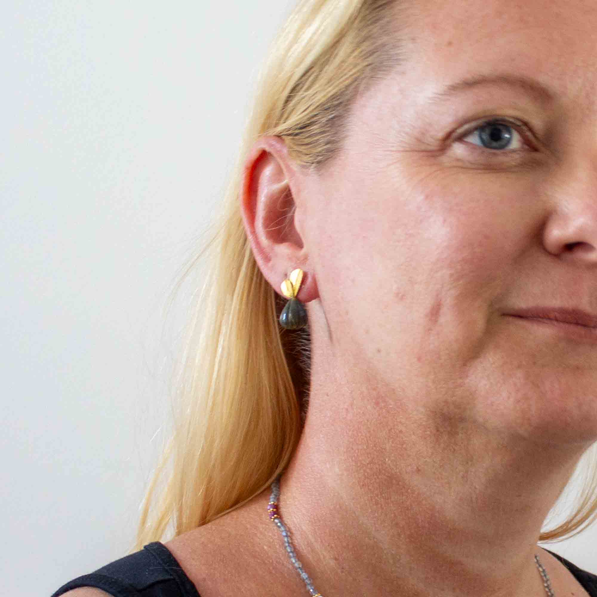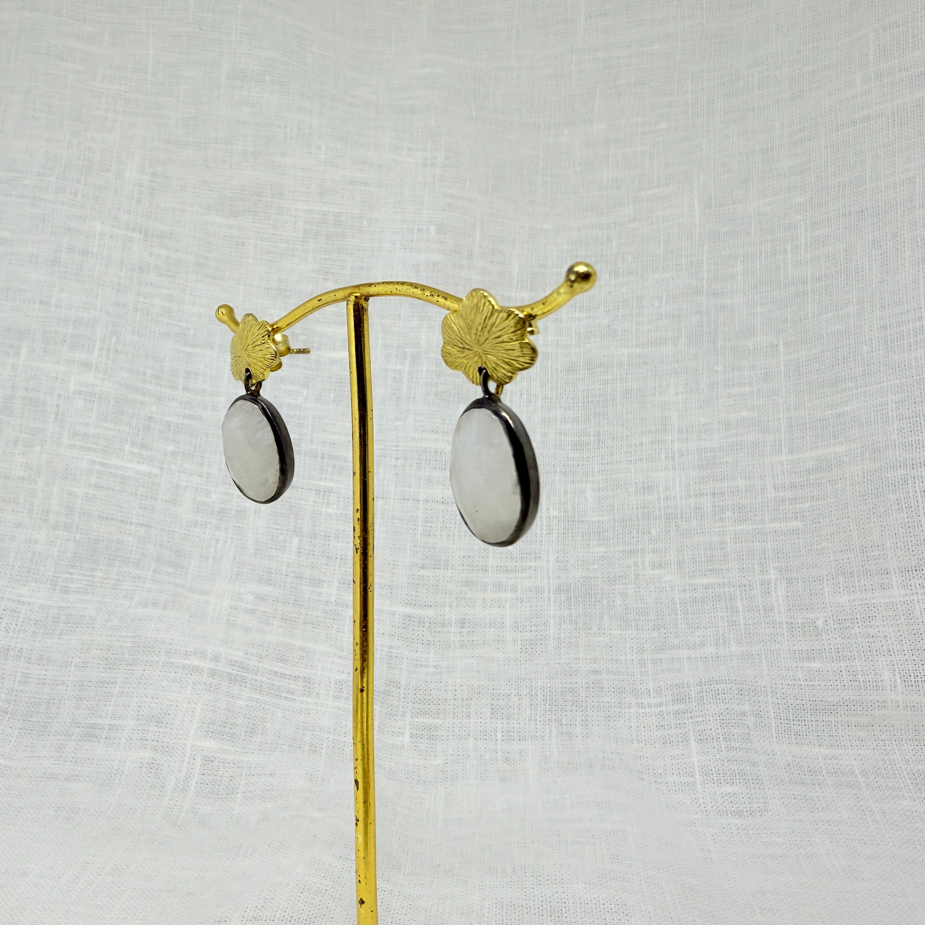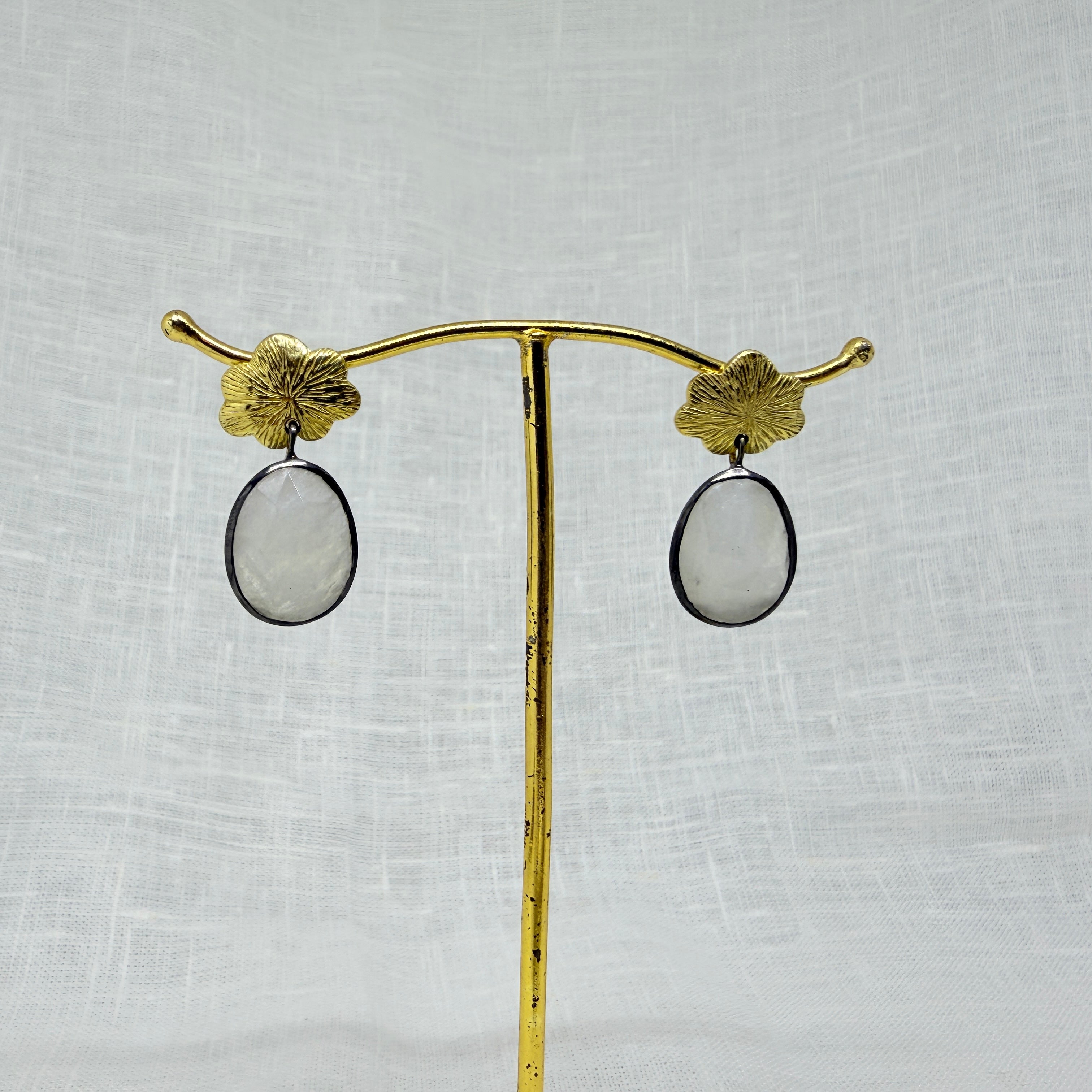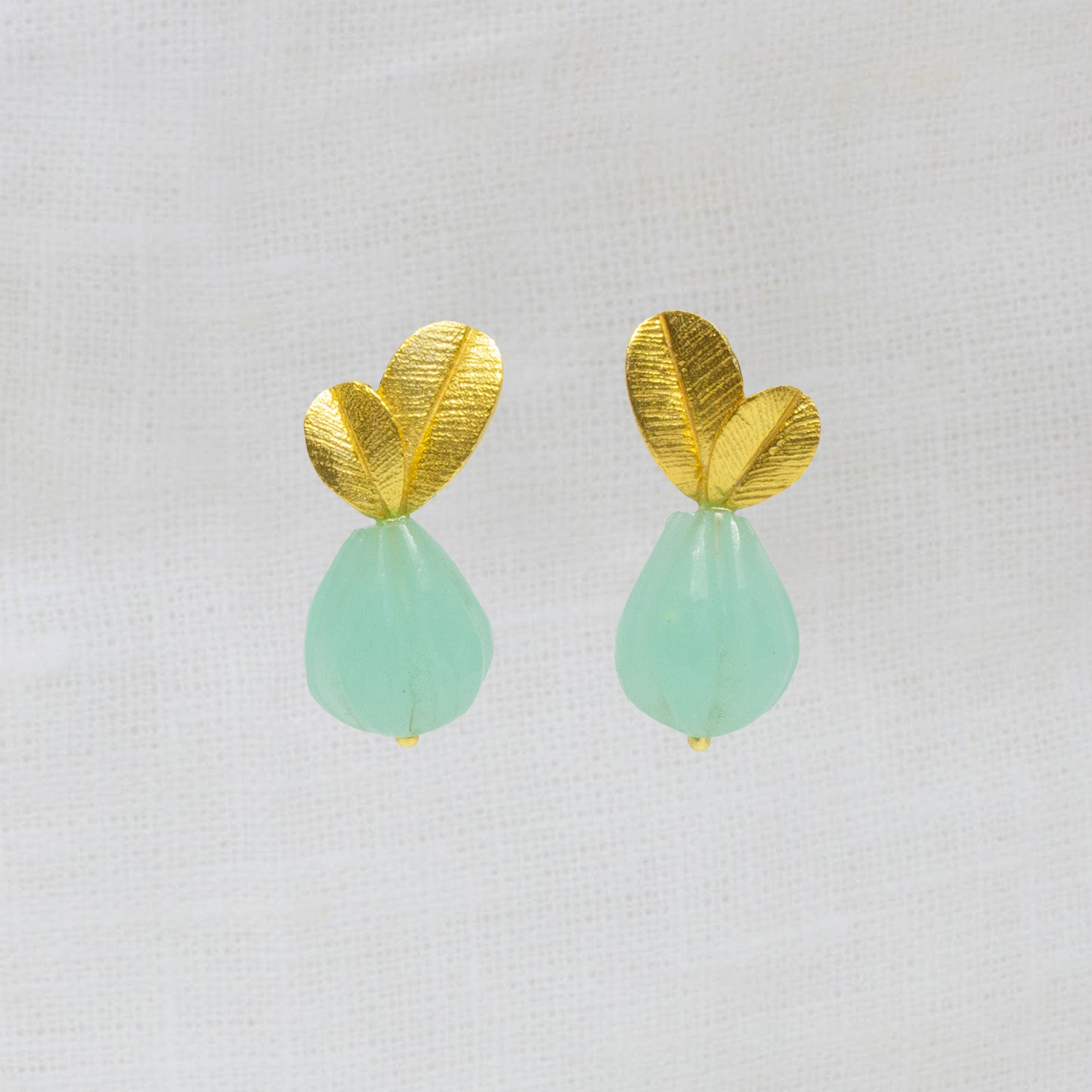 Hammered Gold and Green Gemstone Charm Hoop Earrings