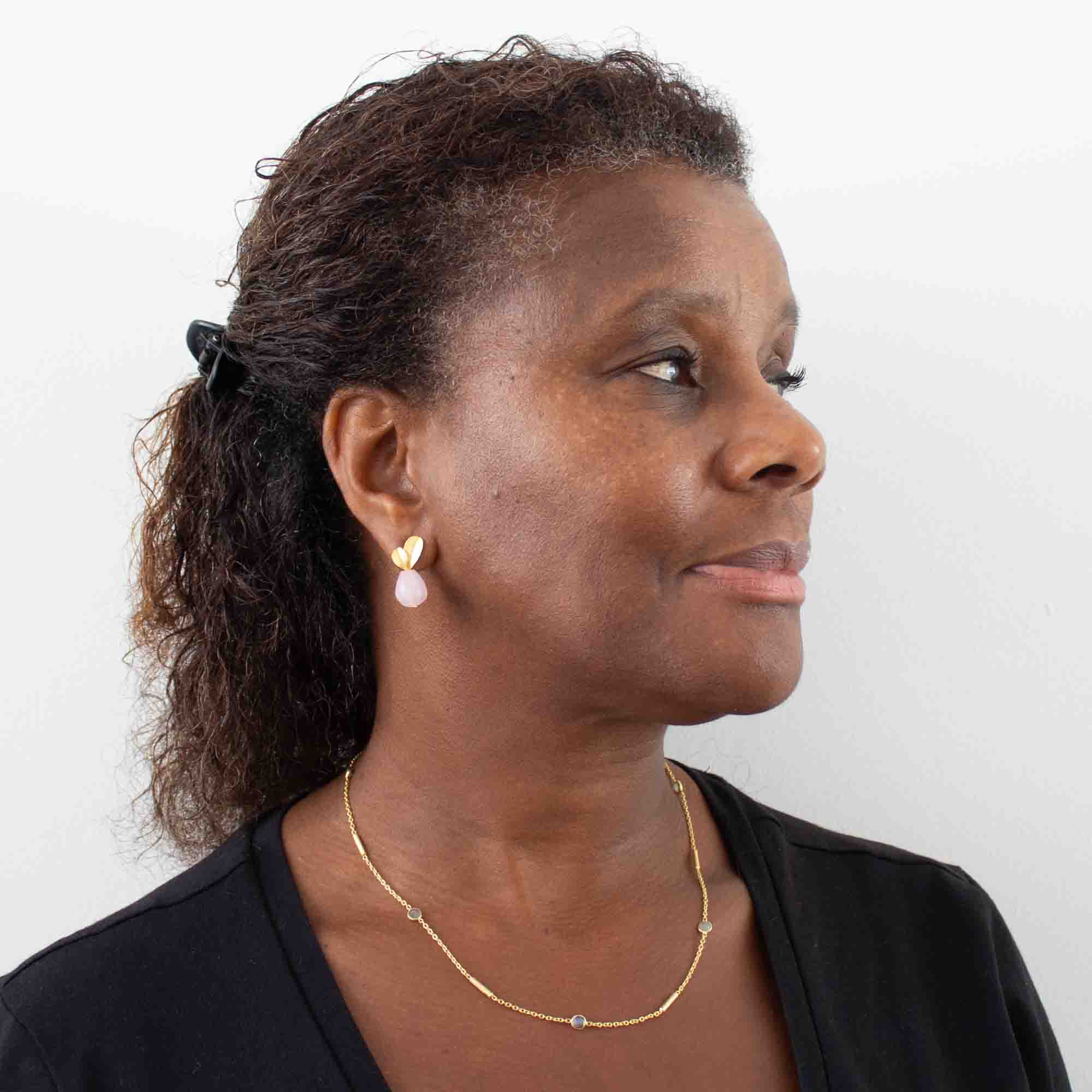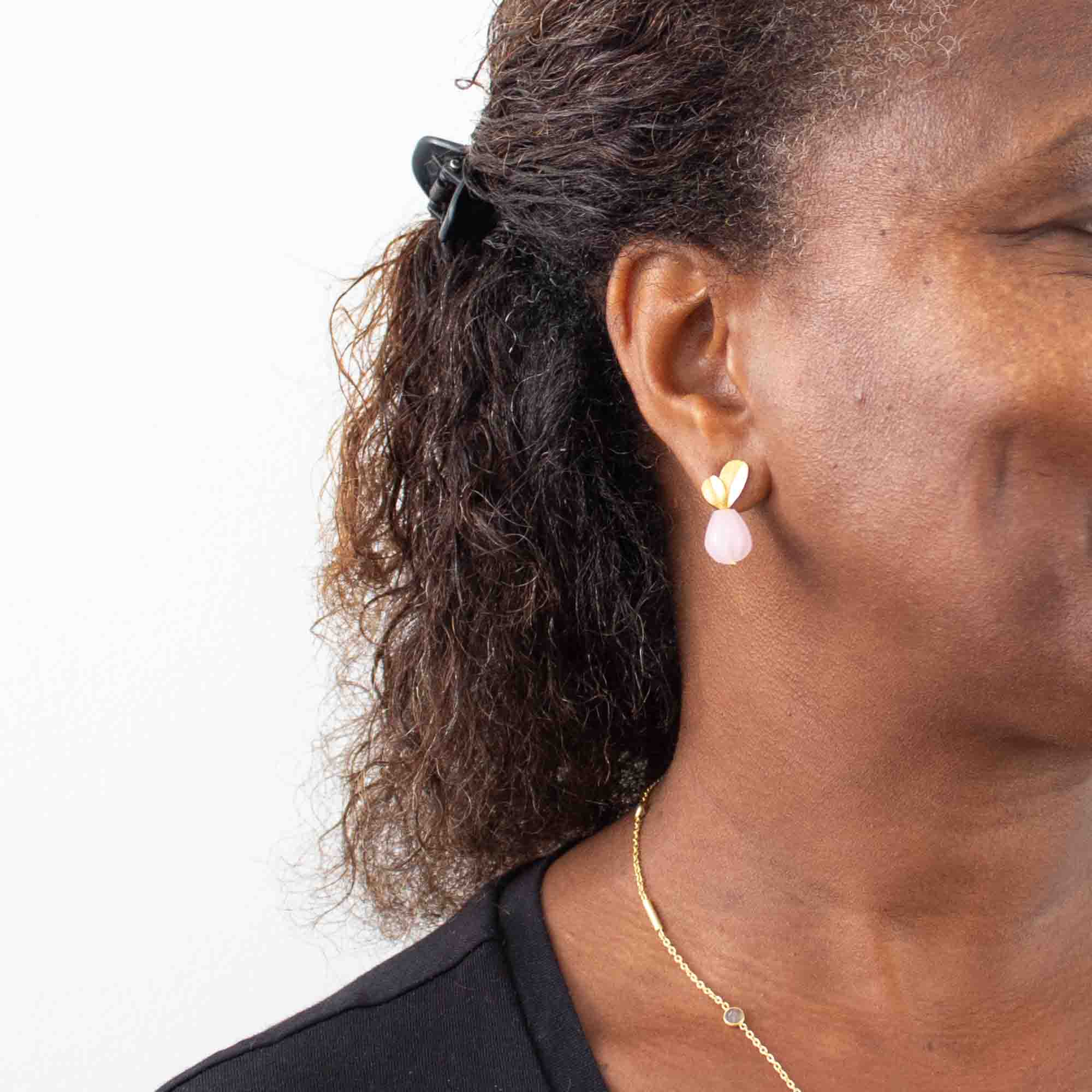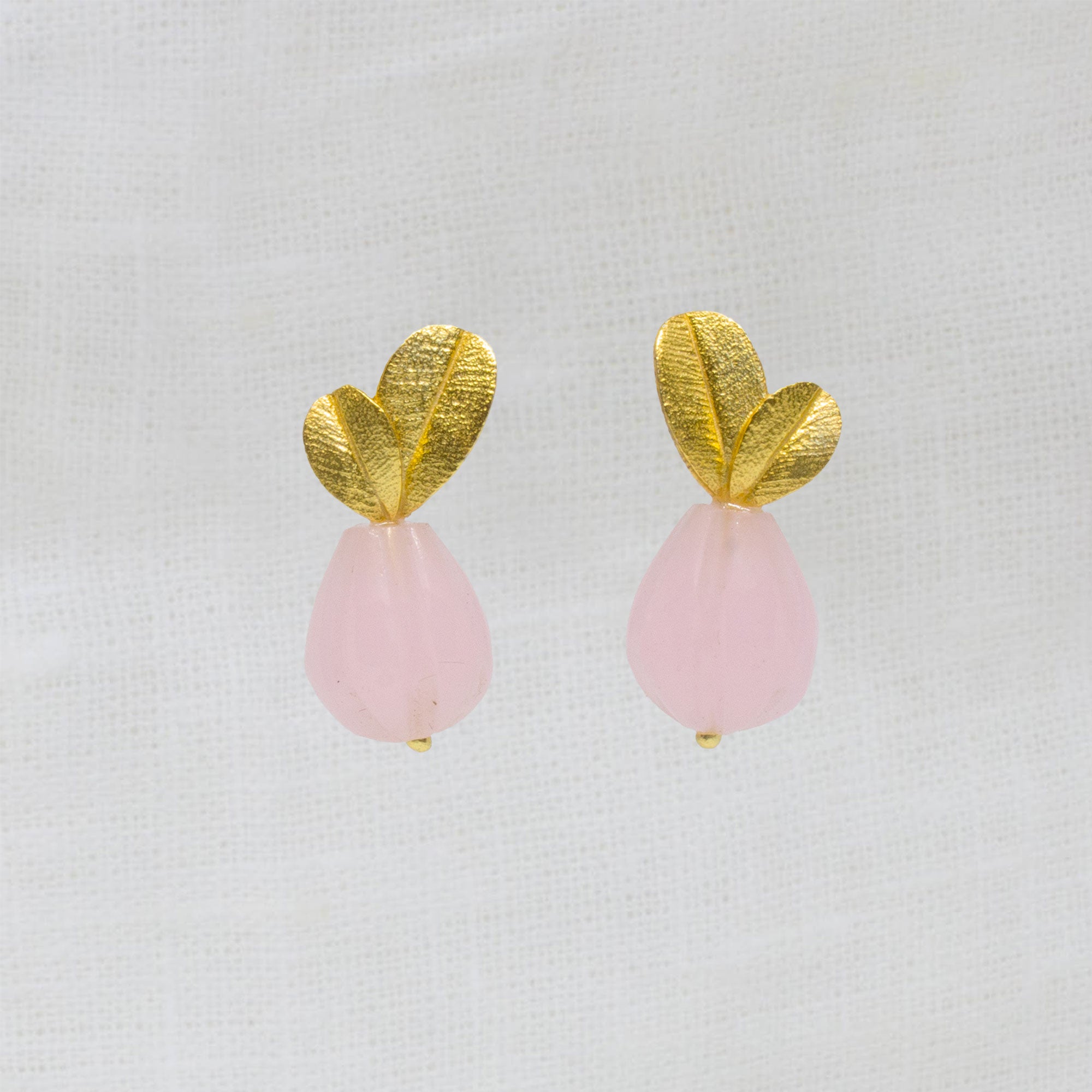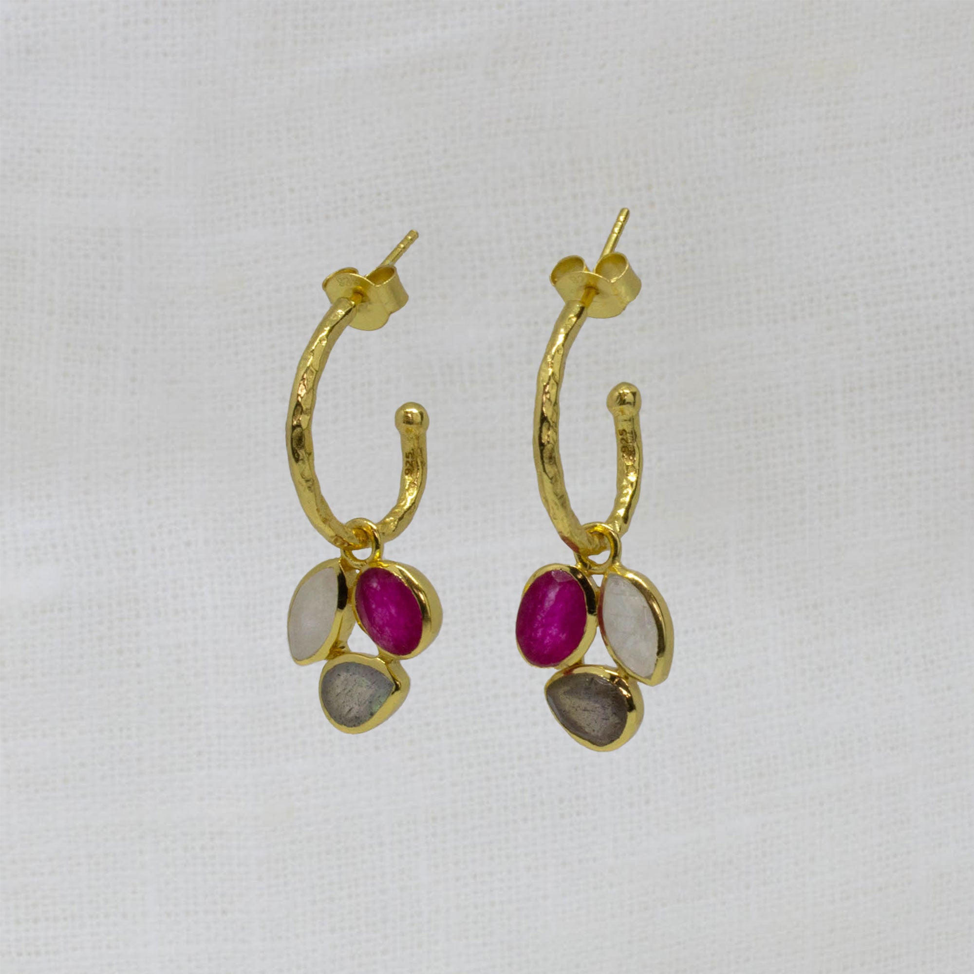 Hammered Gold and Pink Gemstone Charm Hoop Earrings