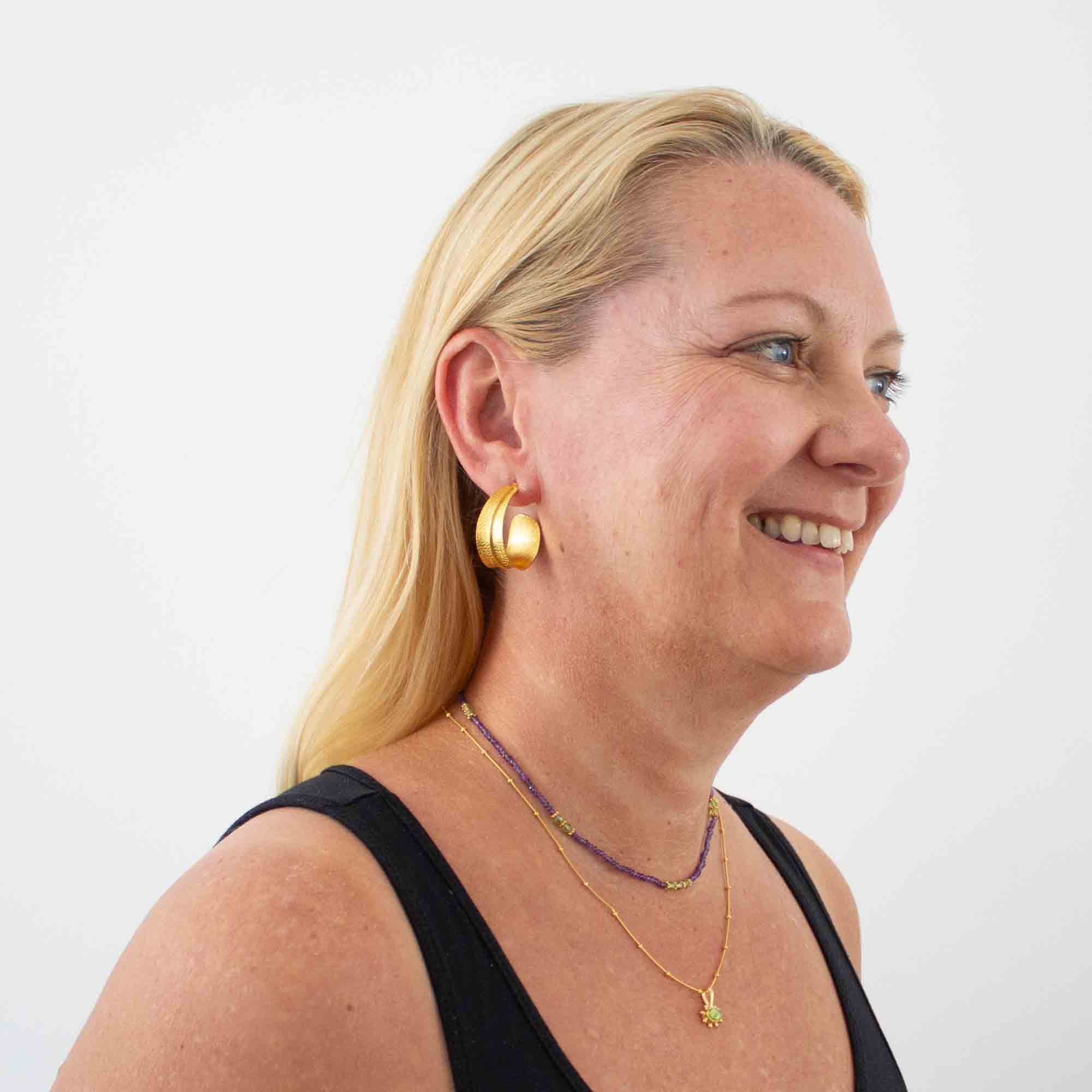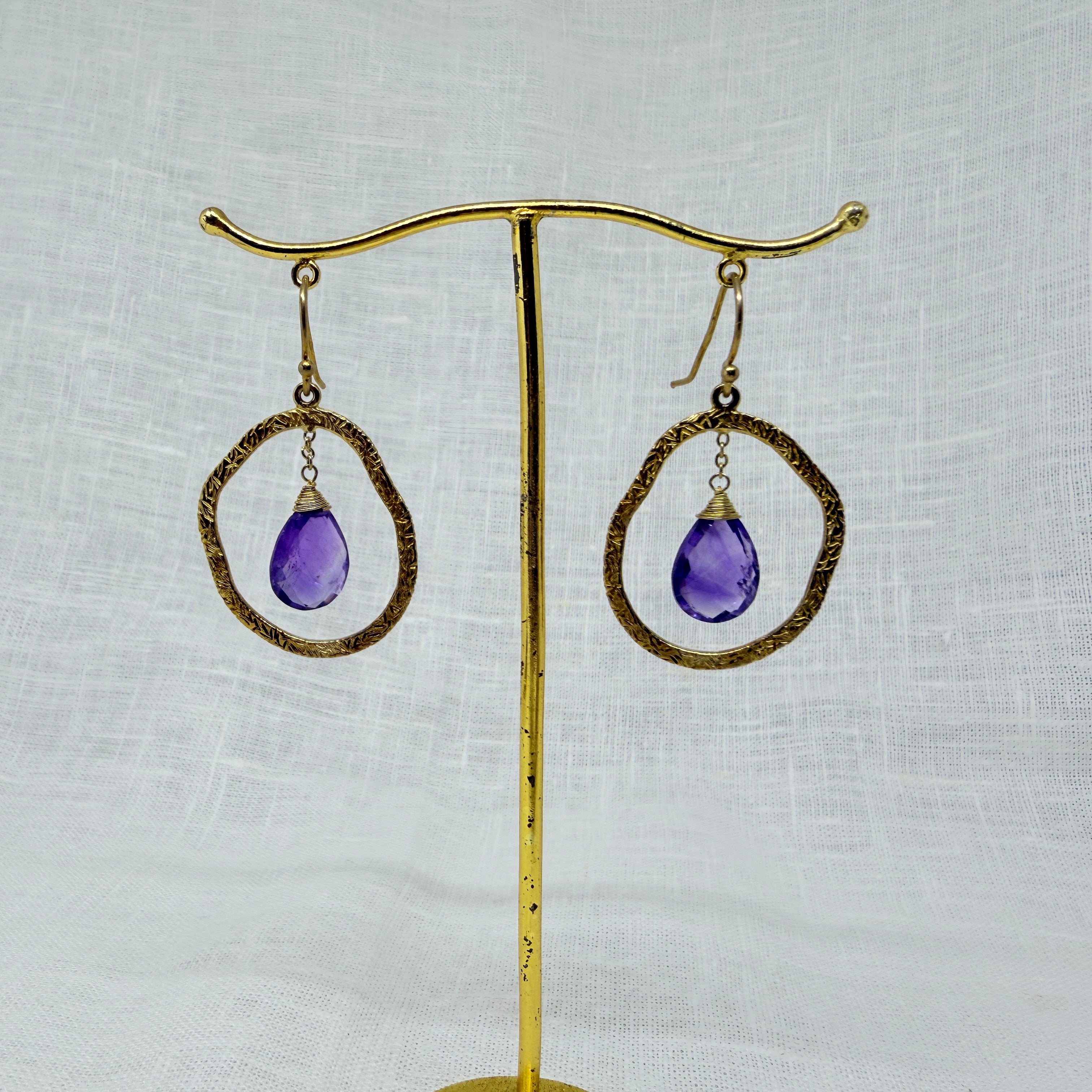 Textured Gold Vermeil and Amethyst Dangle Earrings
