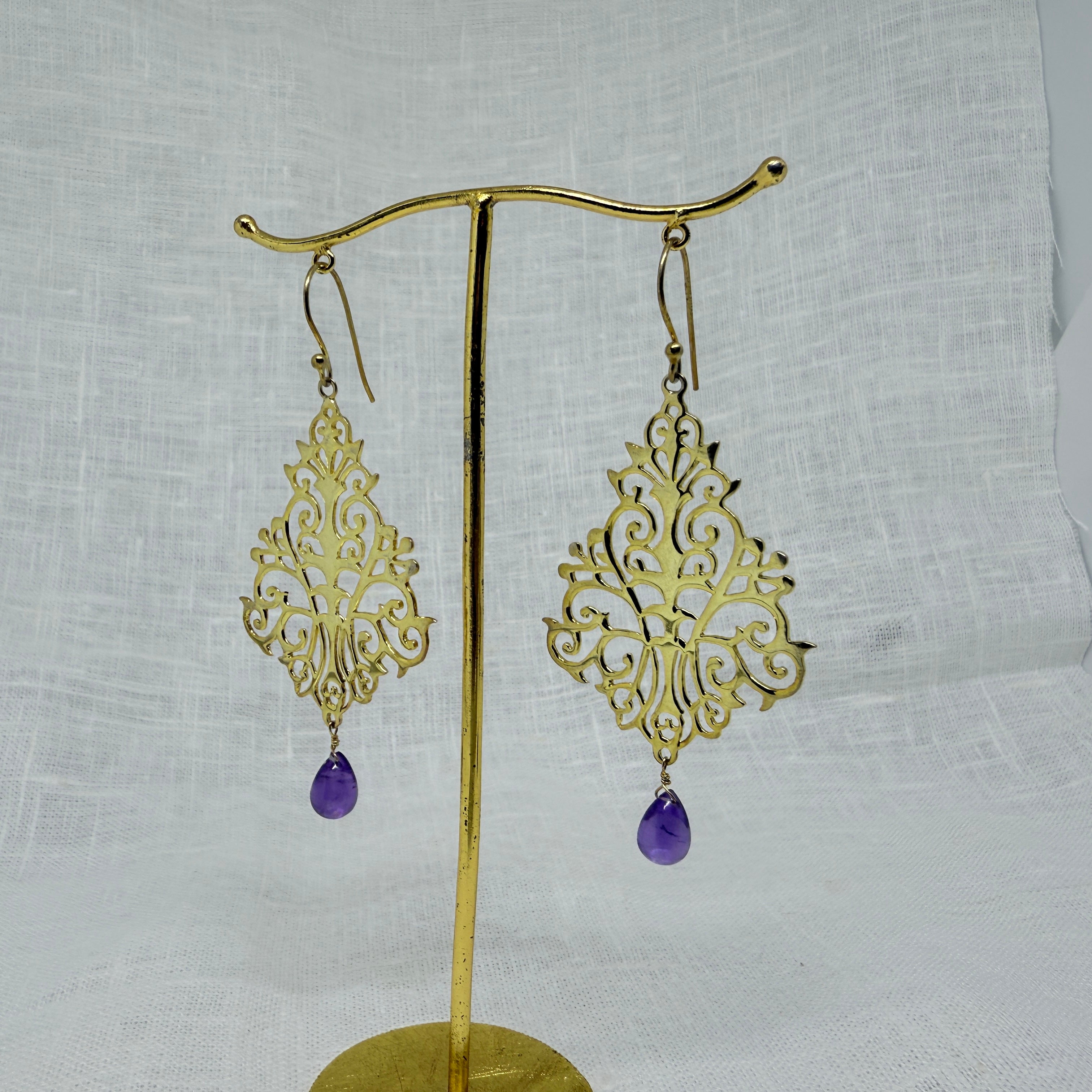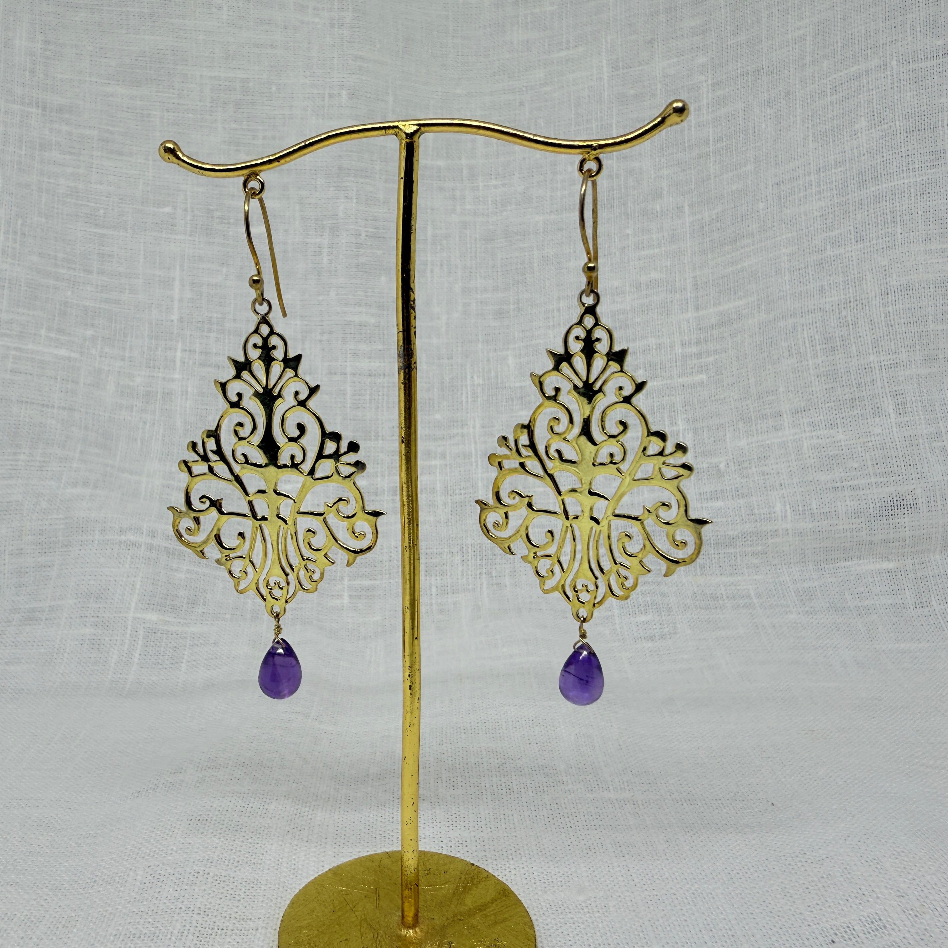 Large Teardrop Filigree and Amethyst Earrings in Gold Vermeil
