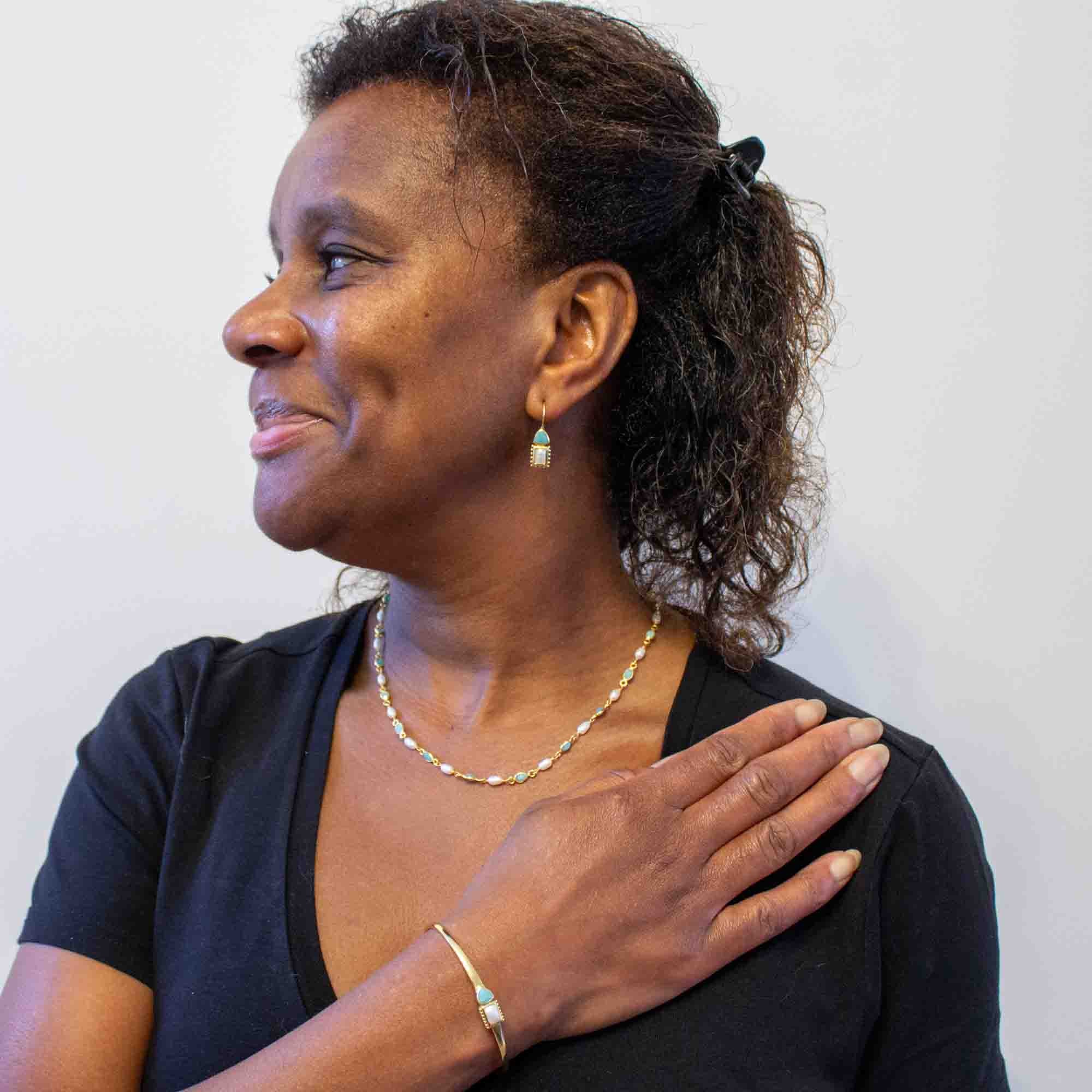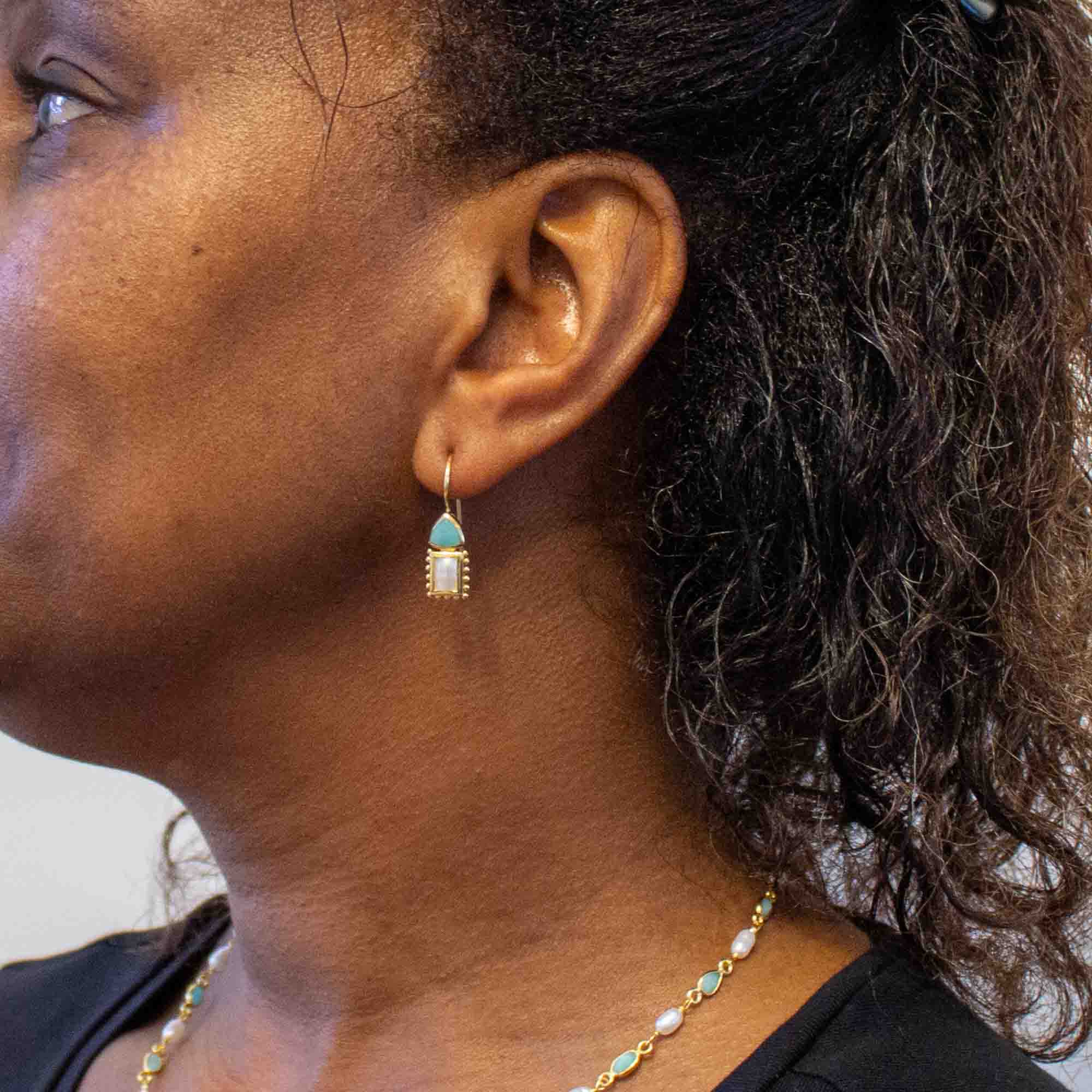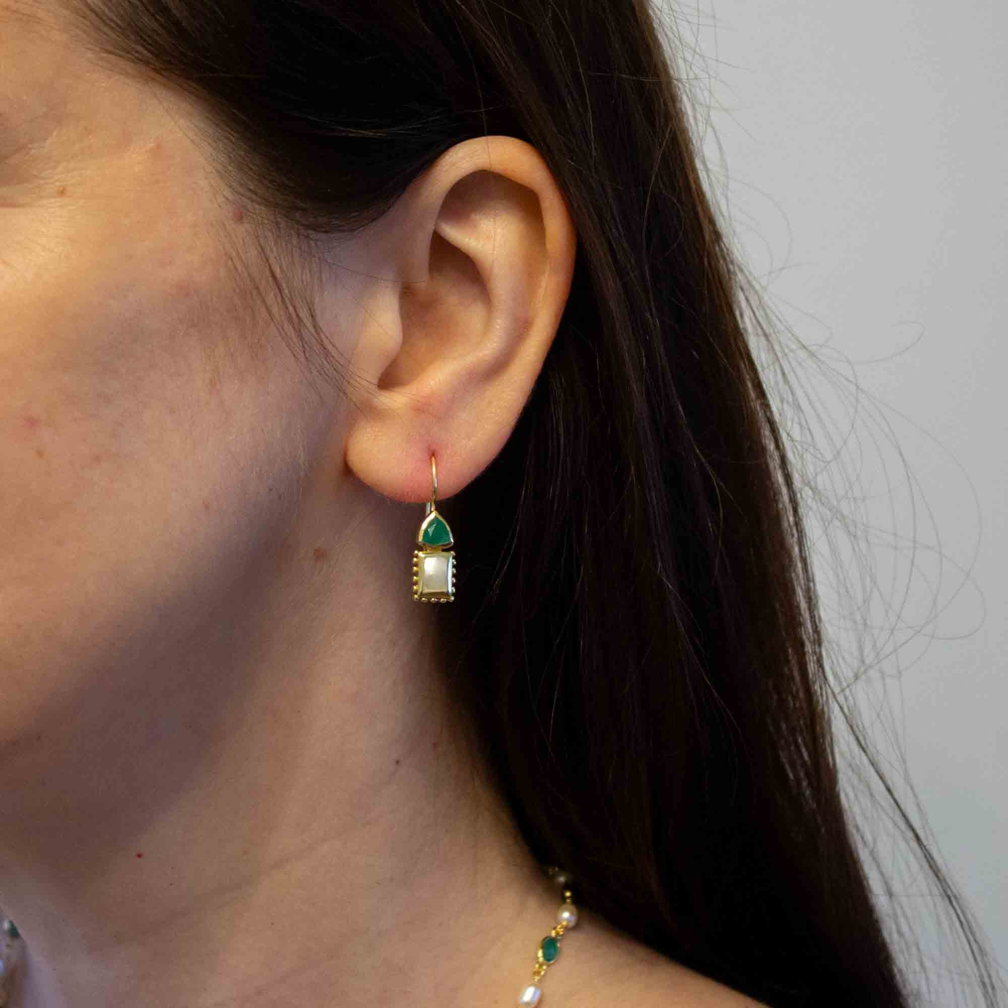 Gemstone and Pearl Lina Earrings in Gold Vermeil