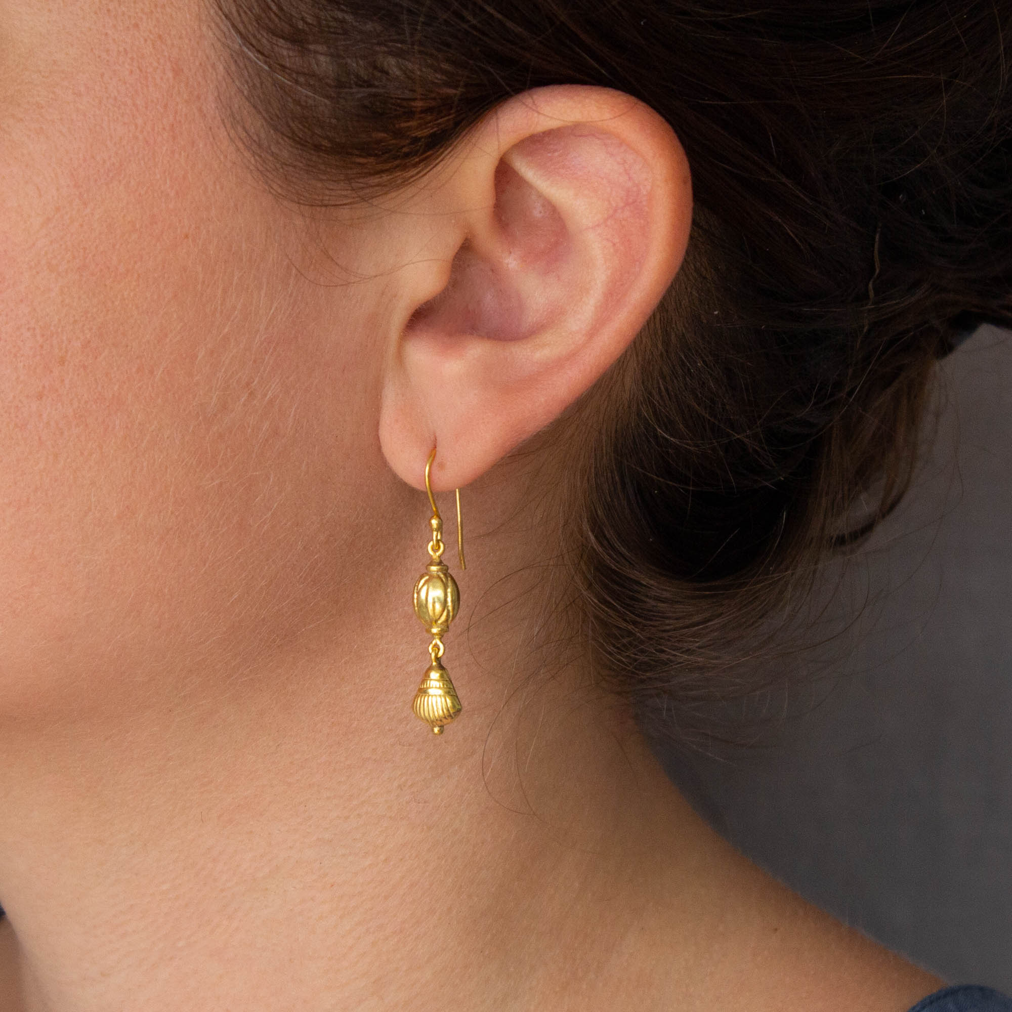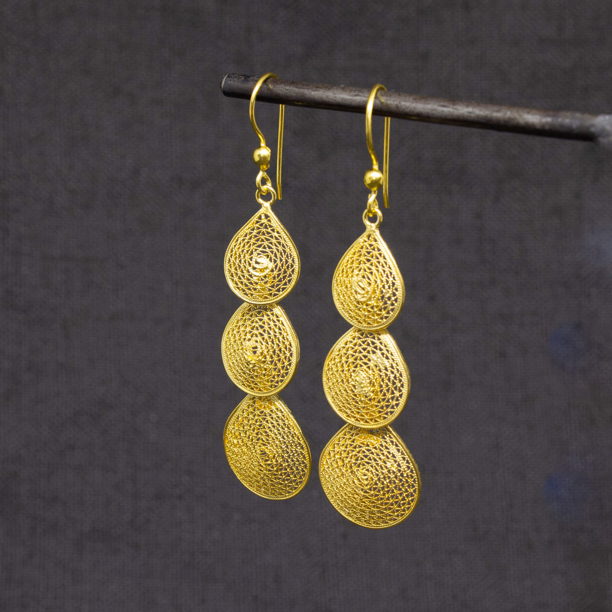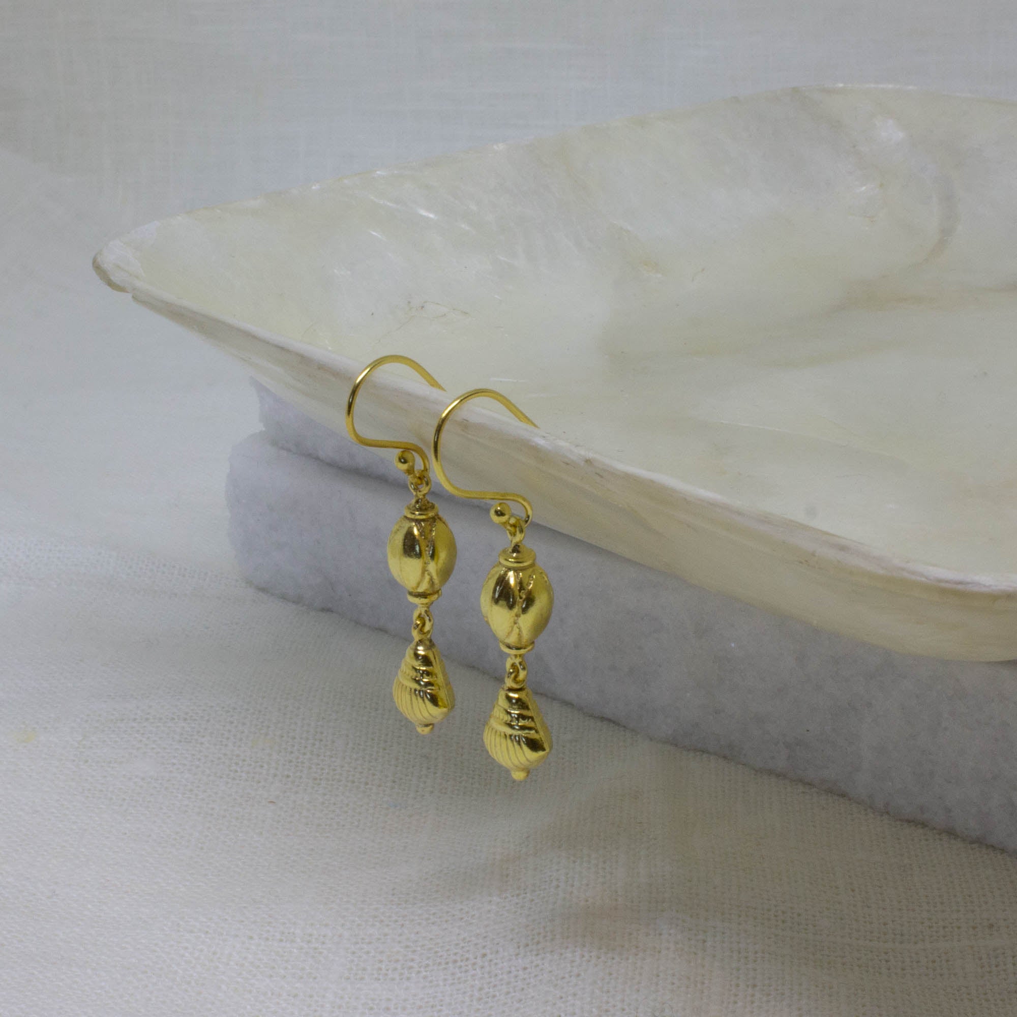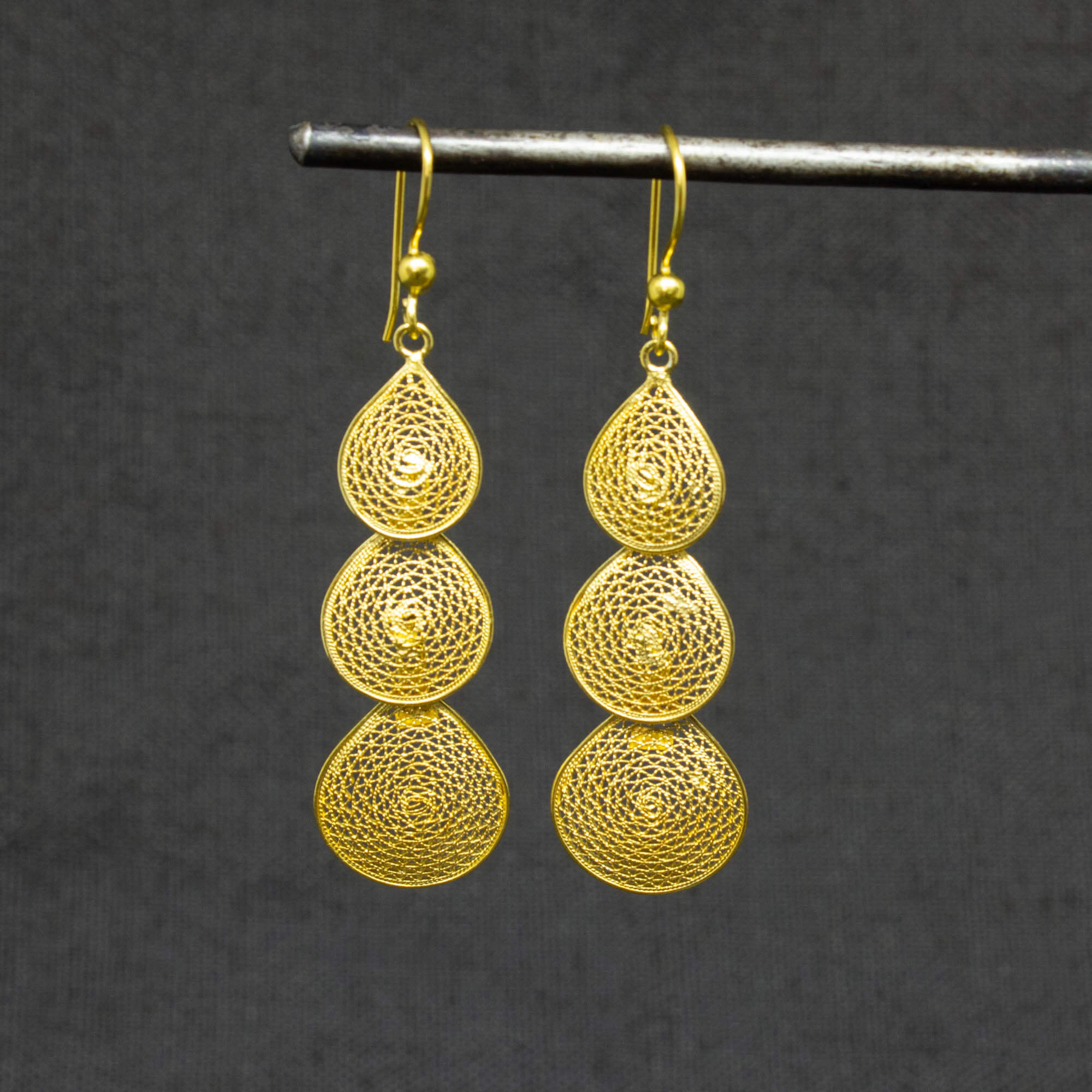 Gold Vermeil Granulation Earrings With Arrow Drop
