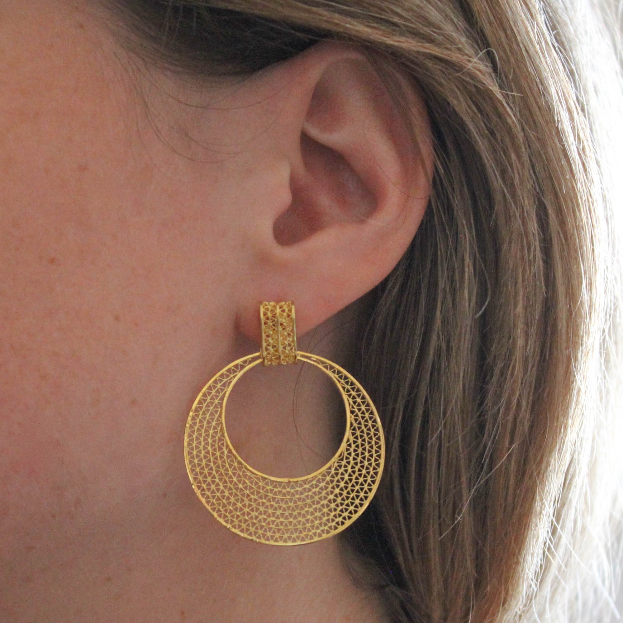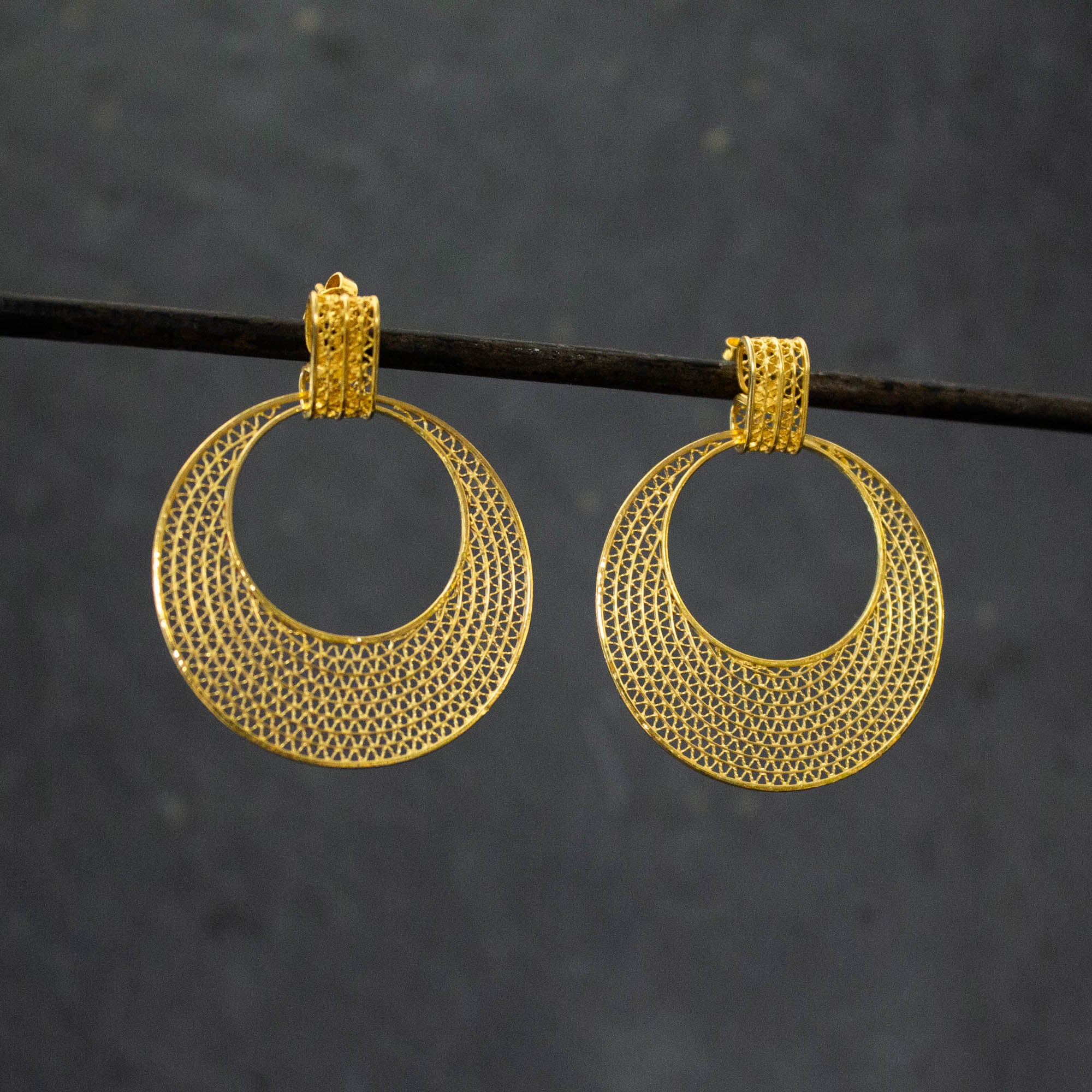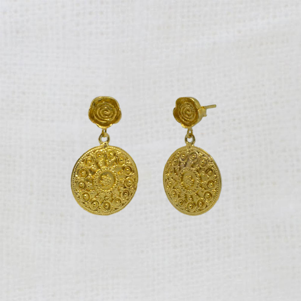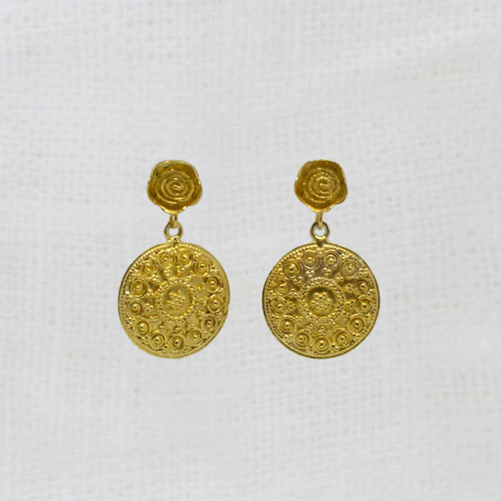 Gold Vermeil Granulation Earrings With Arrow Drop