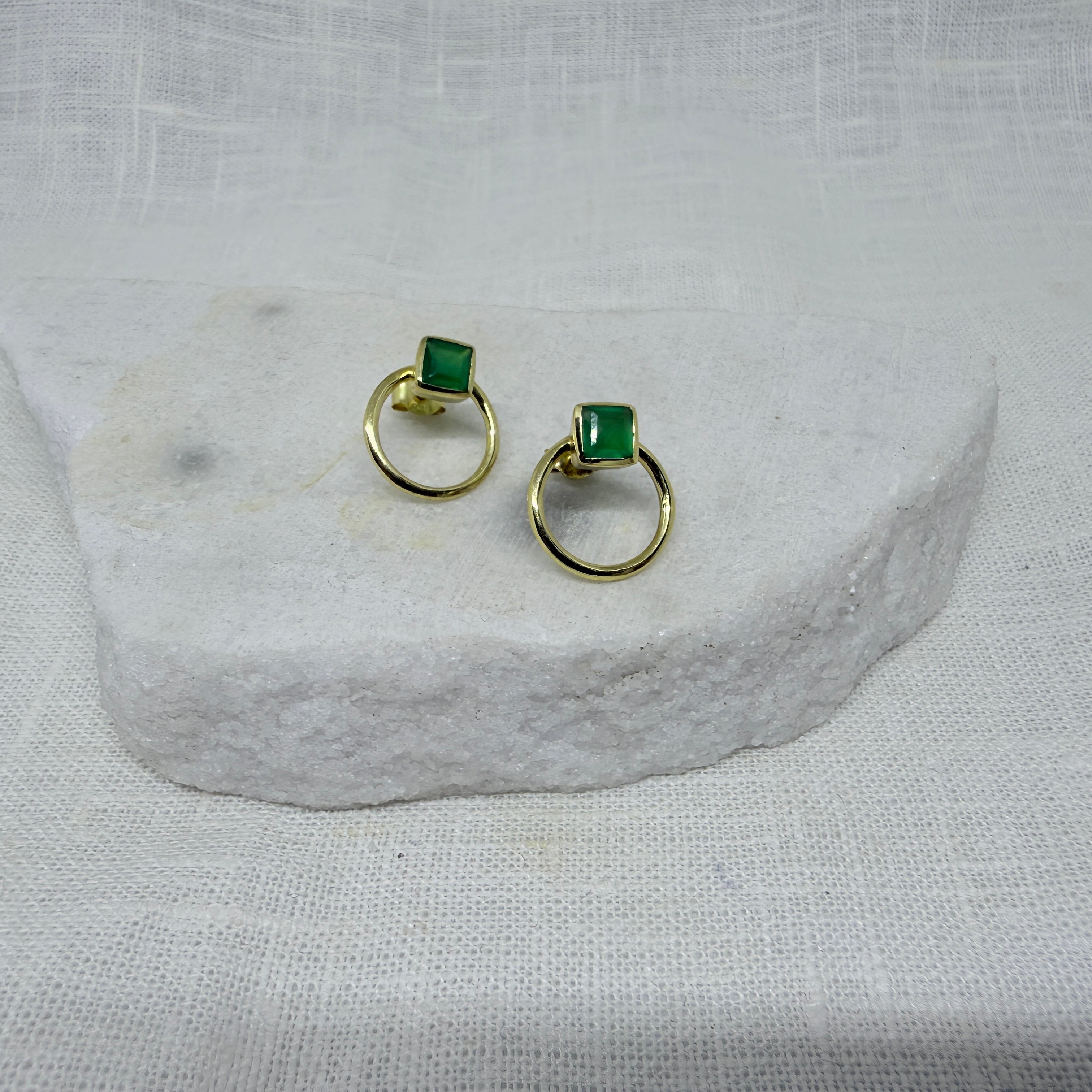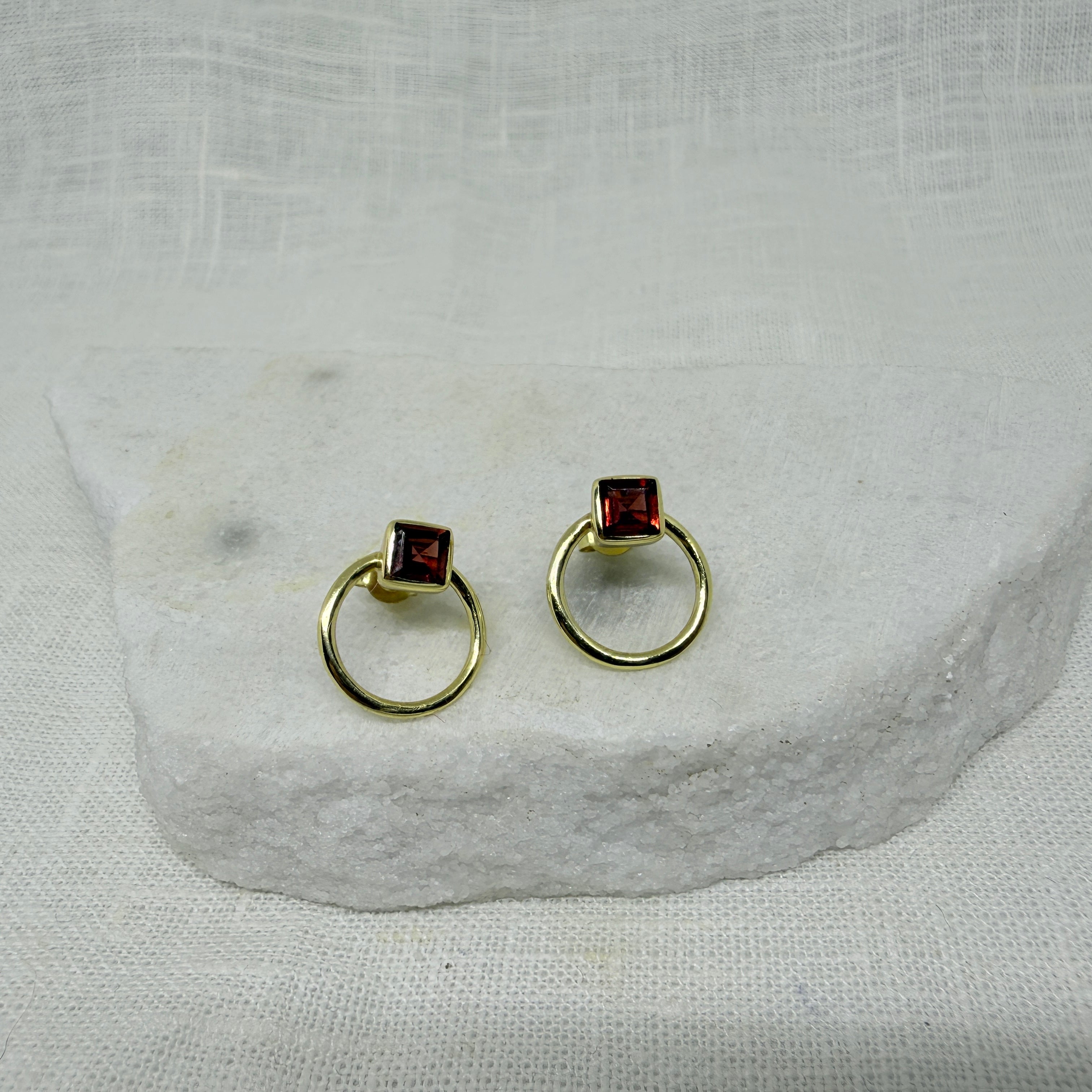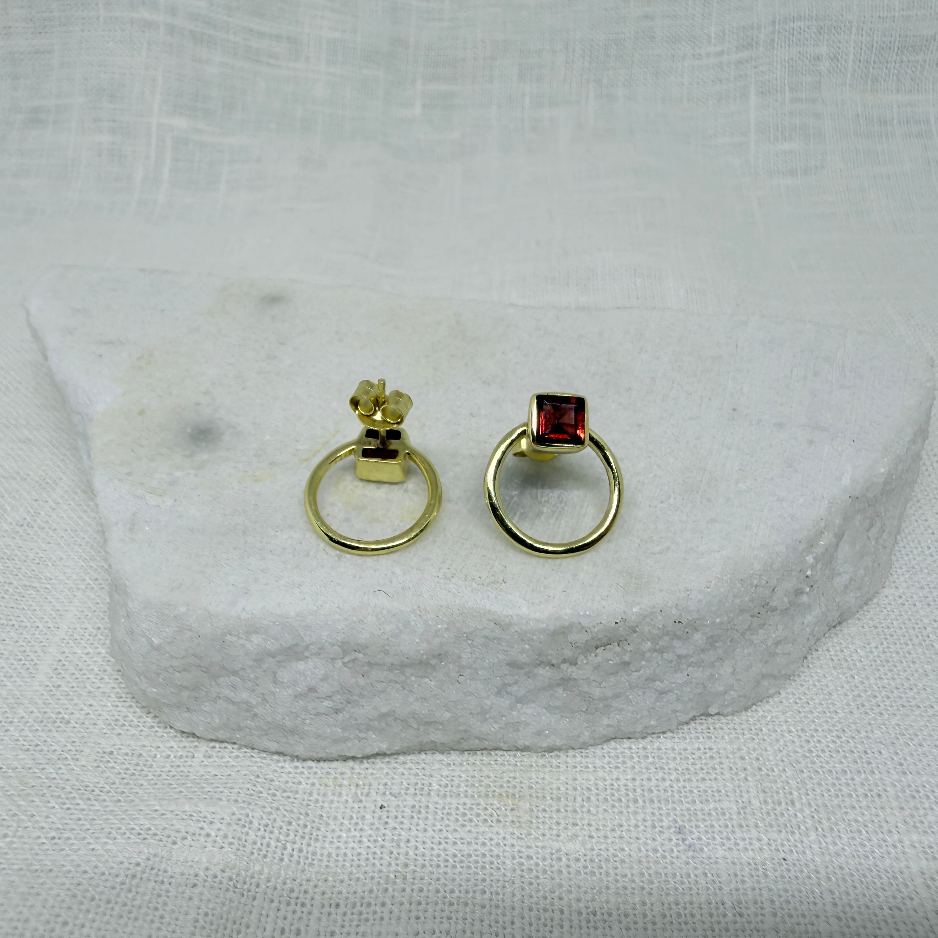 Square Gemstone and Open Circle Stud Earrings