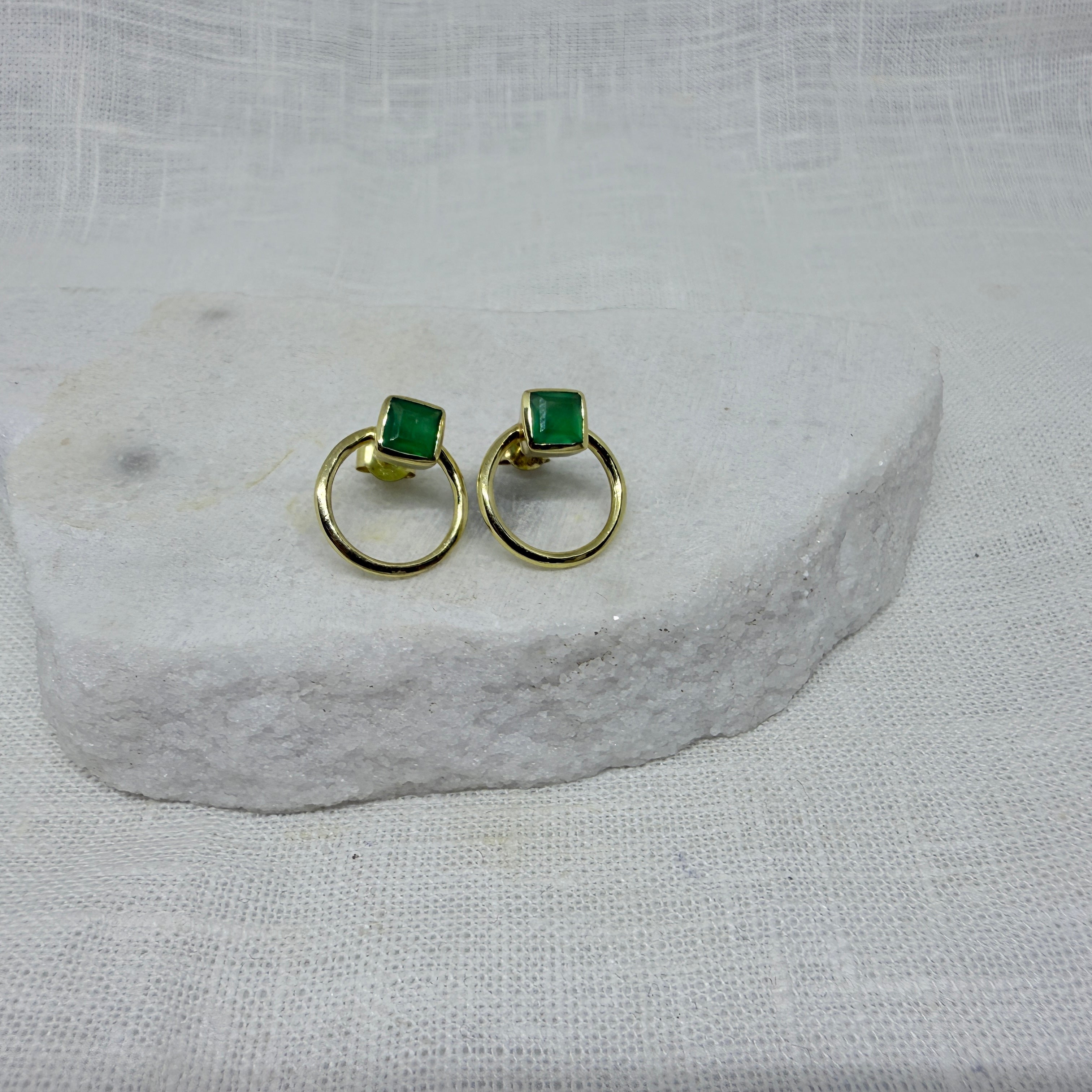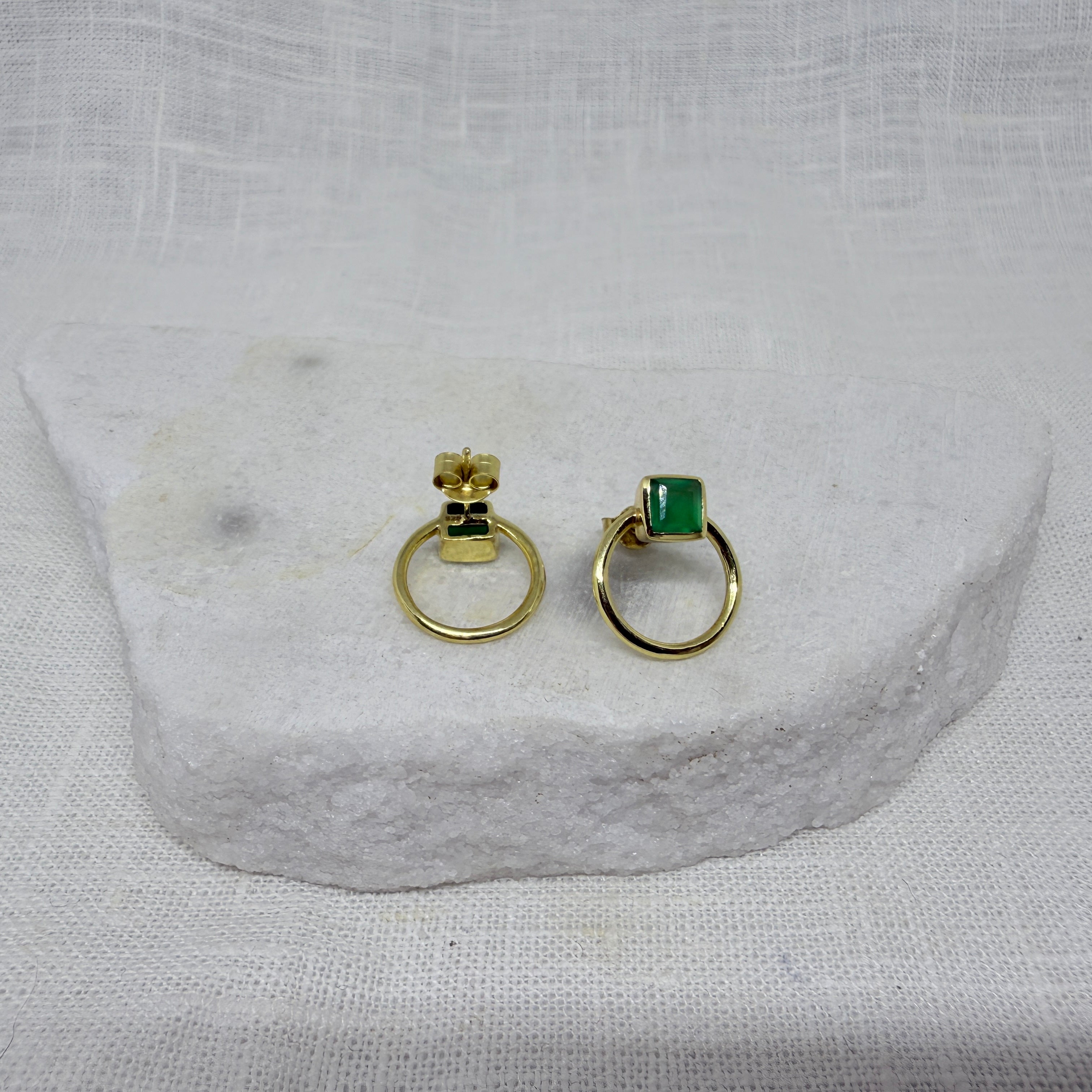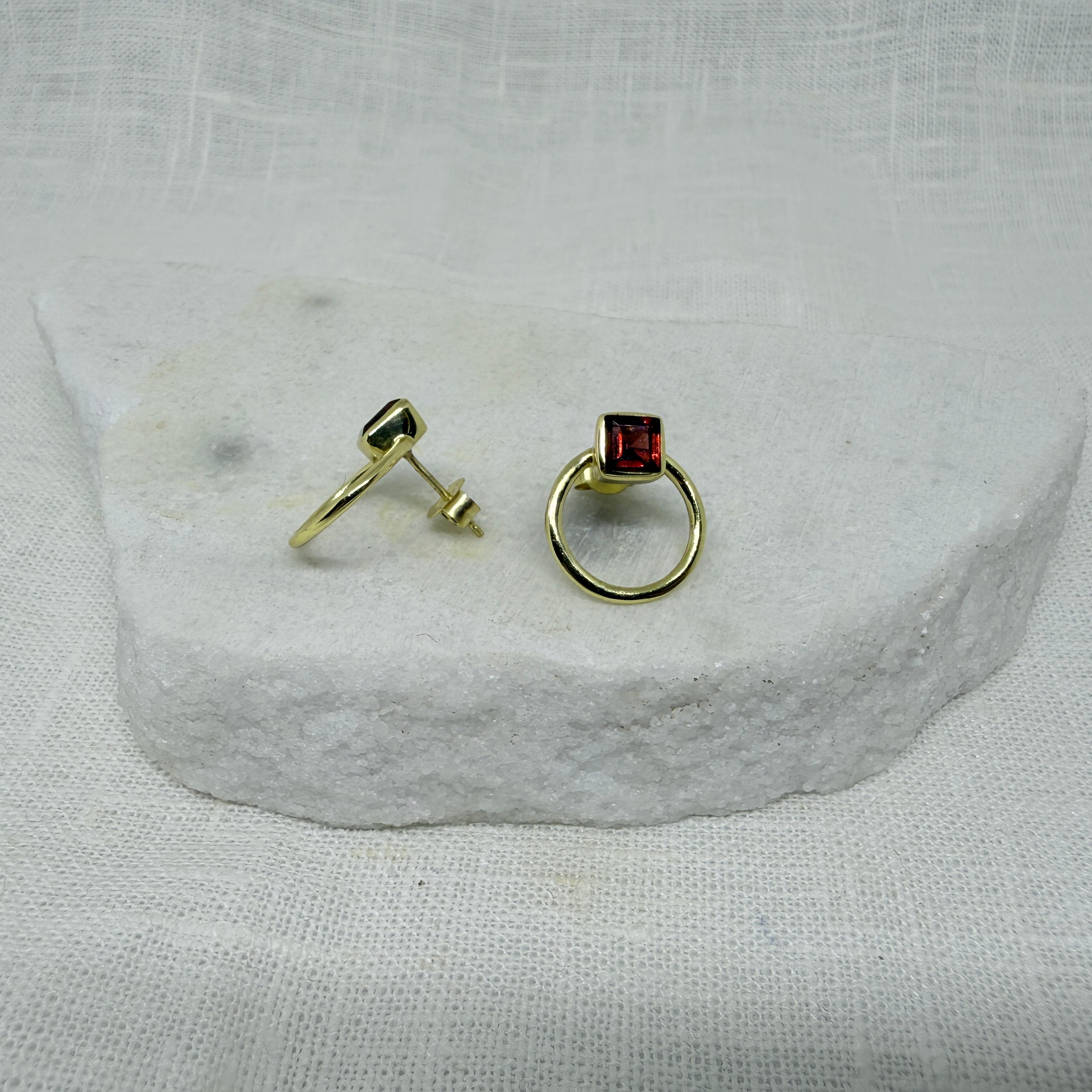 Square Gemstone and Open Circle Stud Earrings