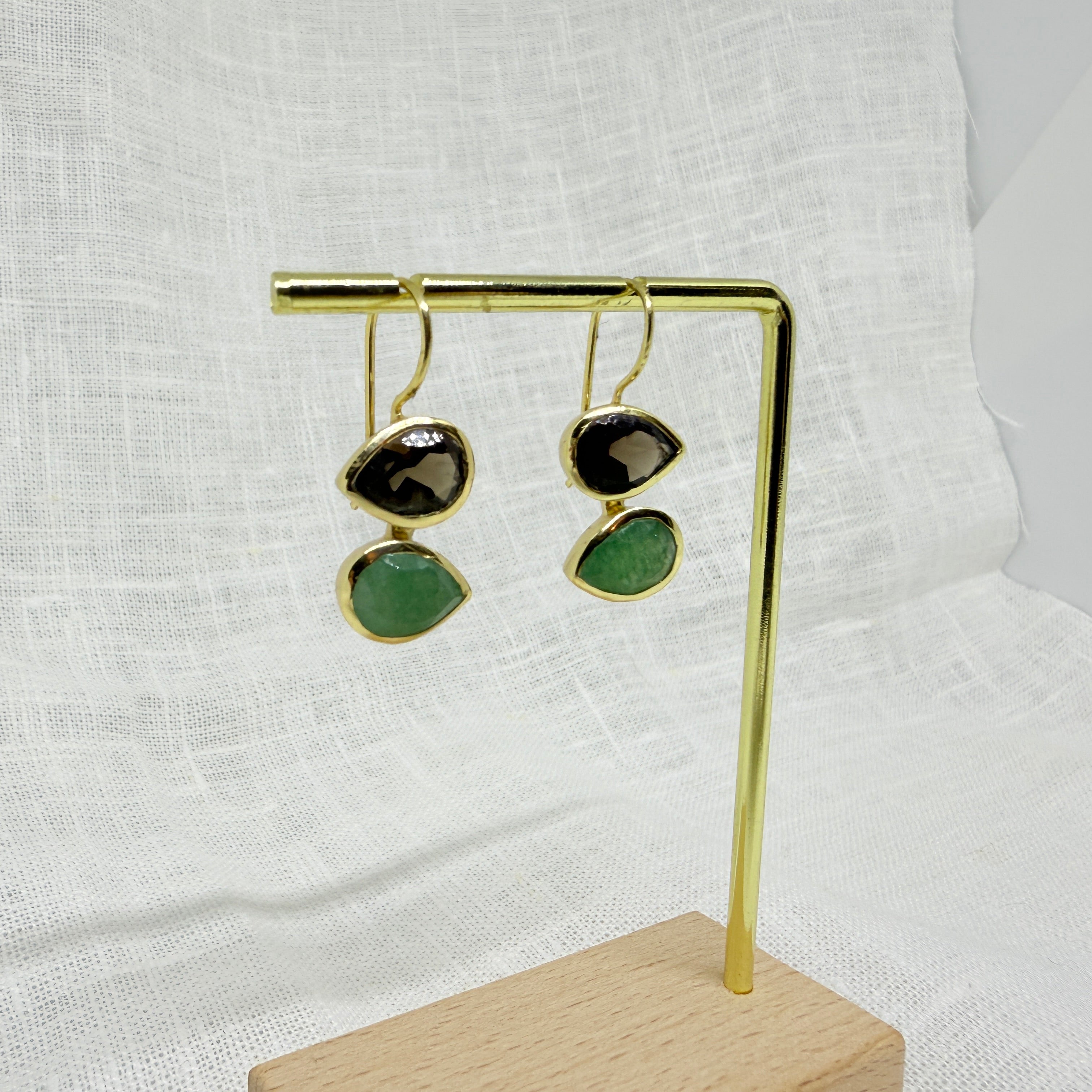 Smokey Quartz and Green Aventurine Teardrop Earrings