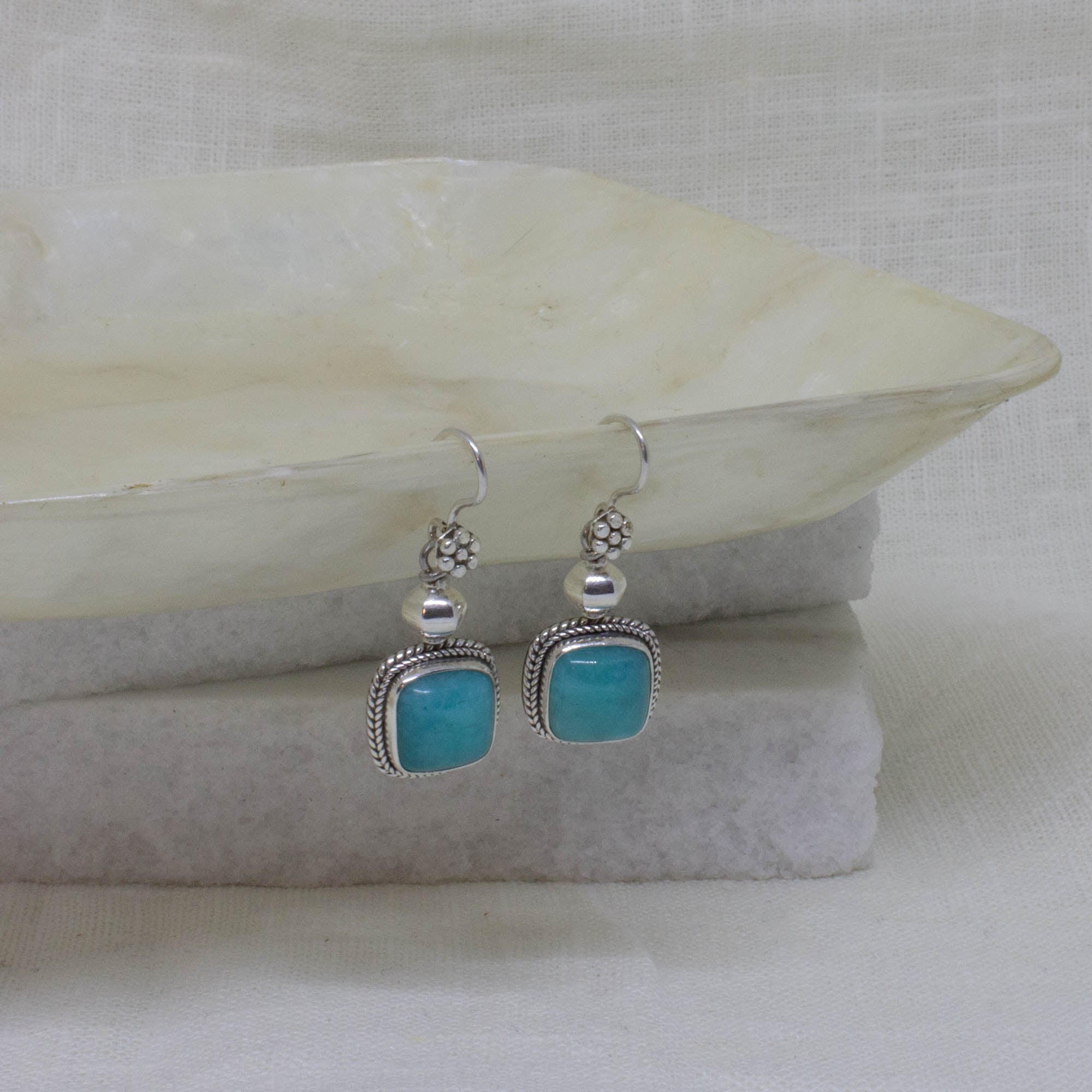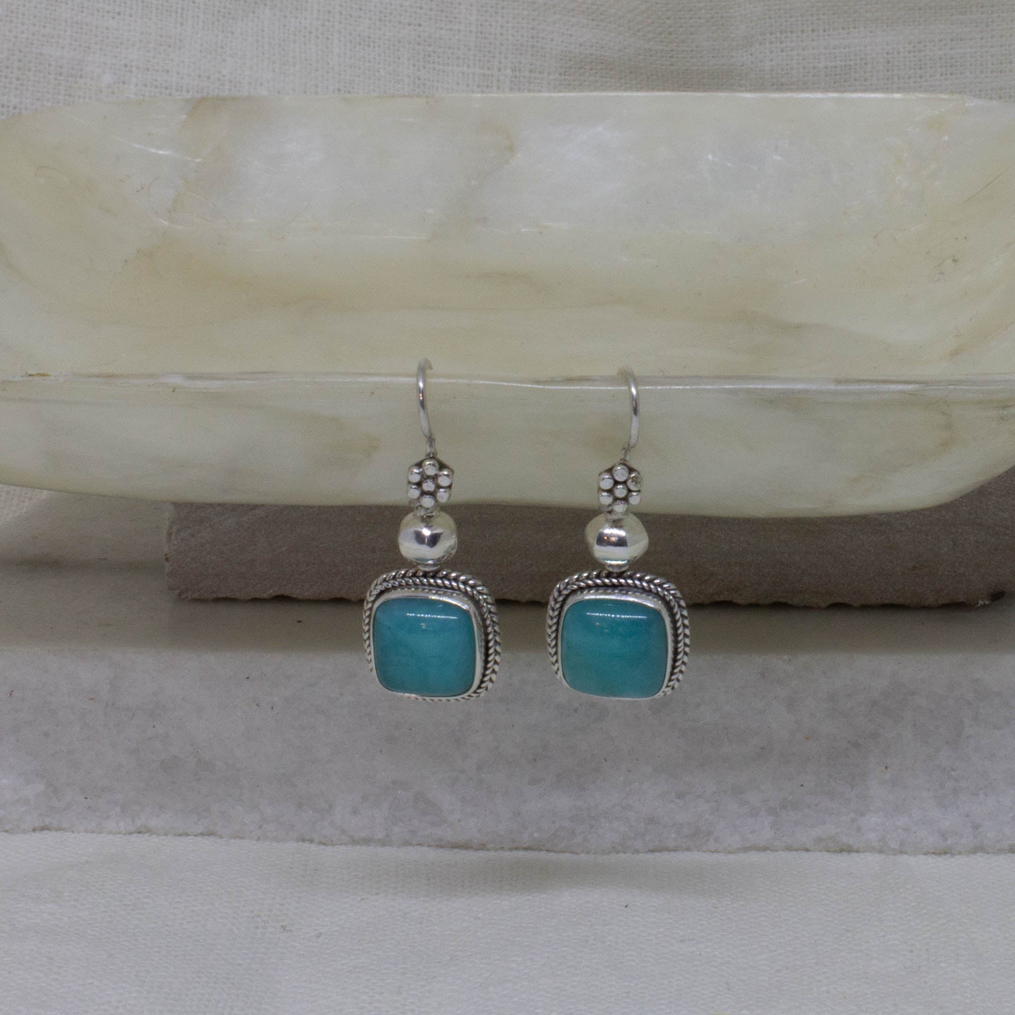 Square Blue Chalcedony Drop Earrings