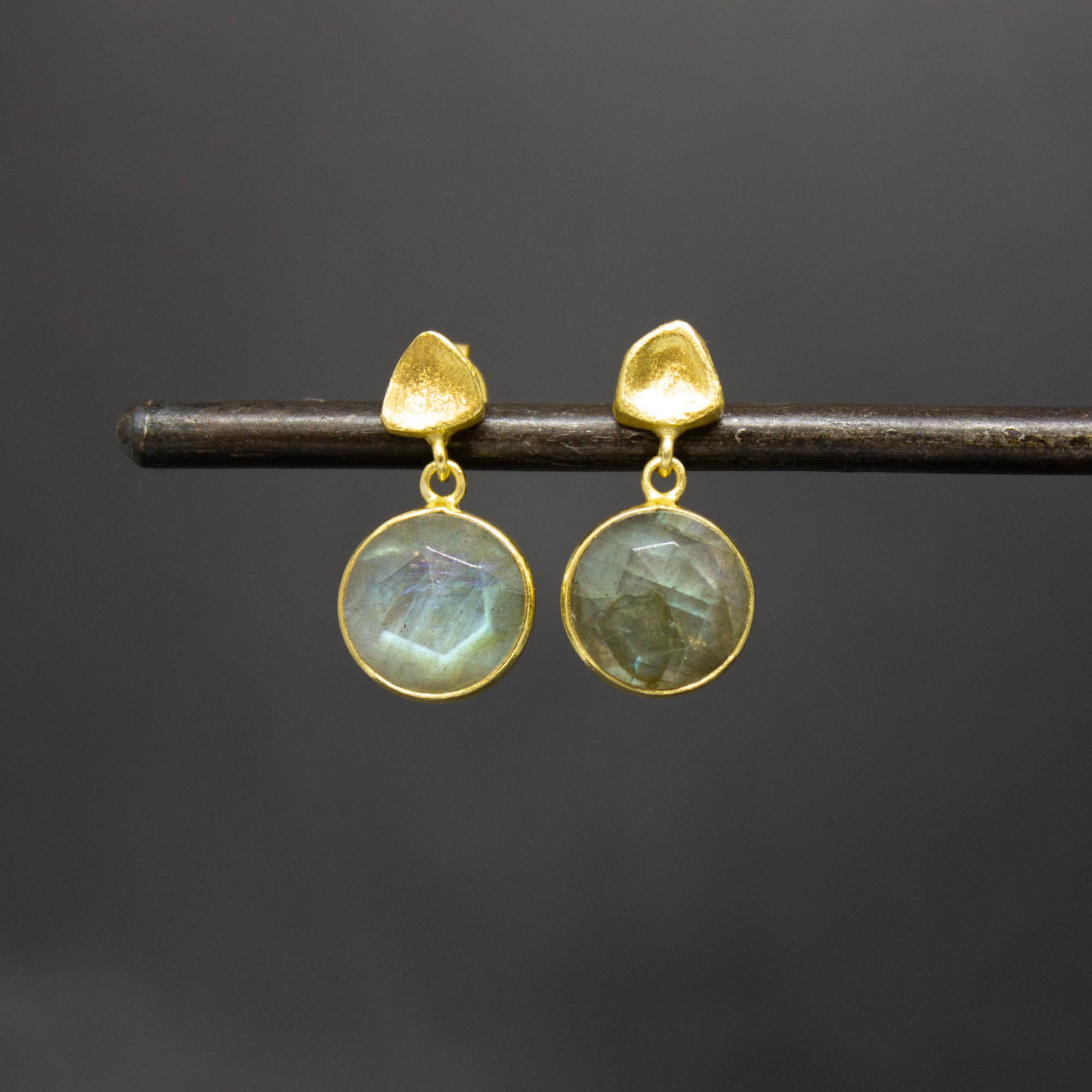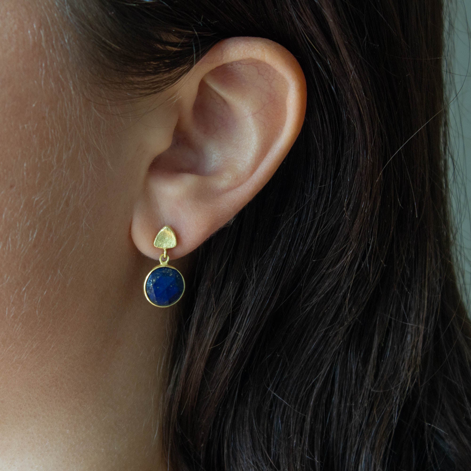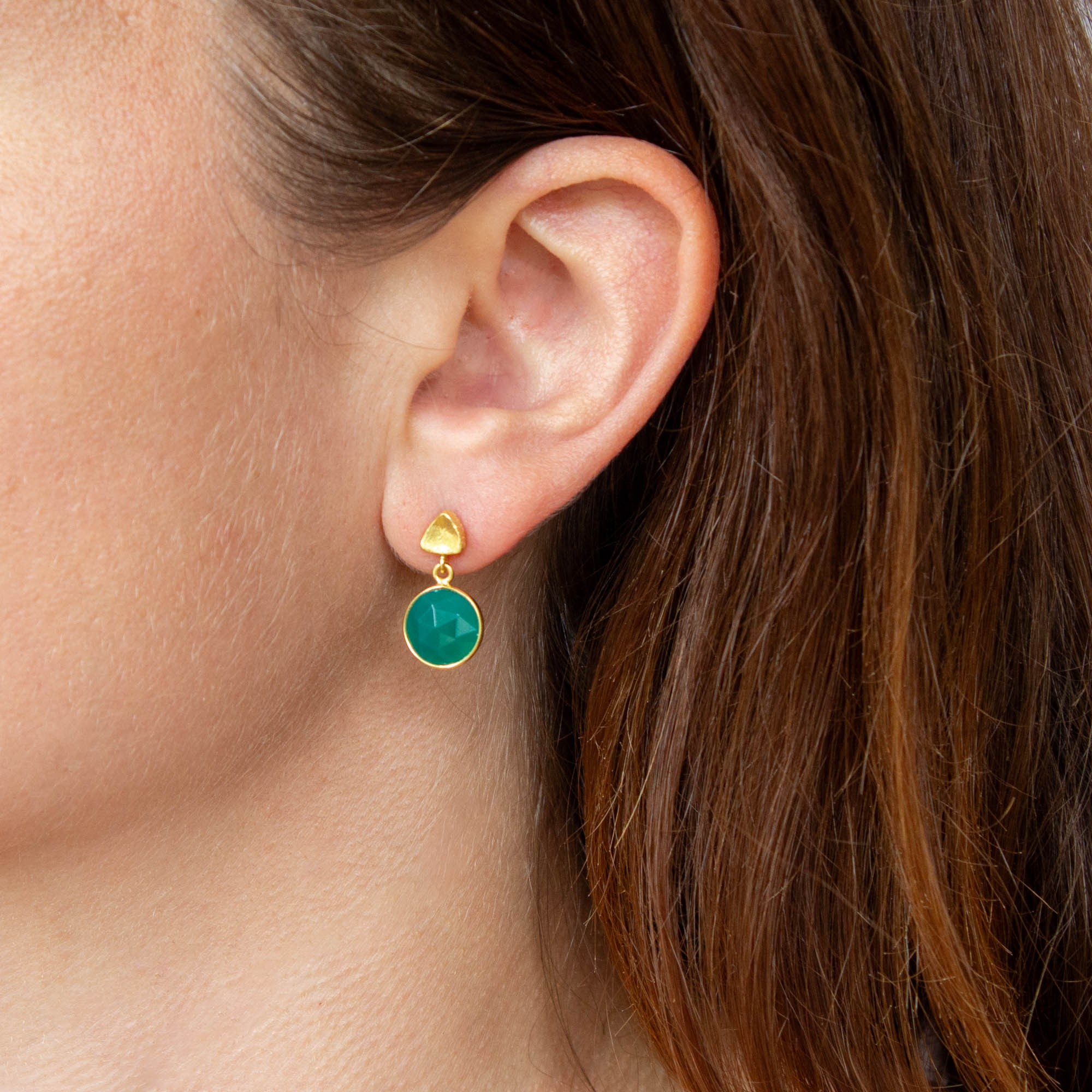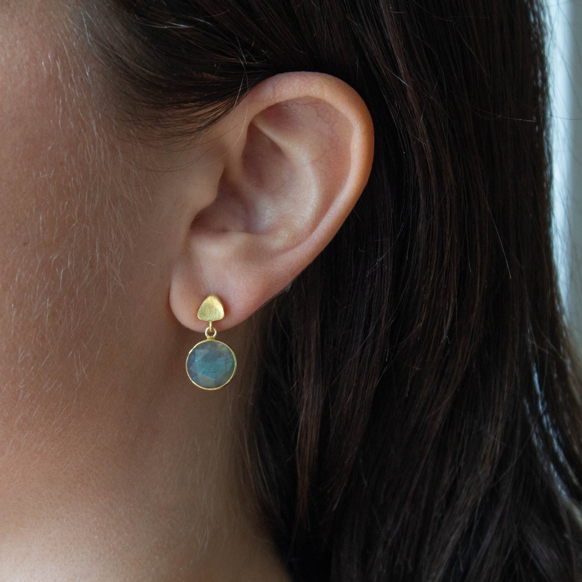 Round Gemstone and Brushed Gold Earrings