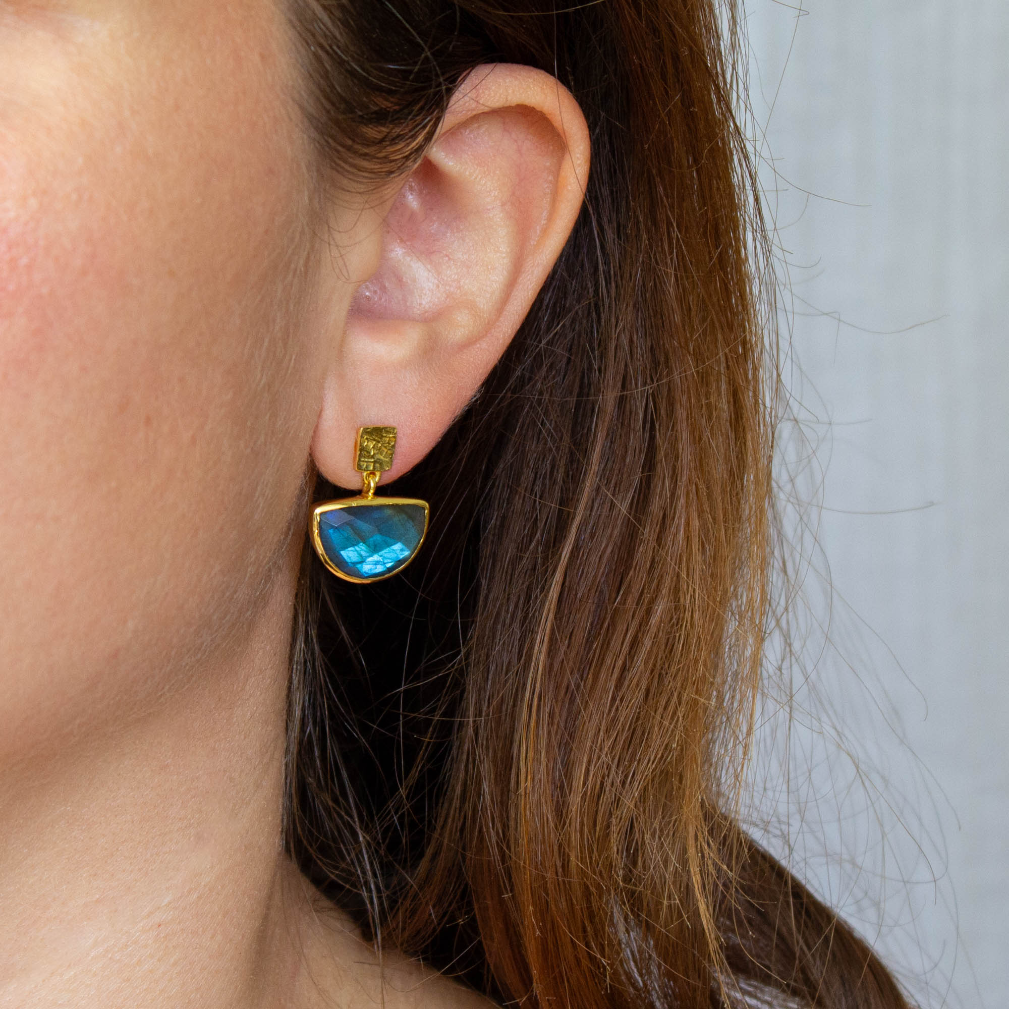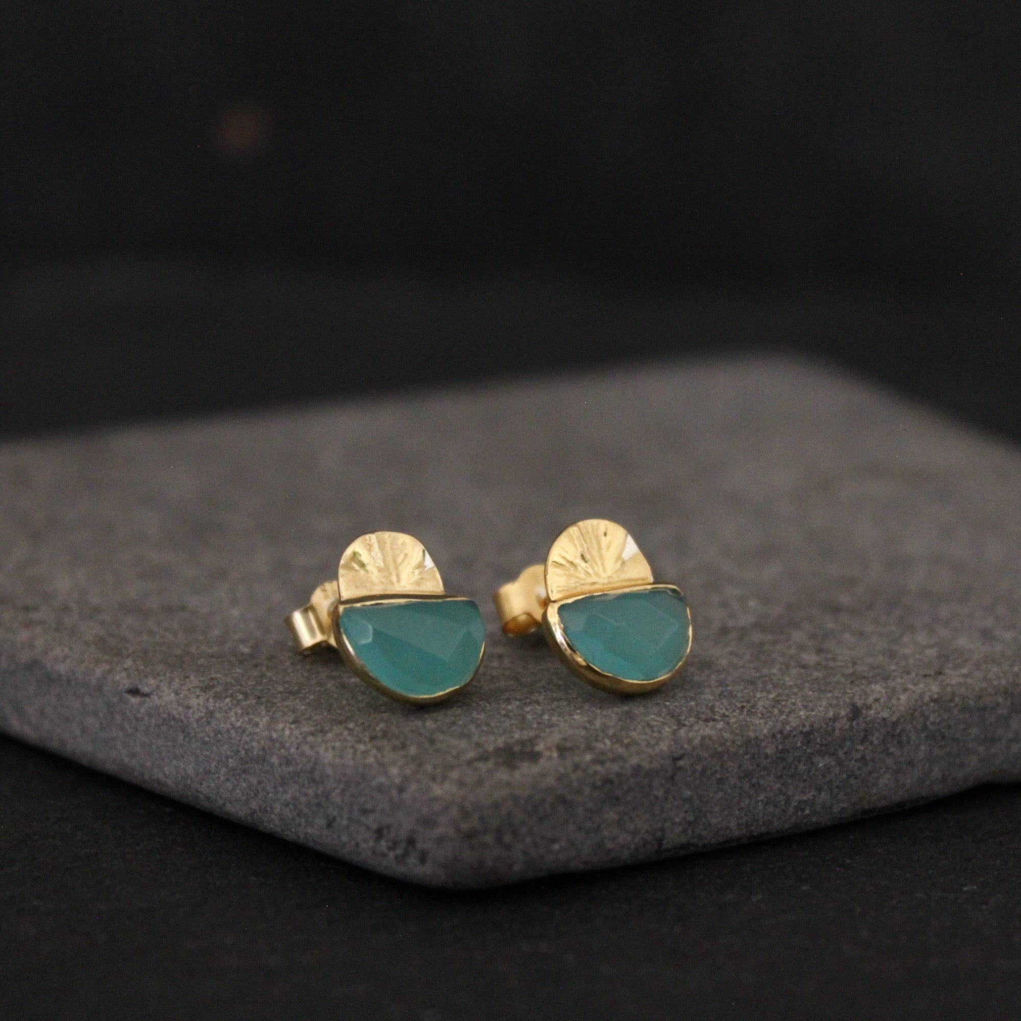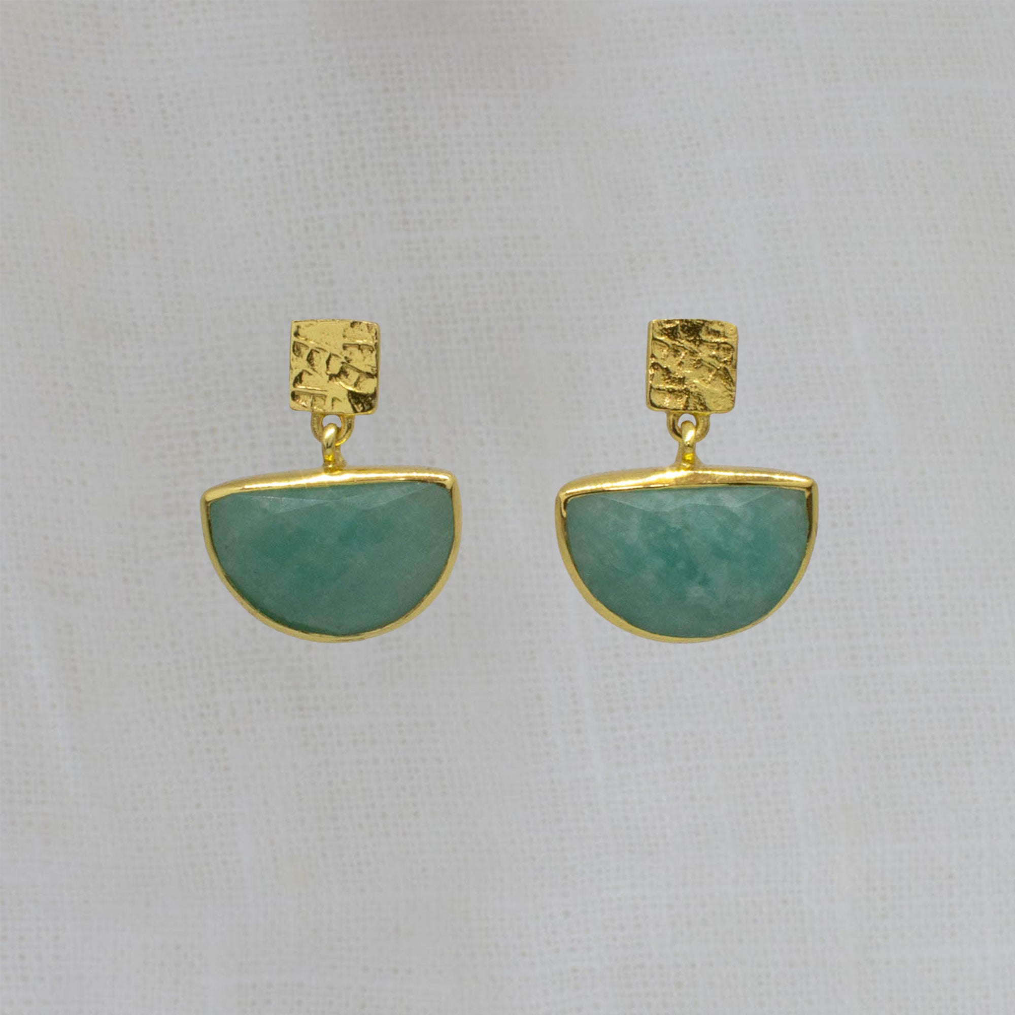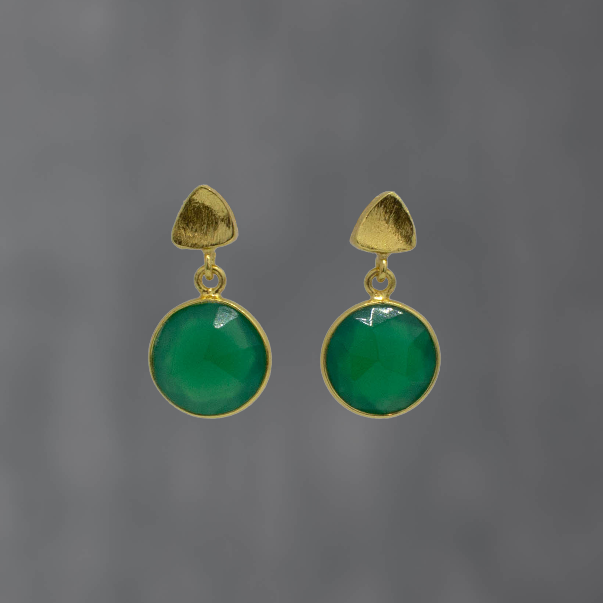 Round Gemstone and Brushed Gold Earrings