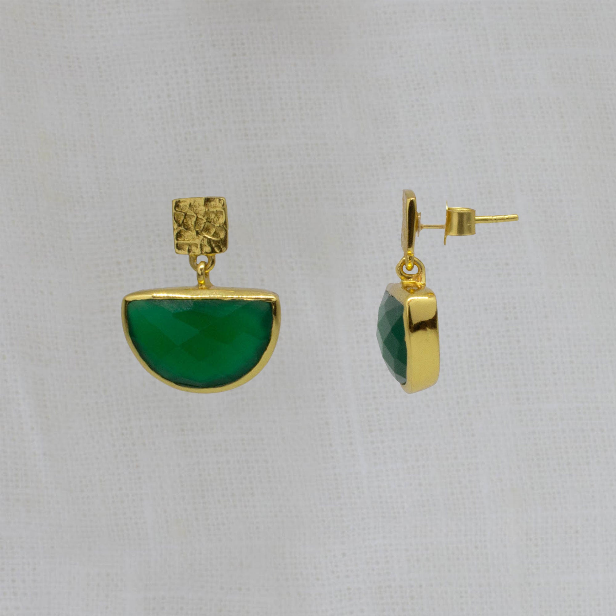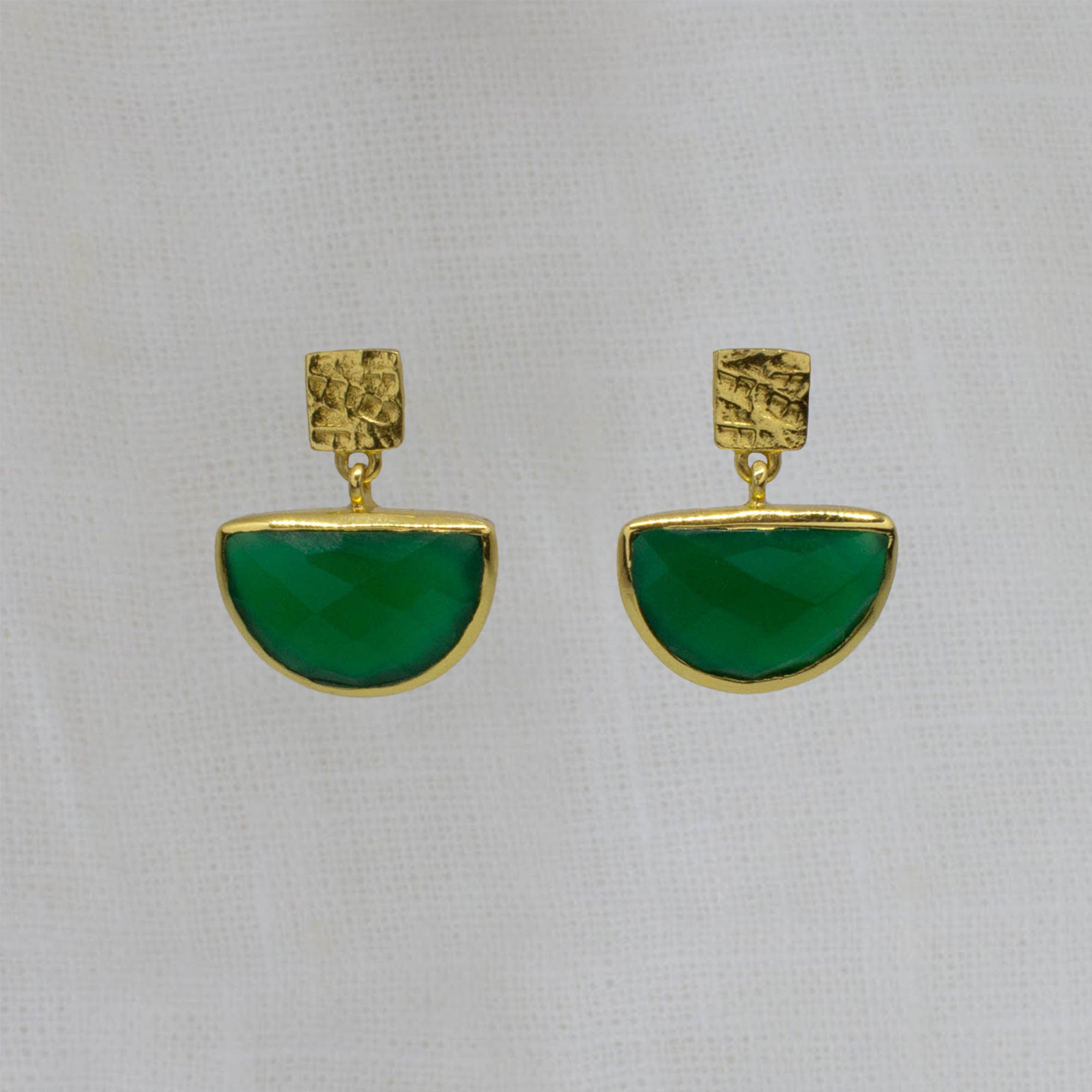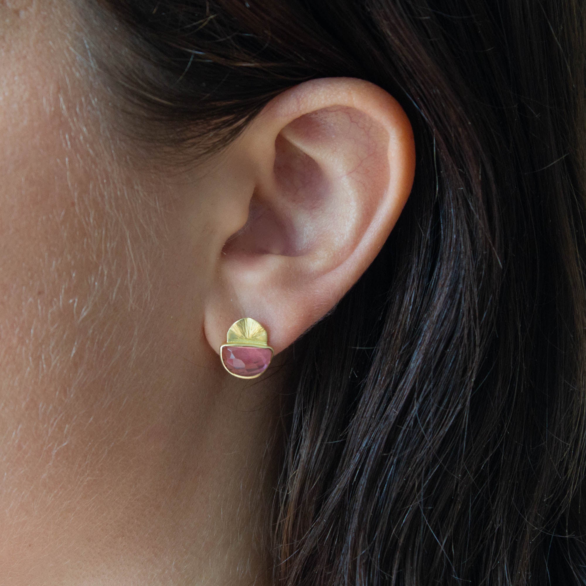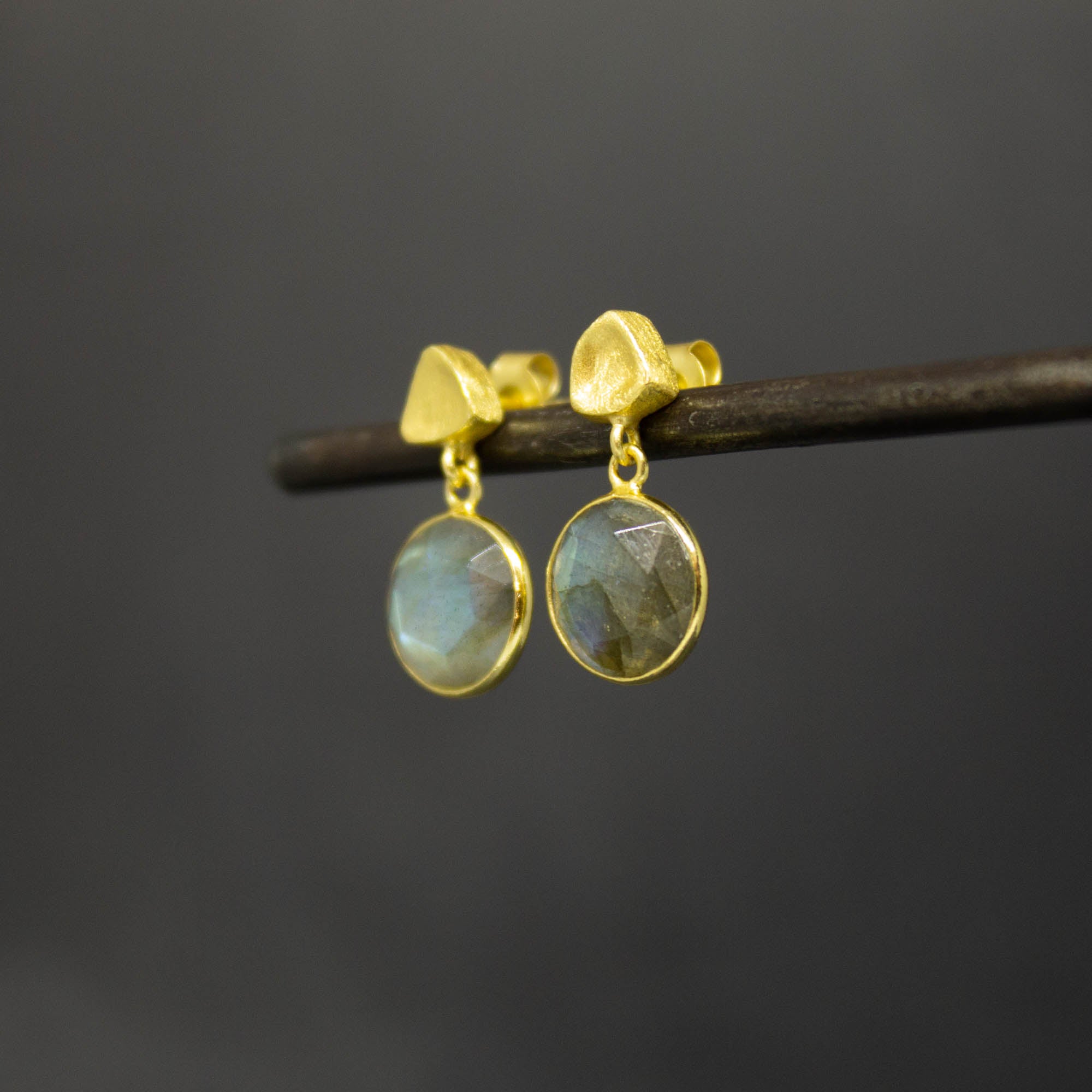 Round Gemstone and Brushed Gold Earrings