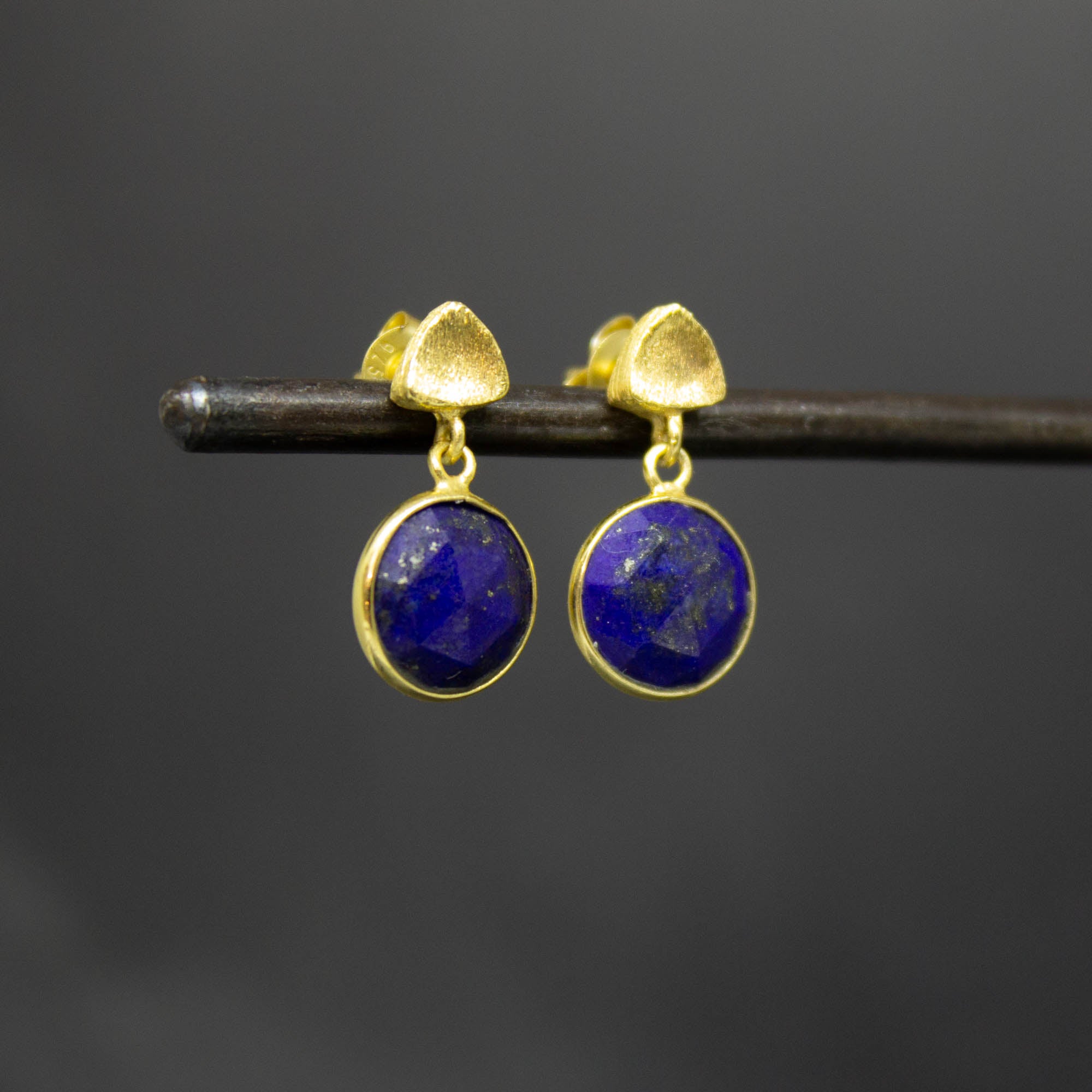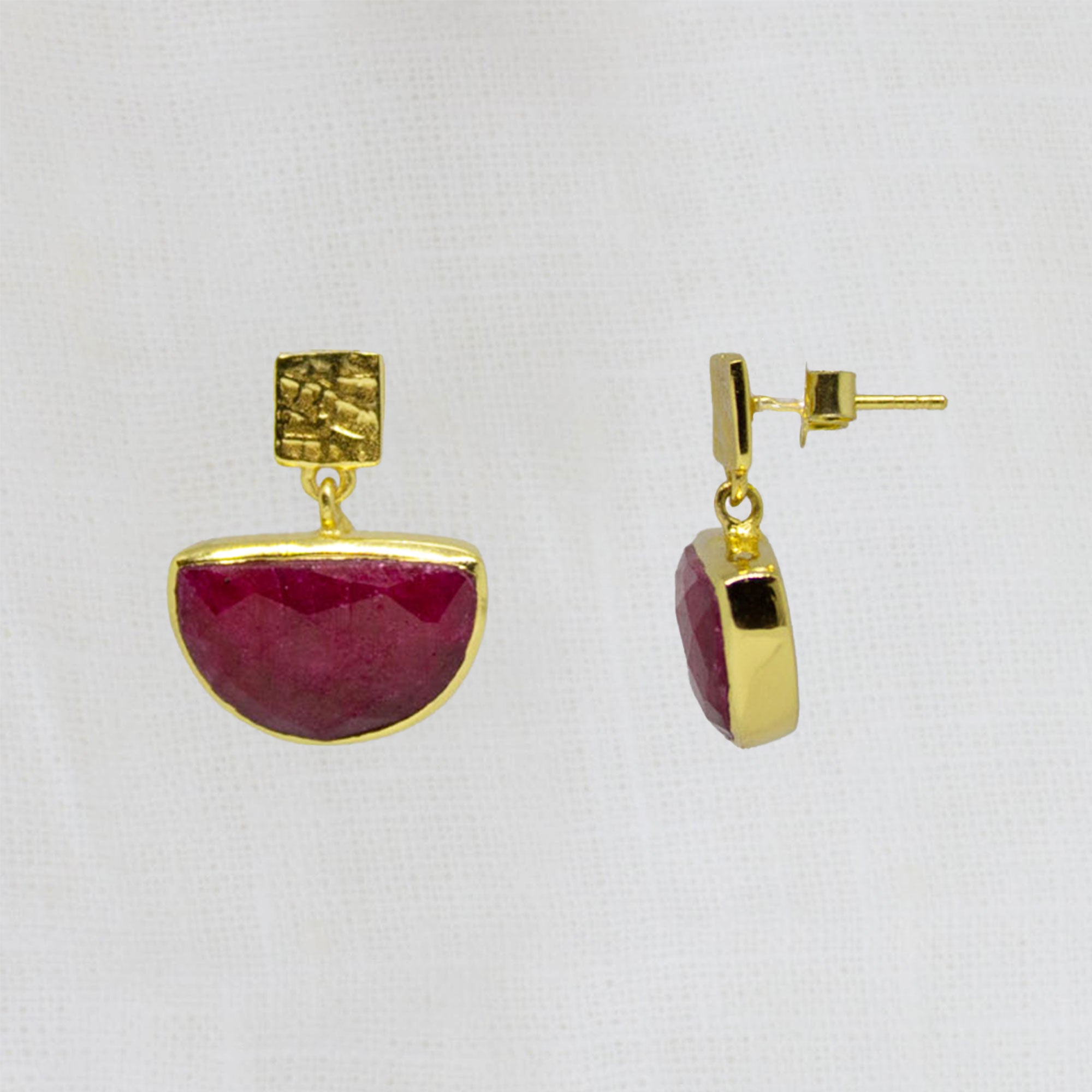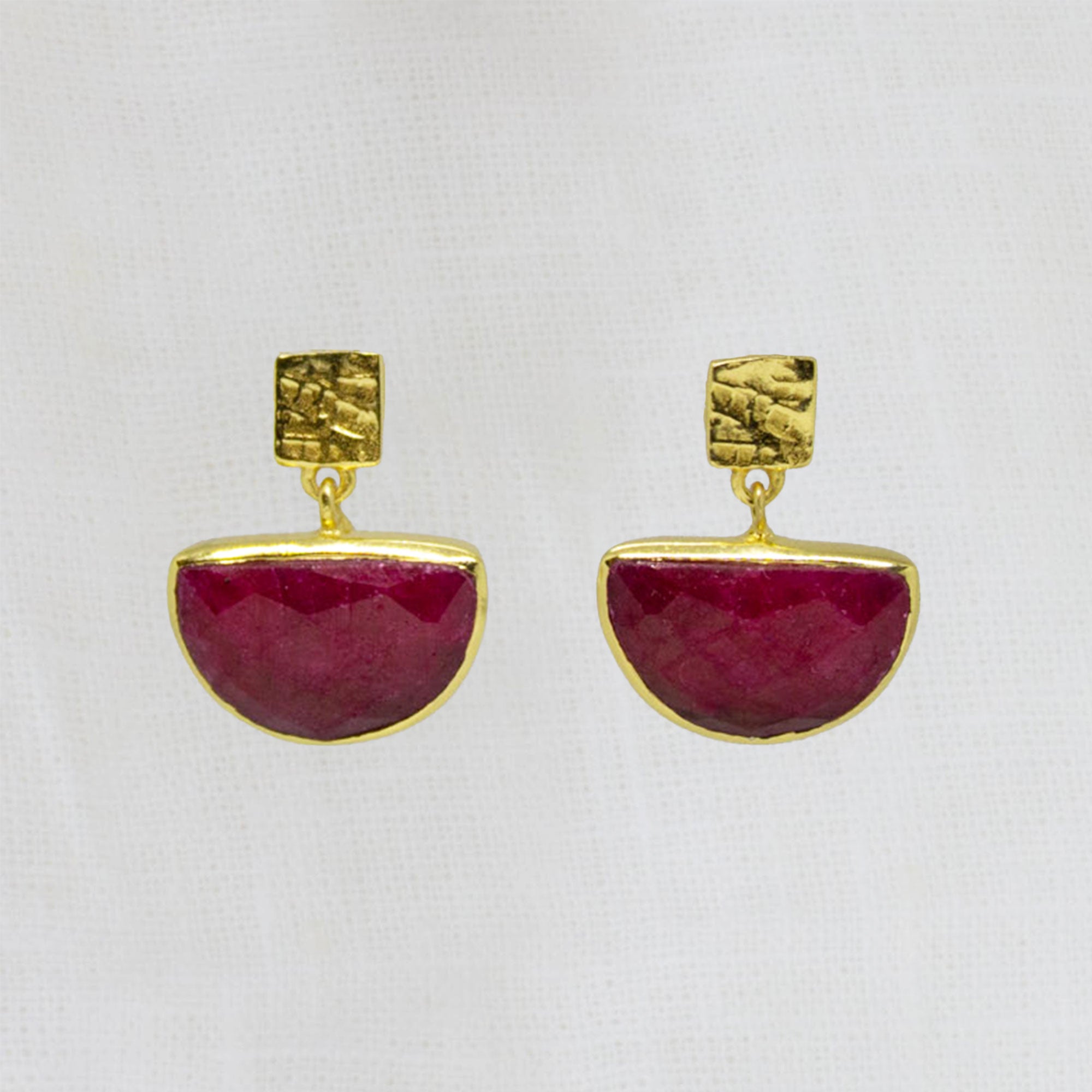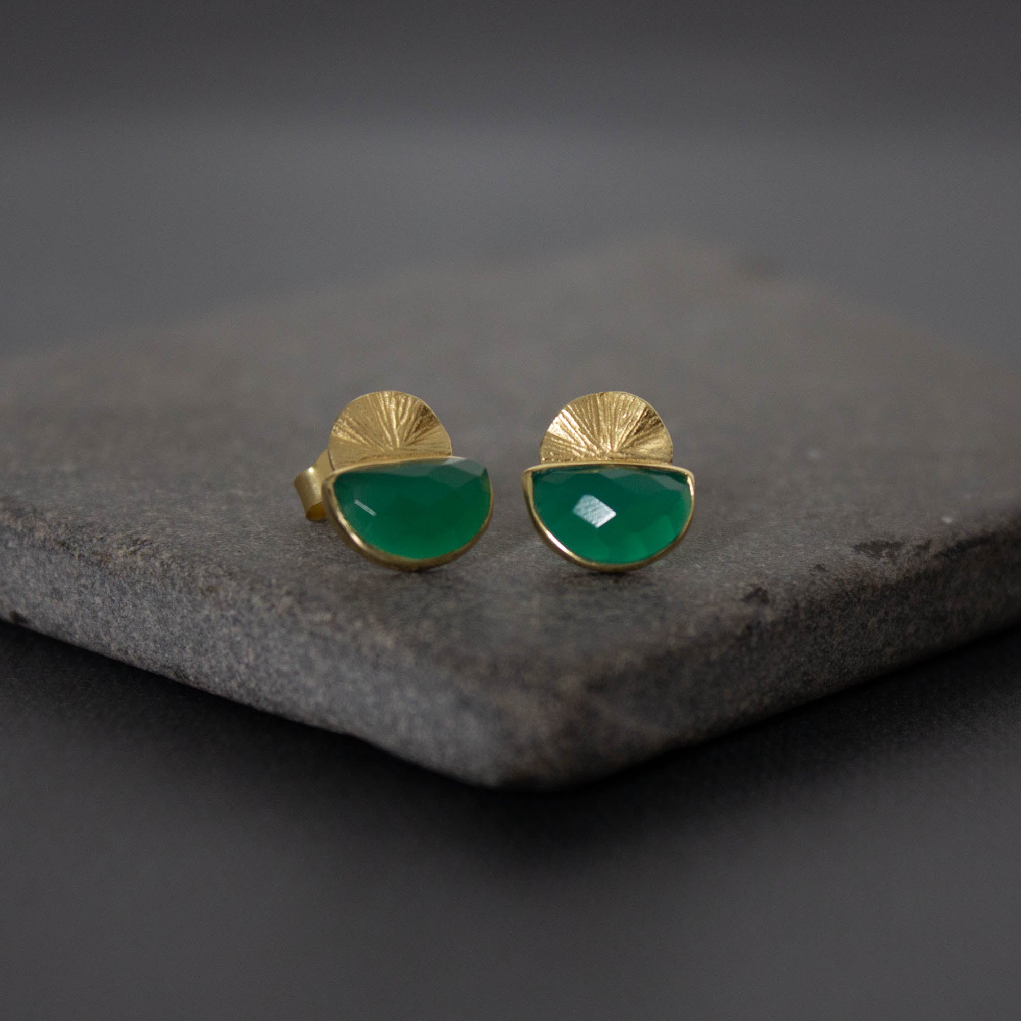 Round Gemstone and Brushed Gold Earrings
