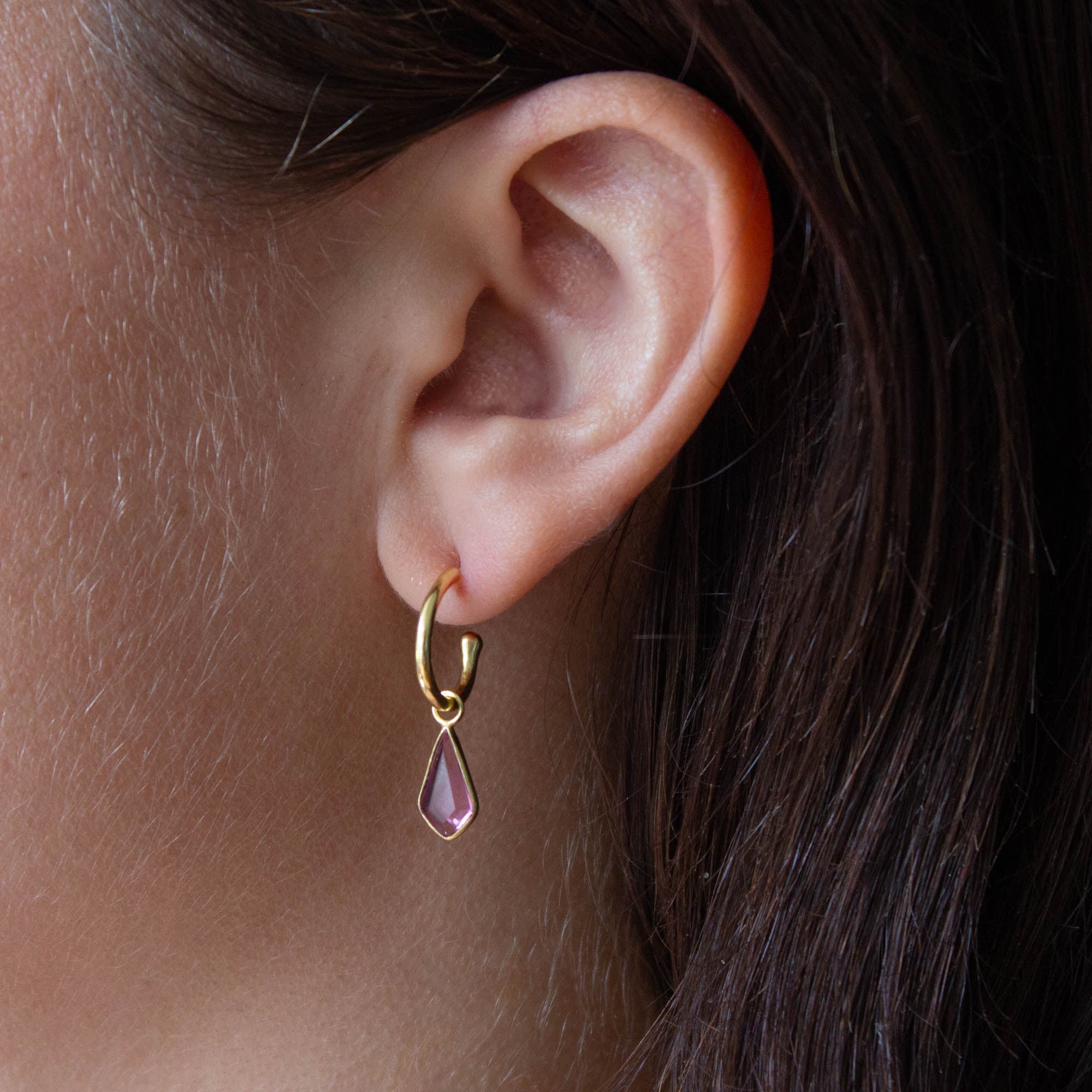 Gold and Gemstone Kite Charm Hoops
