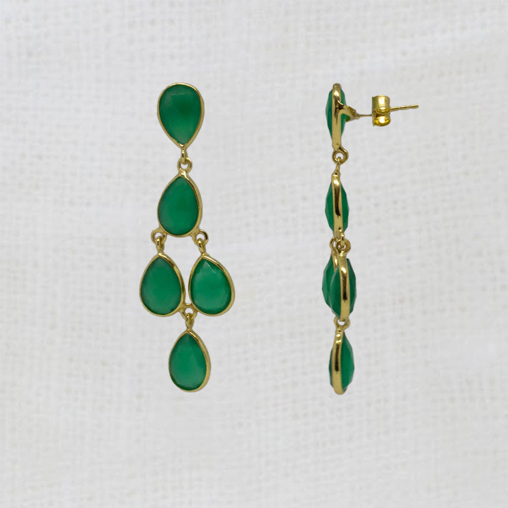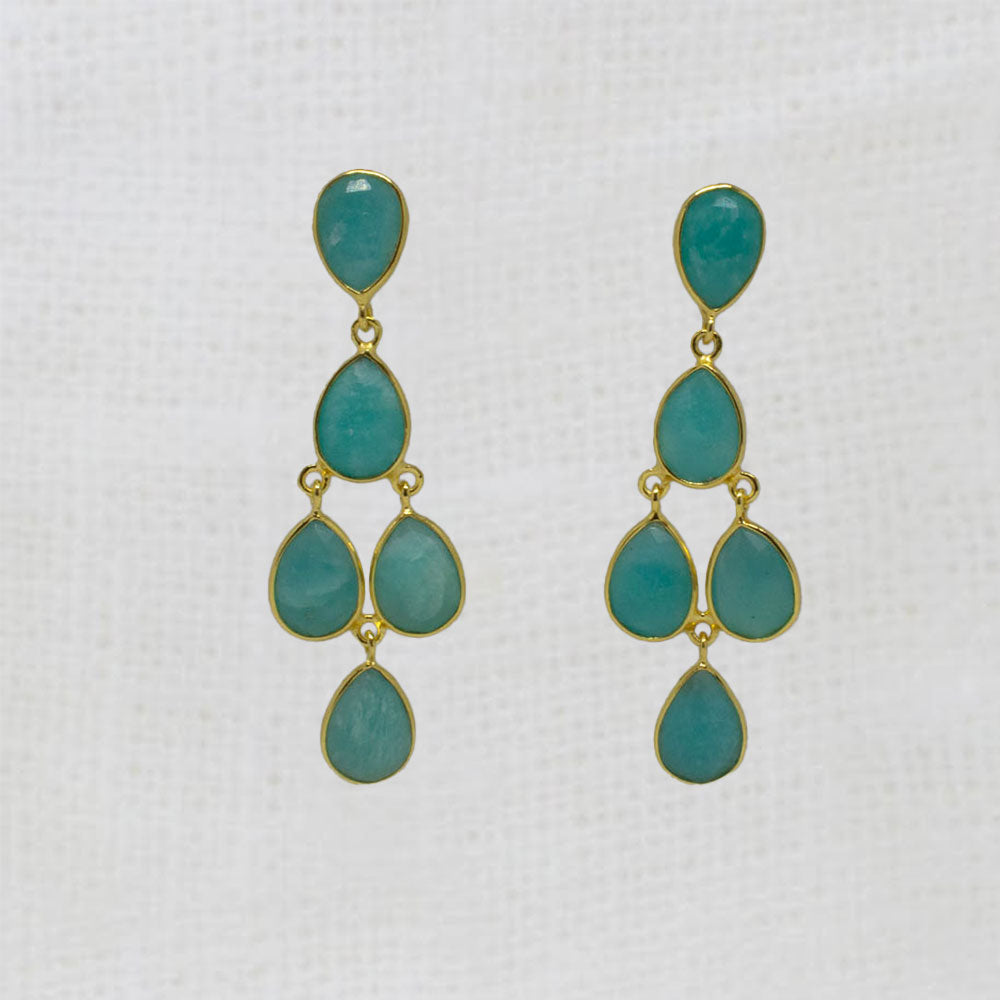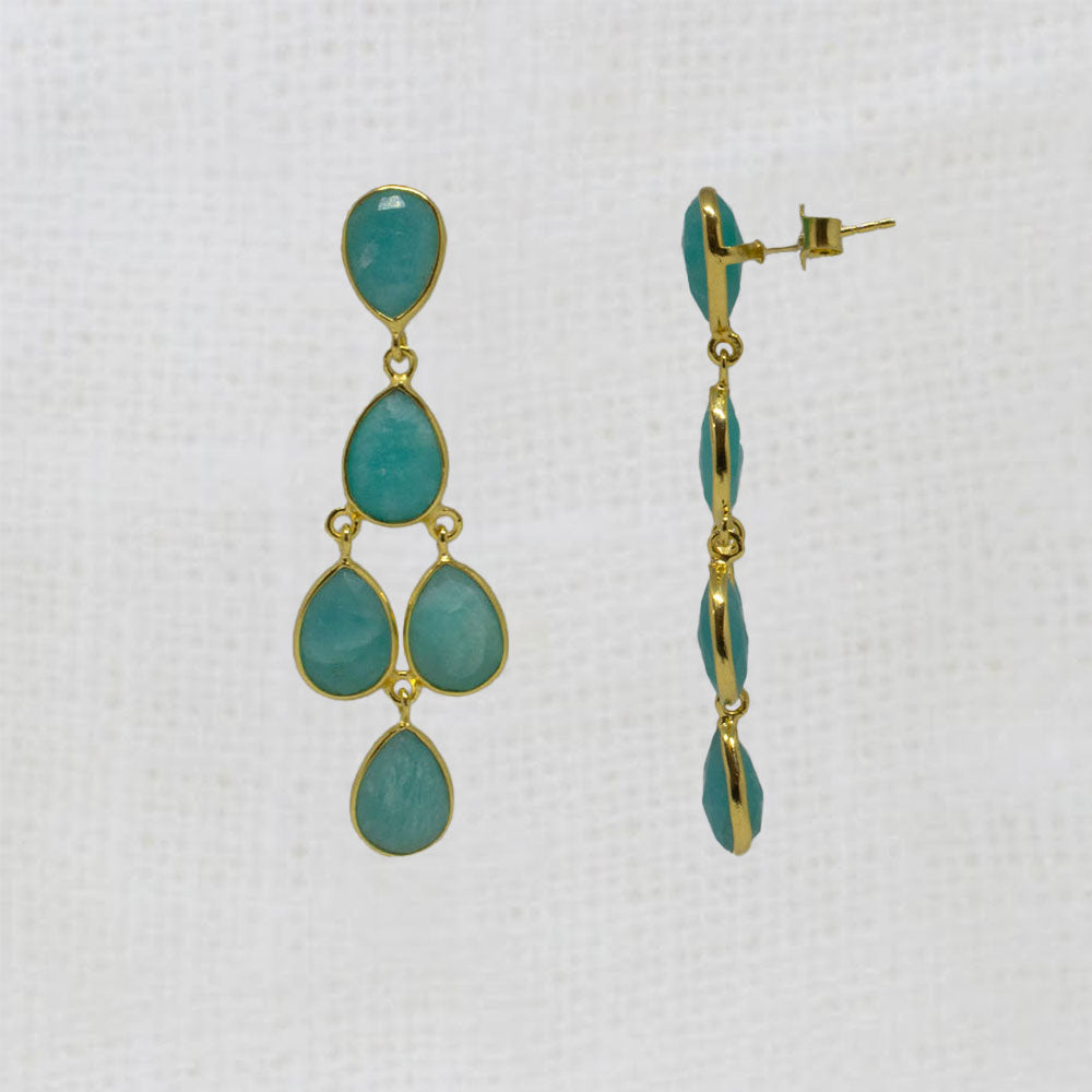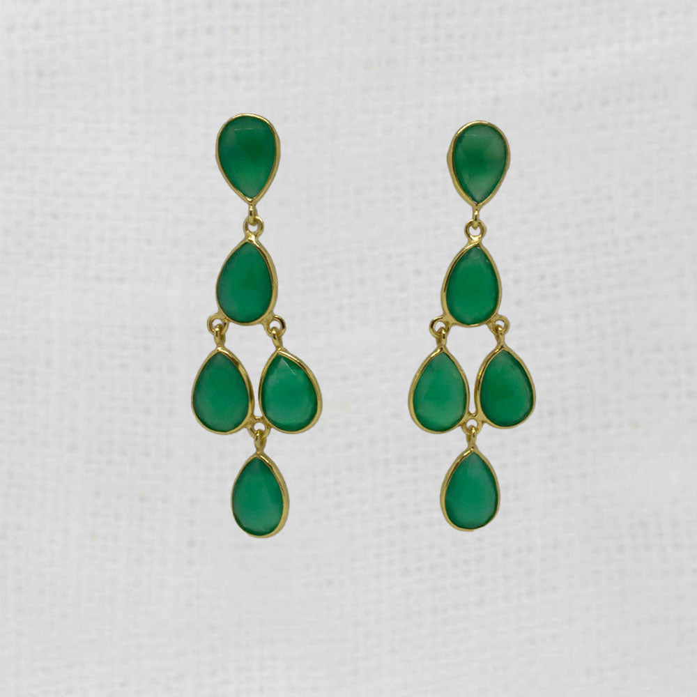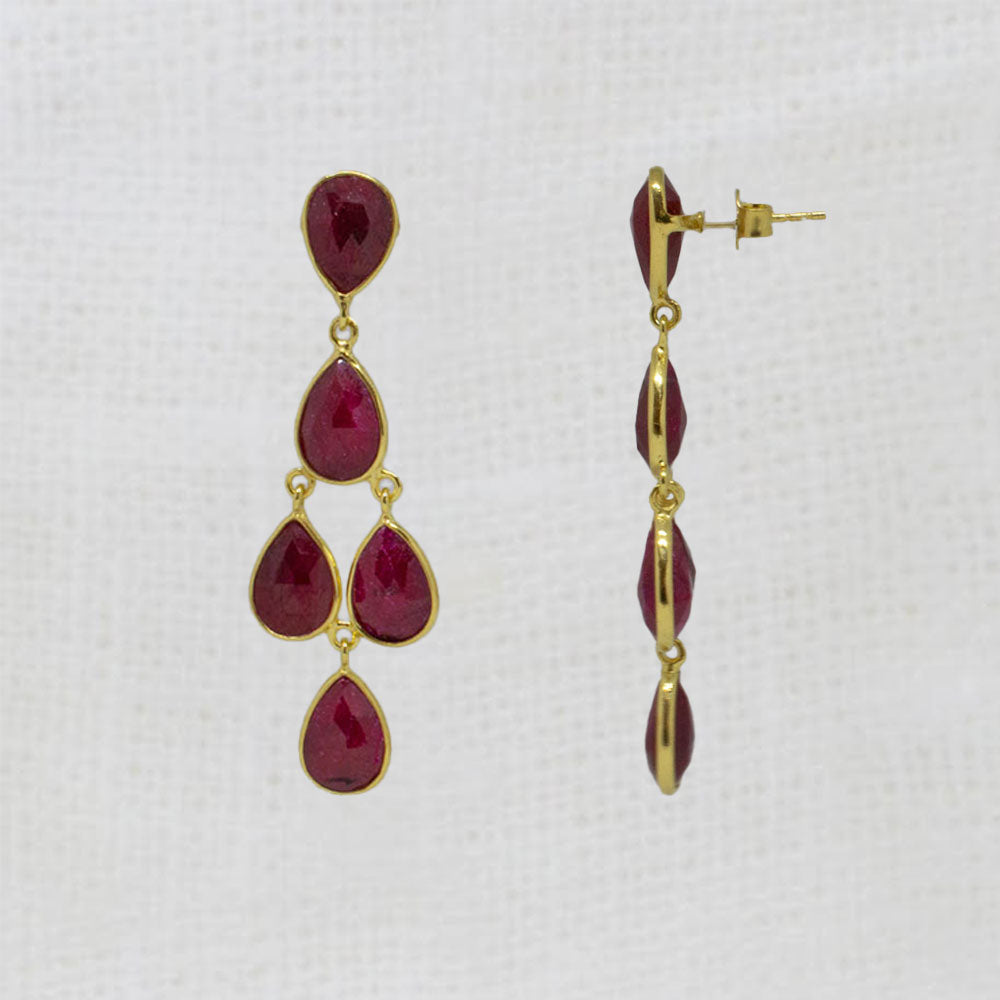Our Aster chandelier earrings feature five faceted teardrop gemstones set in a simple 18k gold vermeil setting.