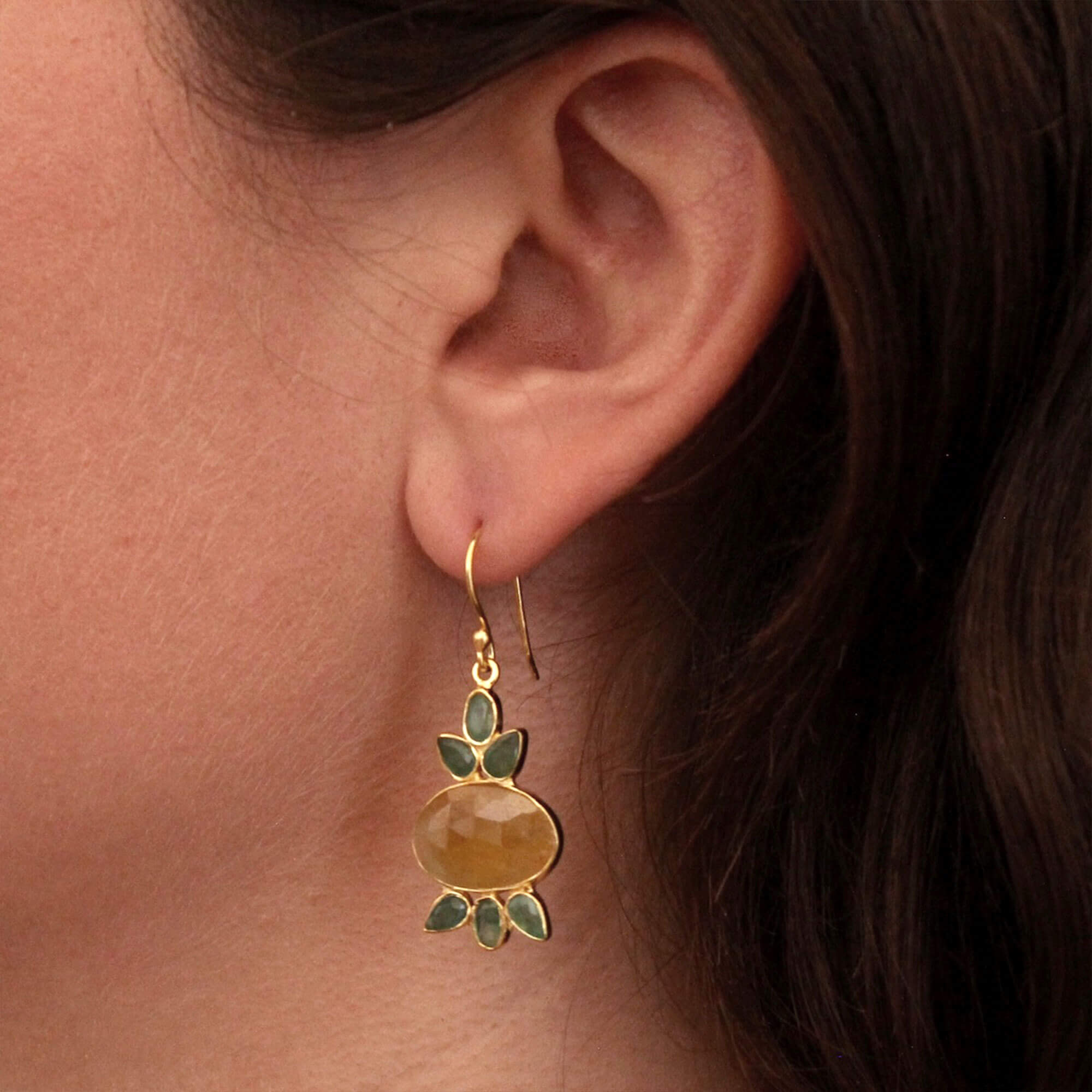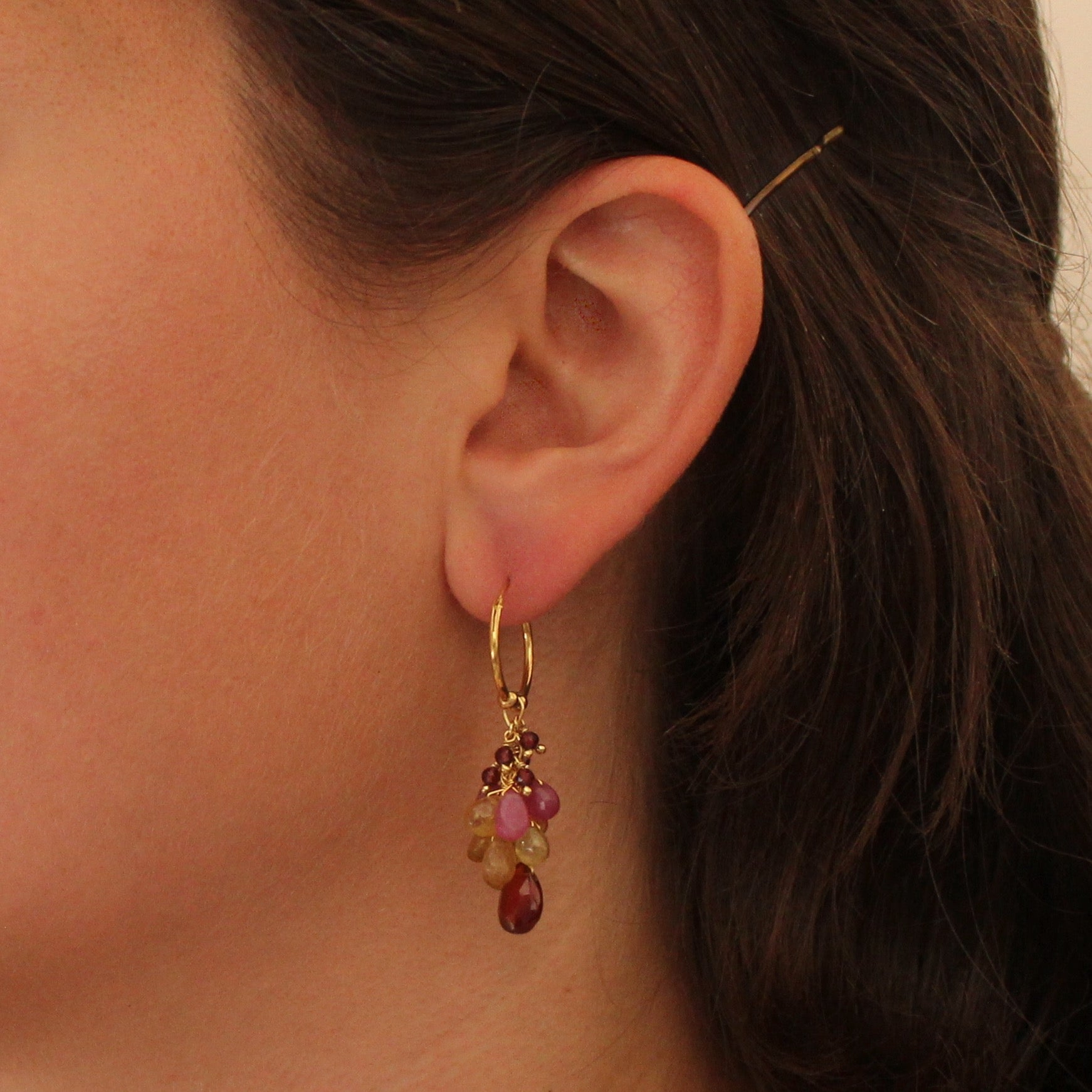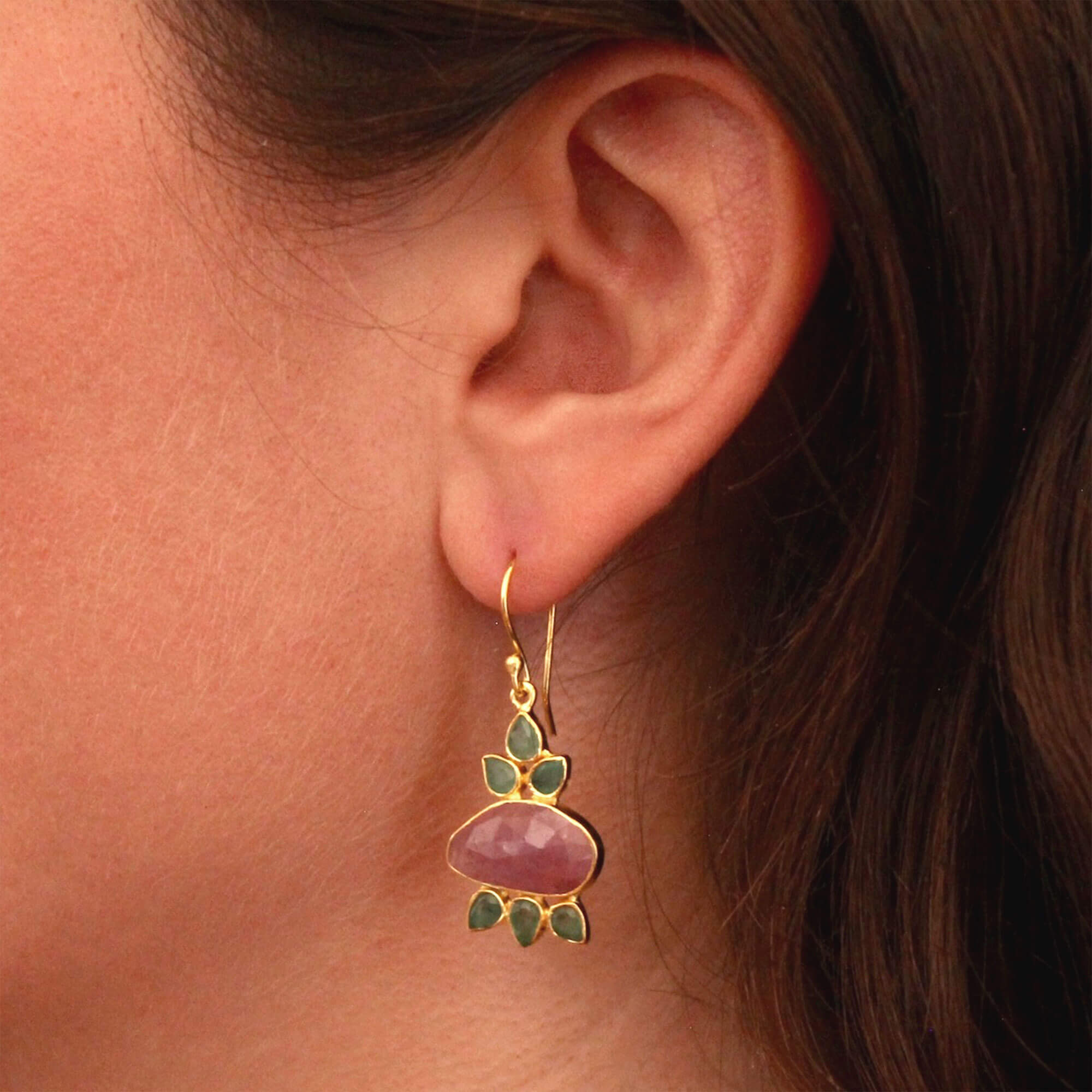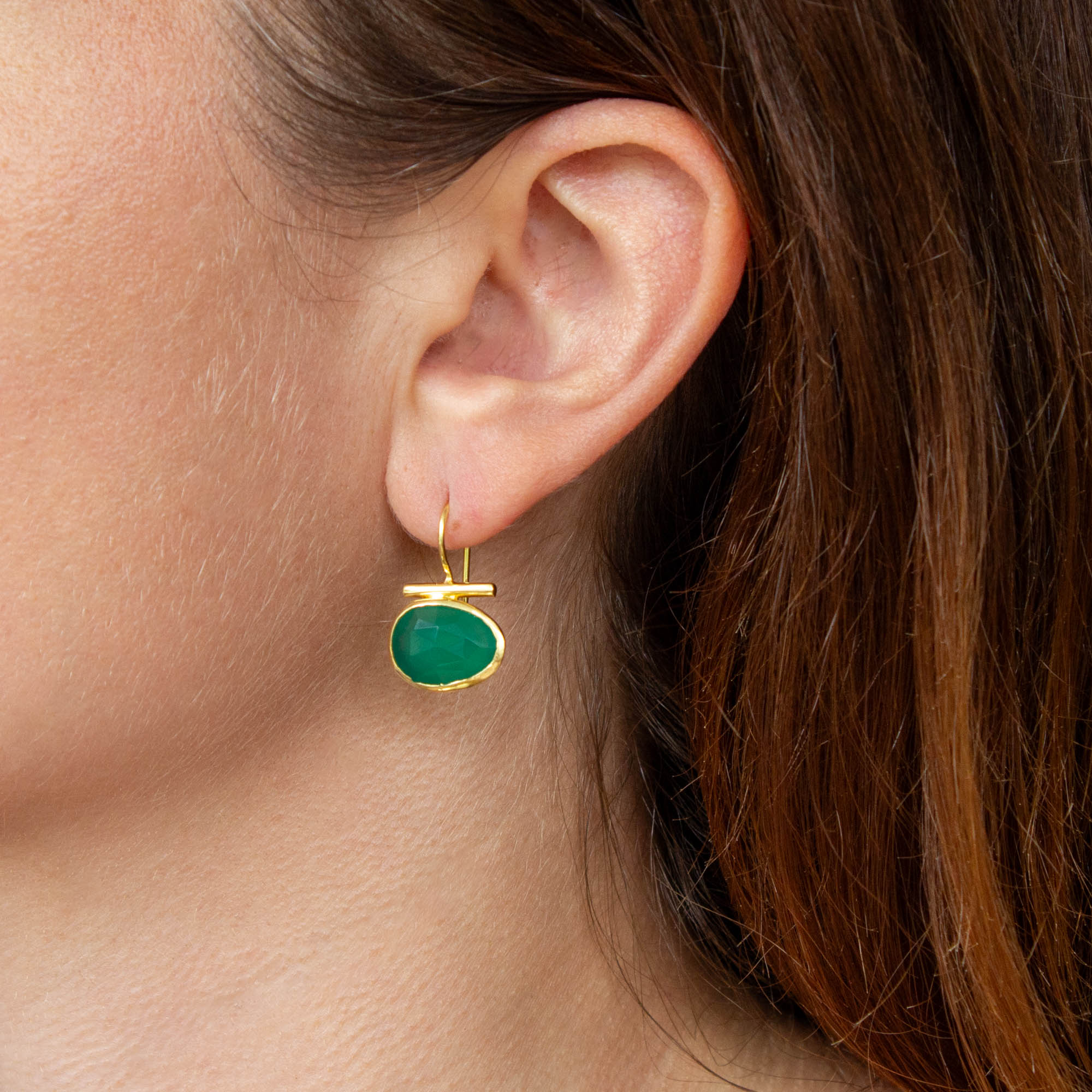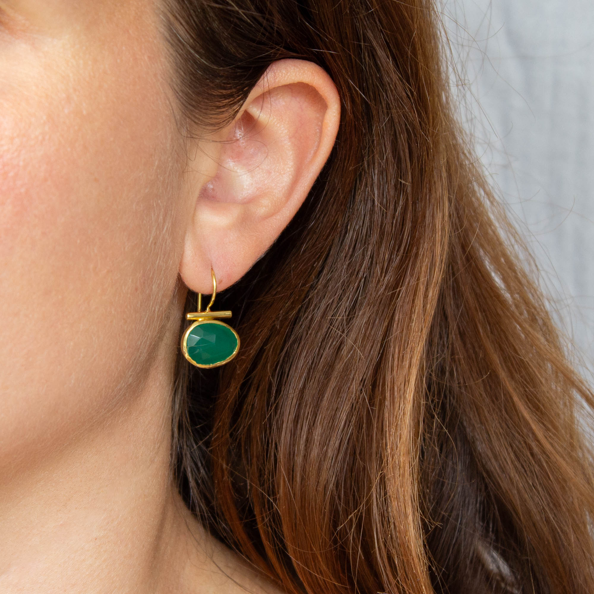Our collection of gemstone earrings feature studs, drops and hoops that are handcrafted in sterling silver and 18k gold vermeil. We use a beautiful range of hand-selected precious and semi-precious gemstones. From emerald, ruby and sapphire to tourmaline, turquoise, lapis lazuli and green onyx, there is a gemstone for every taste and style.