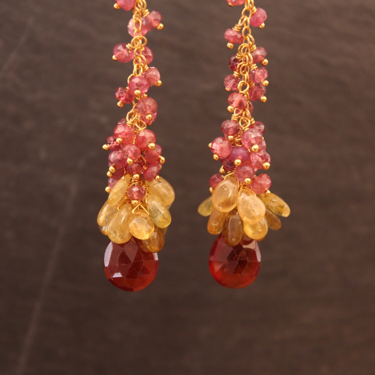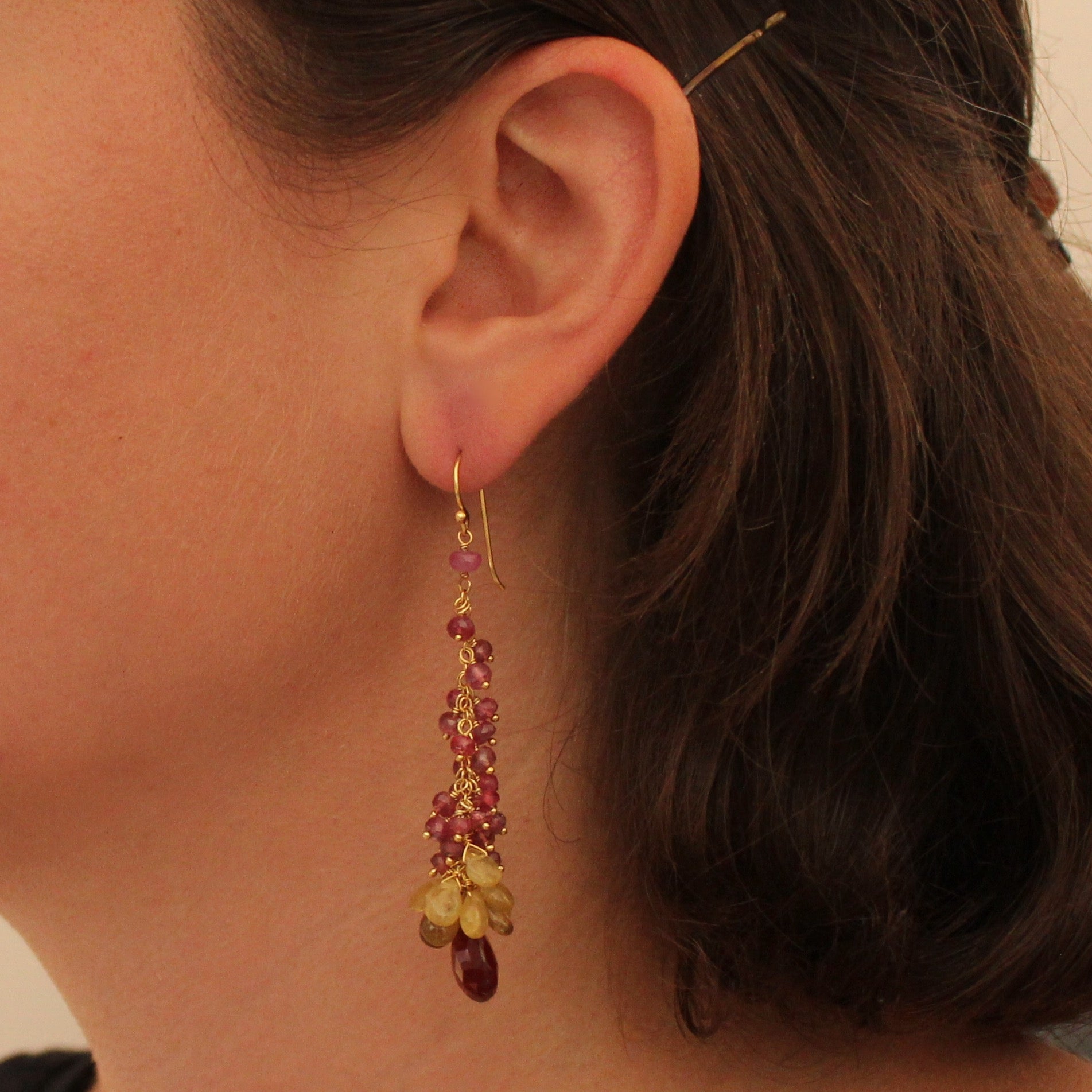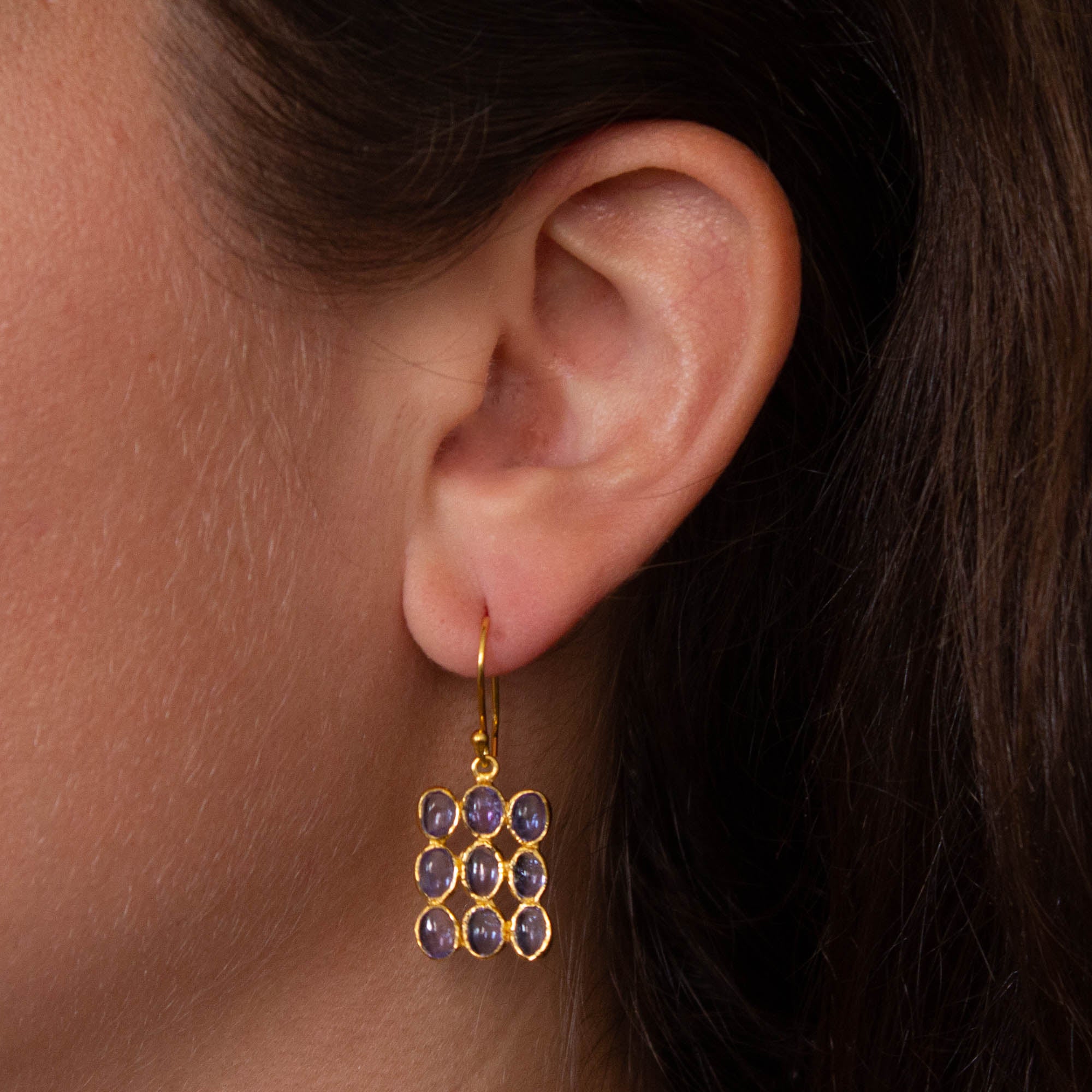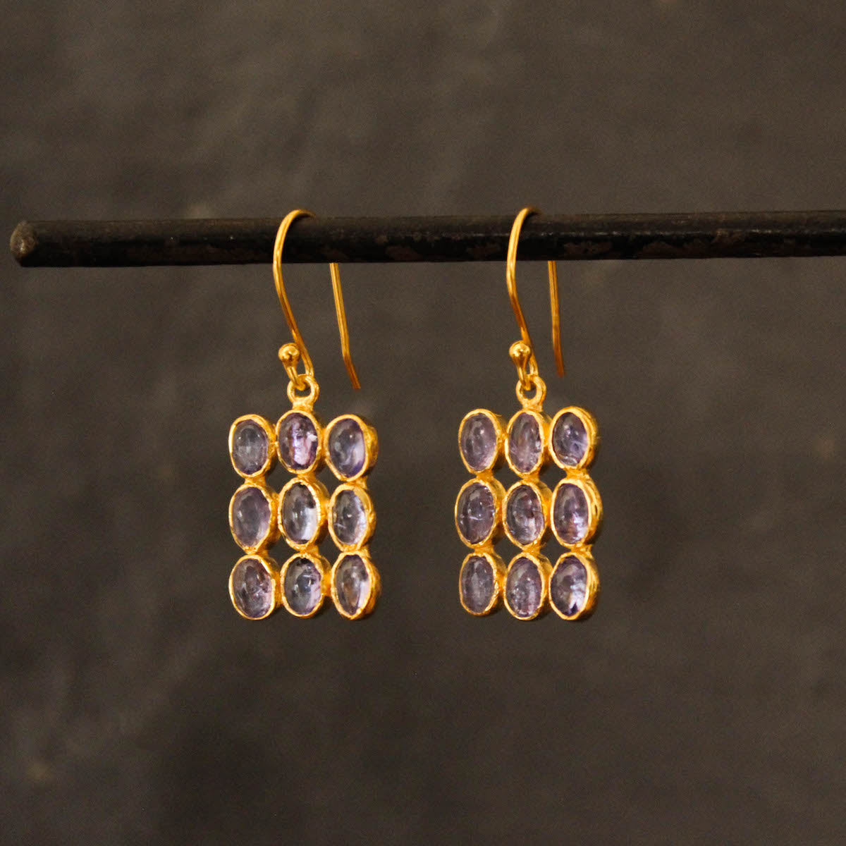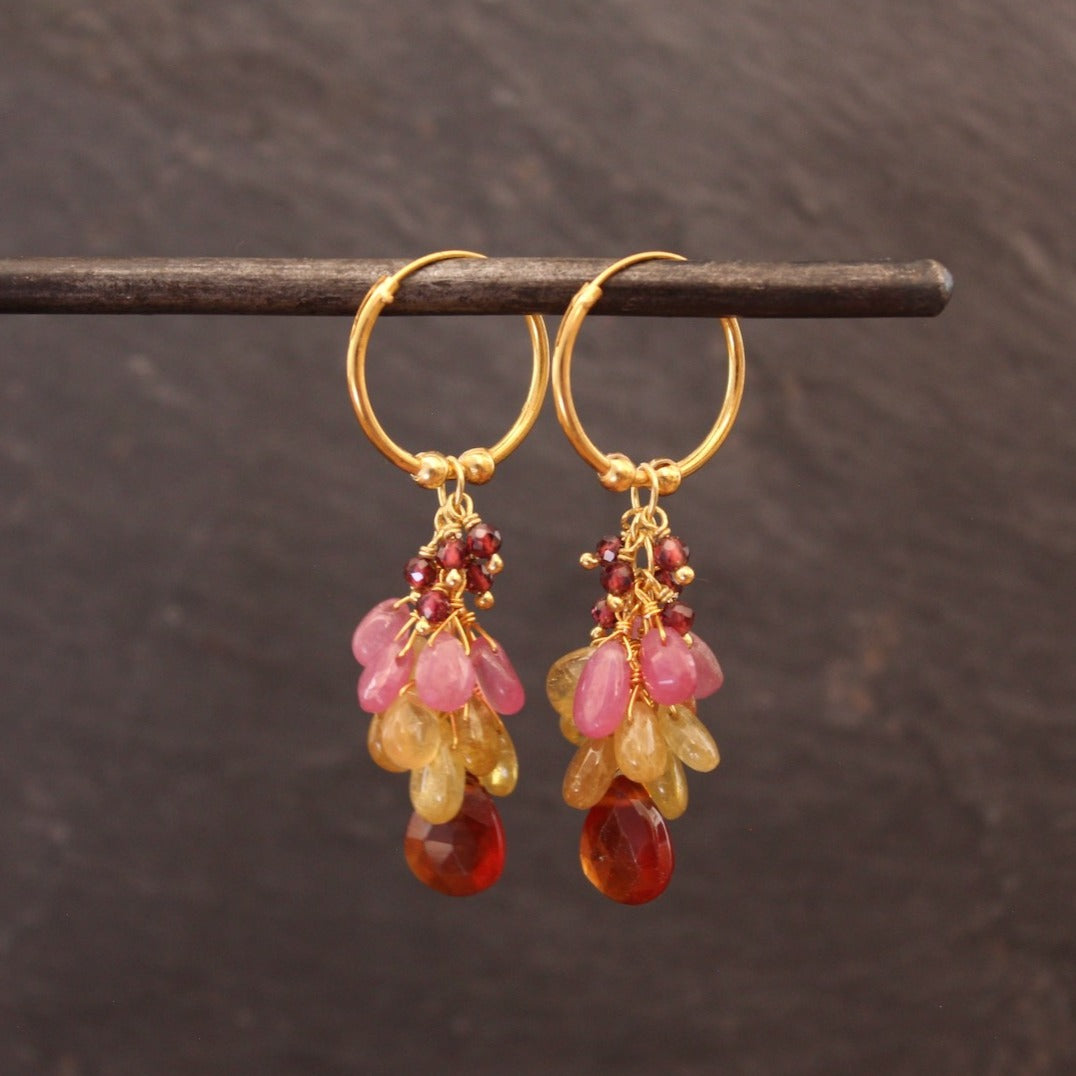Our collection of gemstone earrings feature studs, drops and hoops that are handcrafted in sterling silver and 18k gold vermeil. We use a beautiful range of hand-selected precious and semi-precious gemstones. From emerald, ruby and sapphire to tourmaline, turquoise, lapis lazuli and green onyx, there is a gemstone for every taste and style.