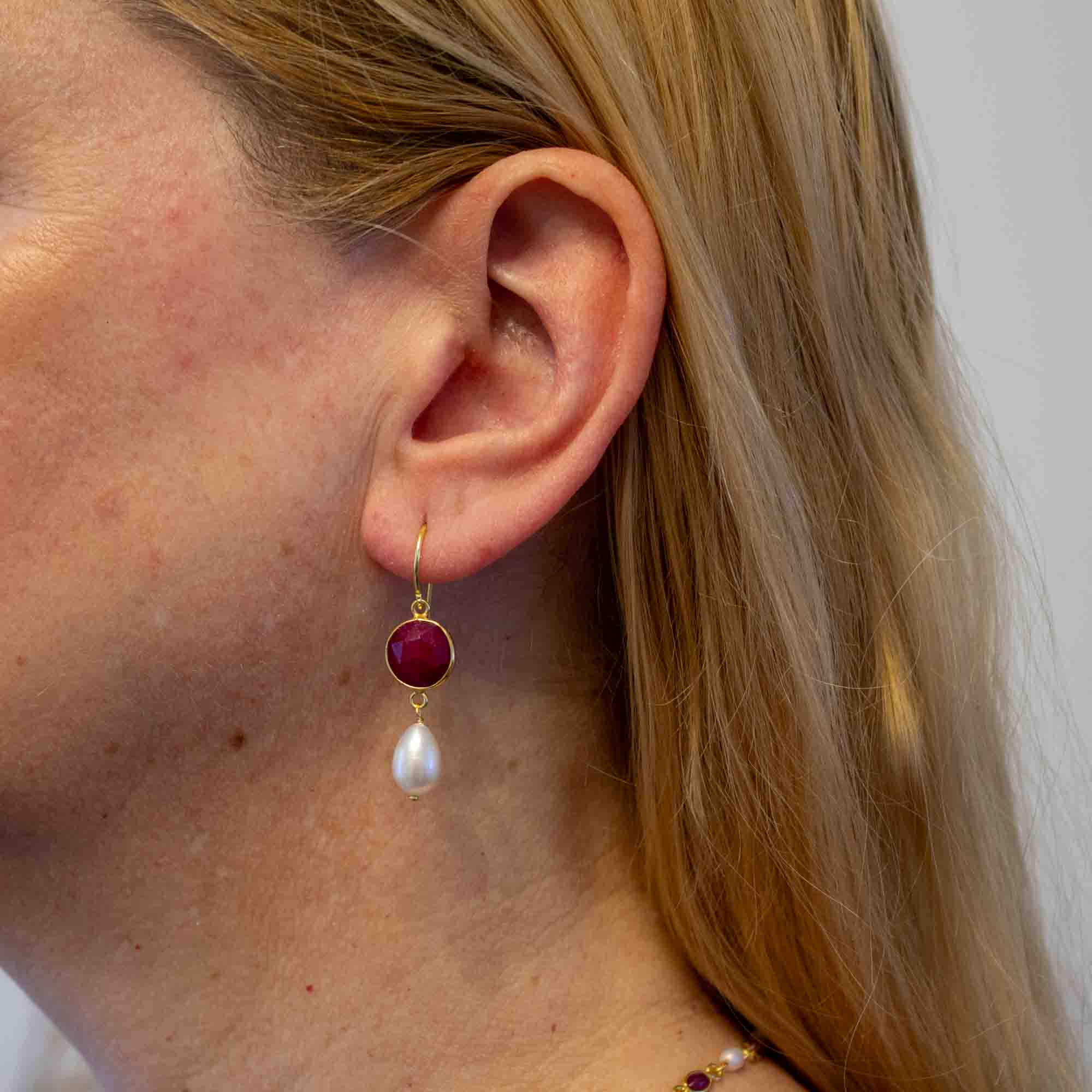 Gemstone and Pearl Lina Earrings in Gold Vermeil