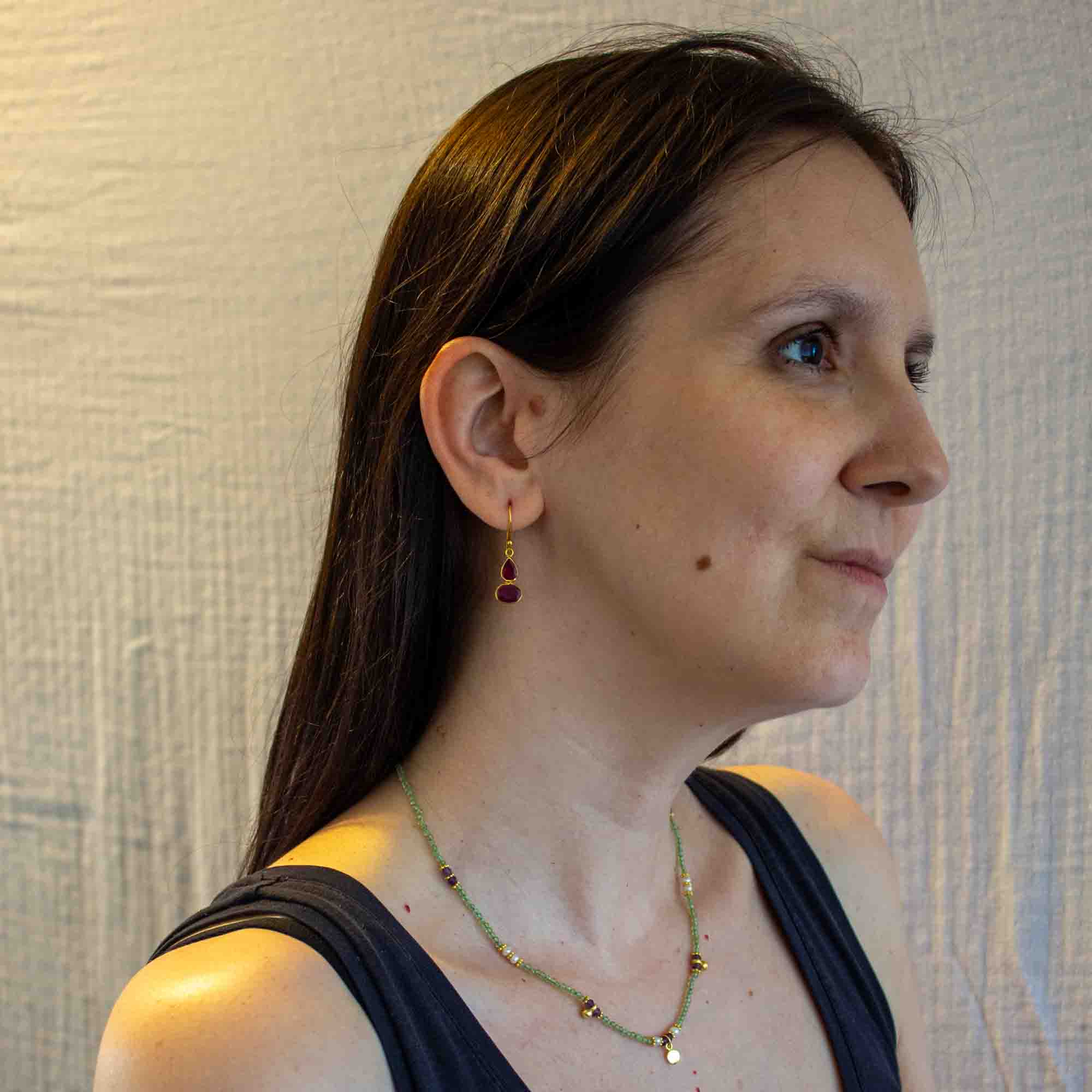 Ruby - the fiery red birthstone for the month of July. Explore our collection of earrings, necklaces and bracelets, handmade in sterling silver and 18k gold vermeil and adorned with this vibrant gemstone.