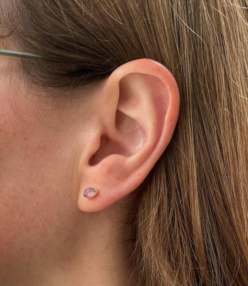 Very happy with the pink tourmaline studs. I love the gold and the slightly organic shape. They are pretty and a good everyday pair. The seller was amazing and very helpful when I had a question. Have bought from them multiple times now as love the style and quality of their earrings.