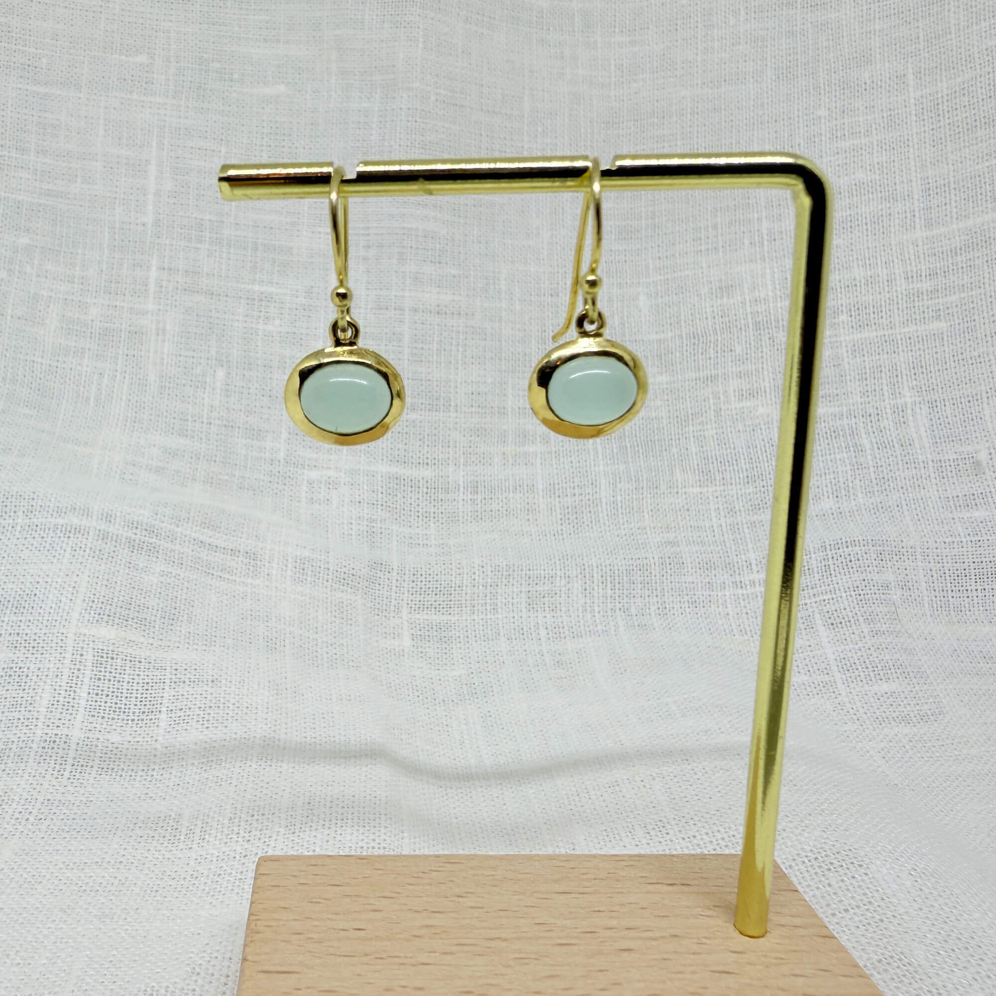 Aqua Chalcedony and Gold Oval Drop Earrings
