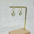 Simple gemstone drop earrings featuring cabochon aqua chalcedony stones, set in a 18k gold vermeil setting with a simple hook fitting. Easy to wear everyday dainty dangle earrings.