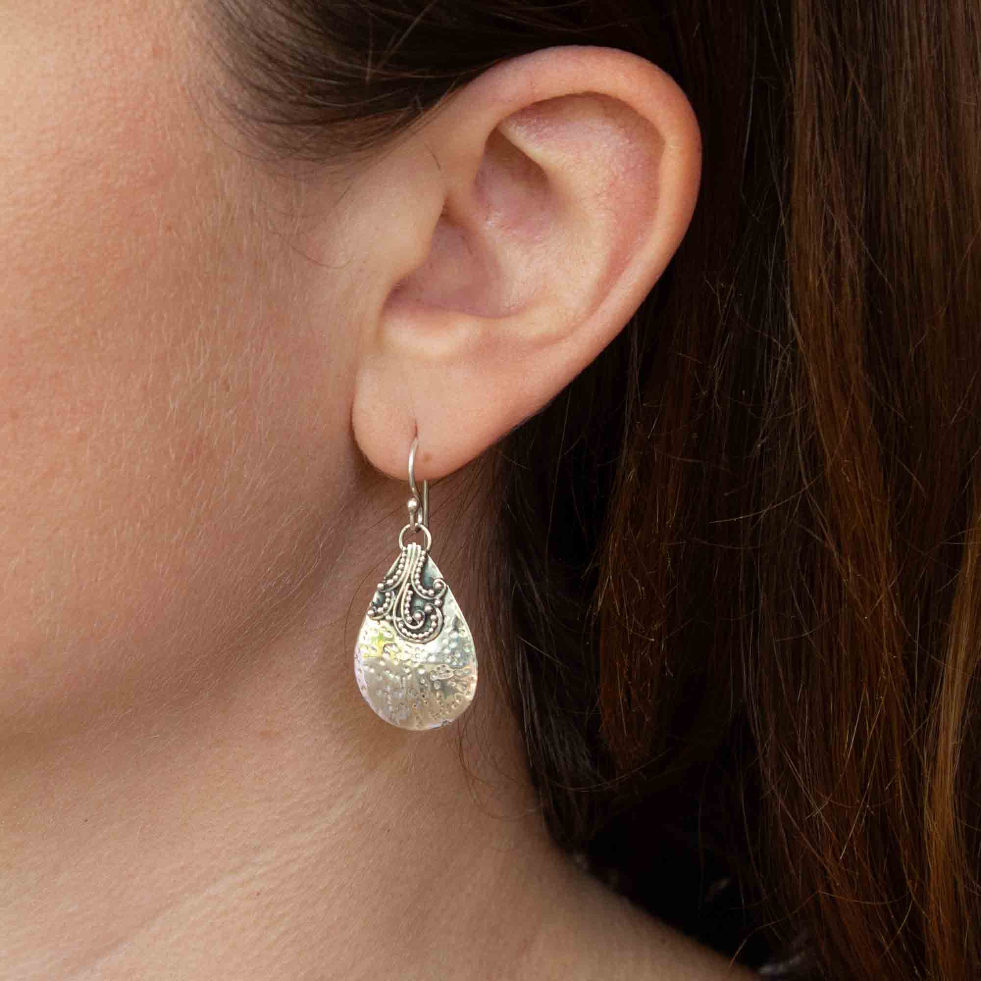 Hammered Silver Teardrop Earrings