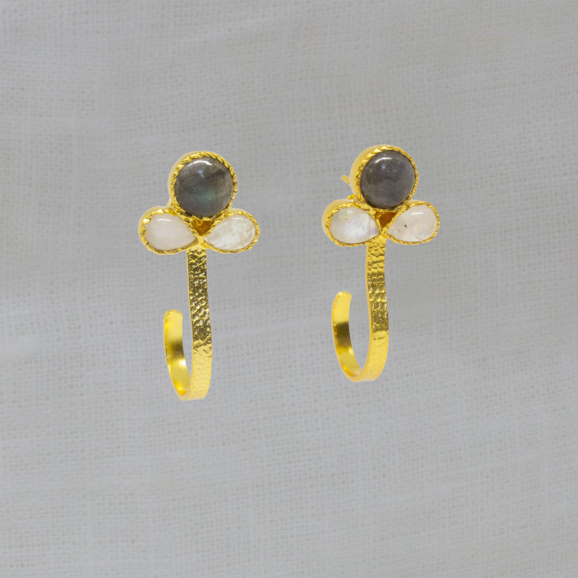 Labradorite and Rainbow Moonstone Textured Stud Hoop Earrings
