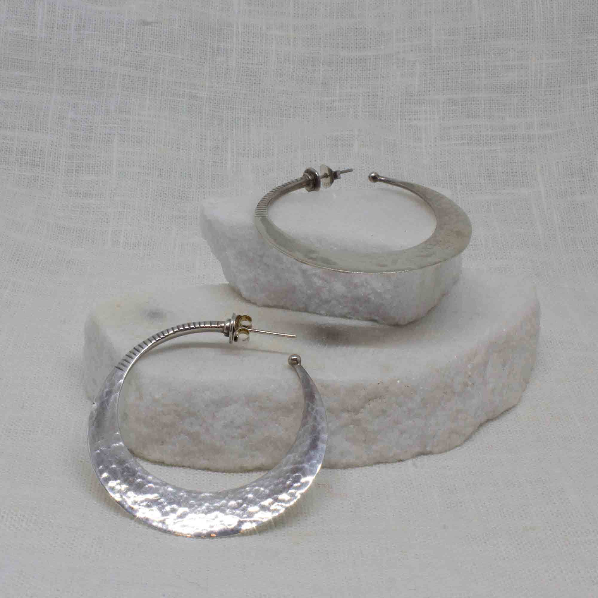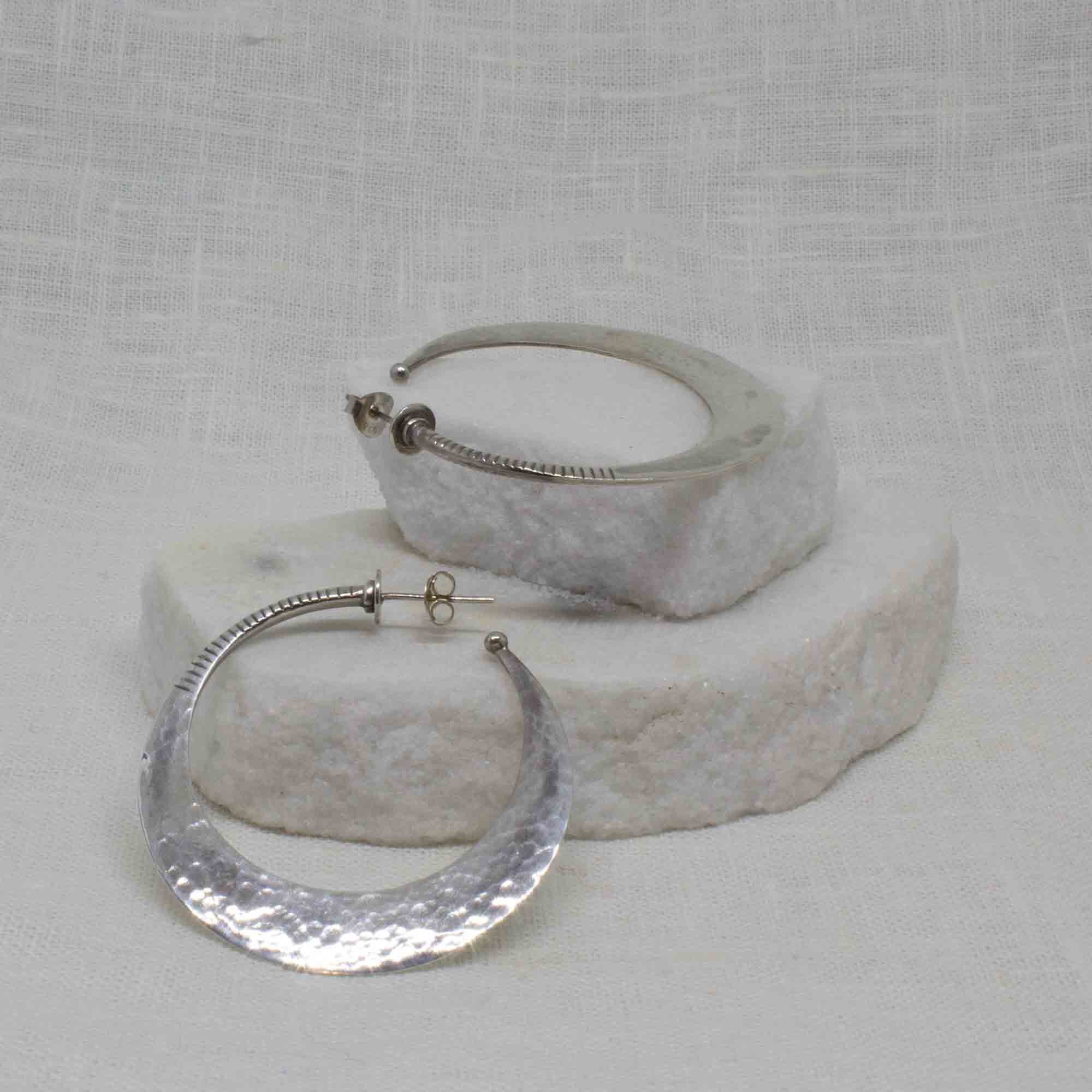 Make a statement with these large hoop earrings, handmade in sterling silver with a lovely hammered finish and stud fitting.