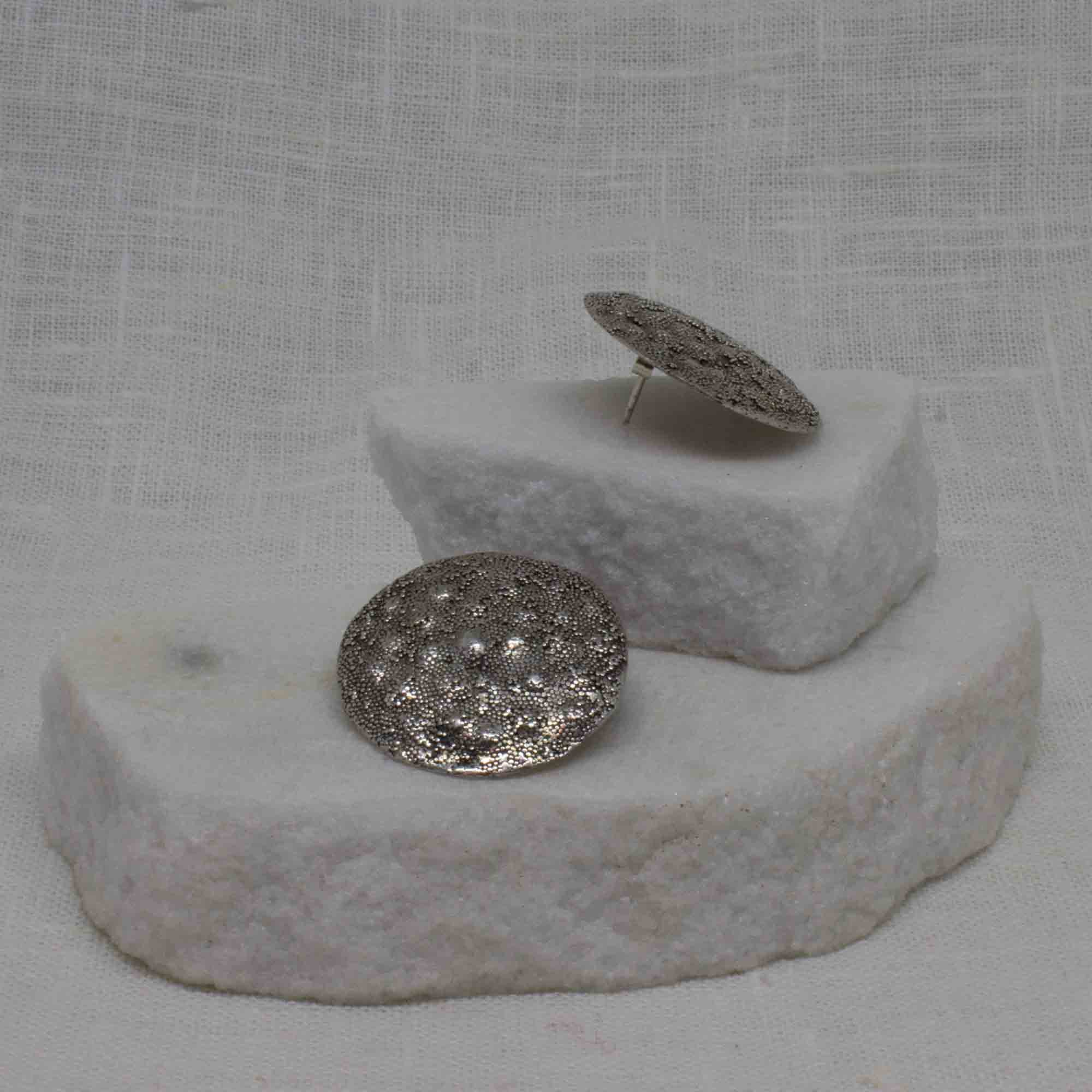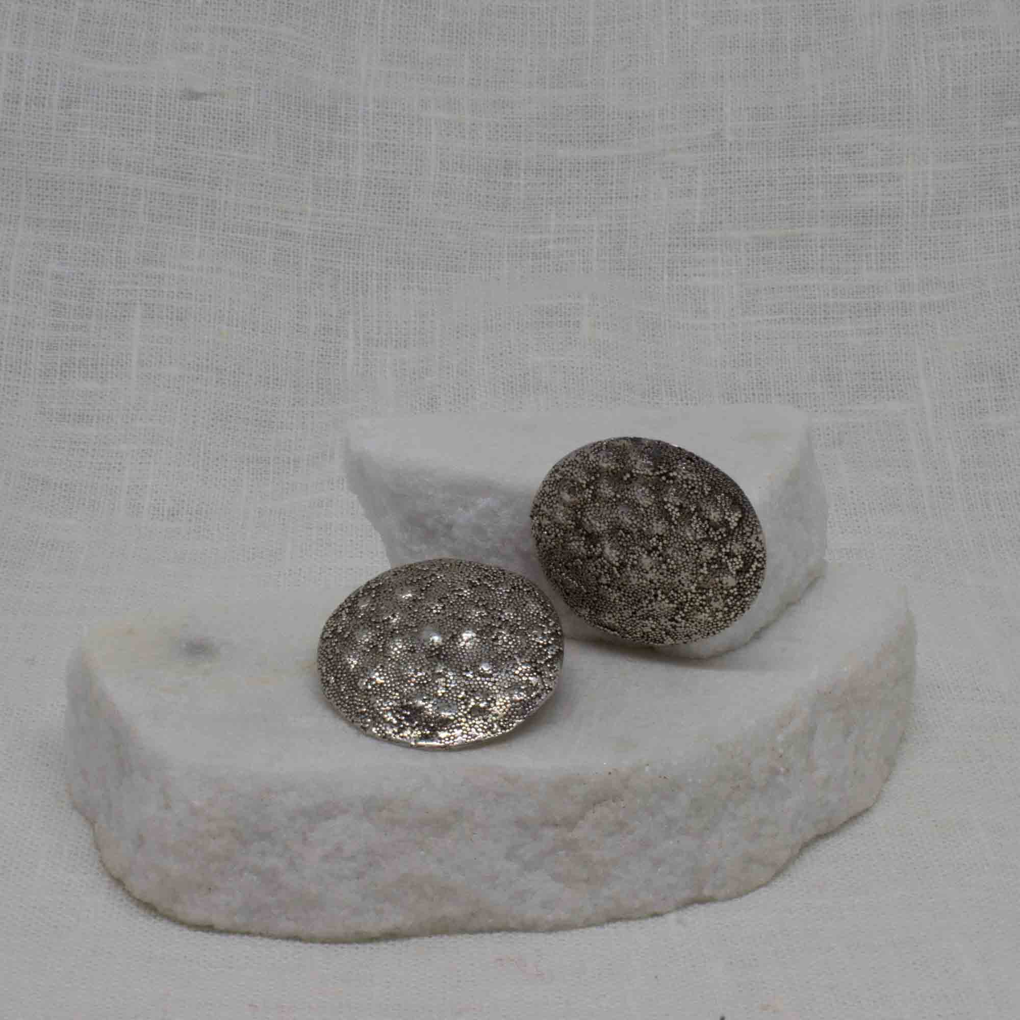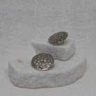Round disc stud earrings, lovingly handcrafted in sterling silver with textured granulation detail and a stud fitting. Easy to dress up or down!