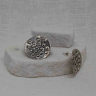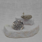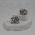 Lovely large disc stud earrings, reminiscent of lily pads. These statement stud earrings are handmade in sterling silver, with textured detail and a subtle oxidised finish.