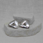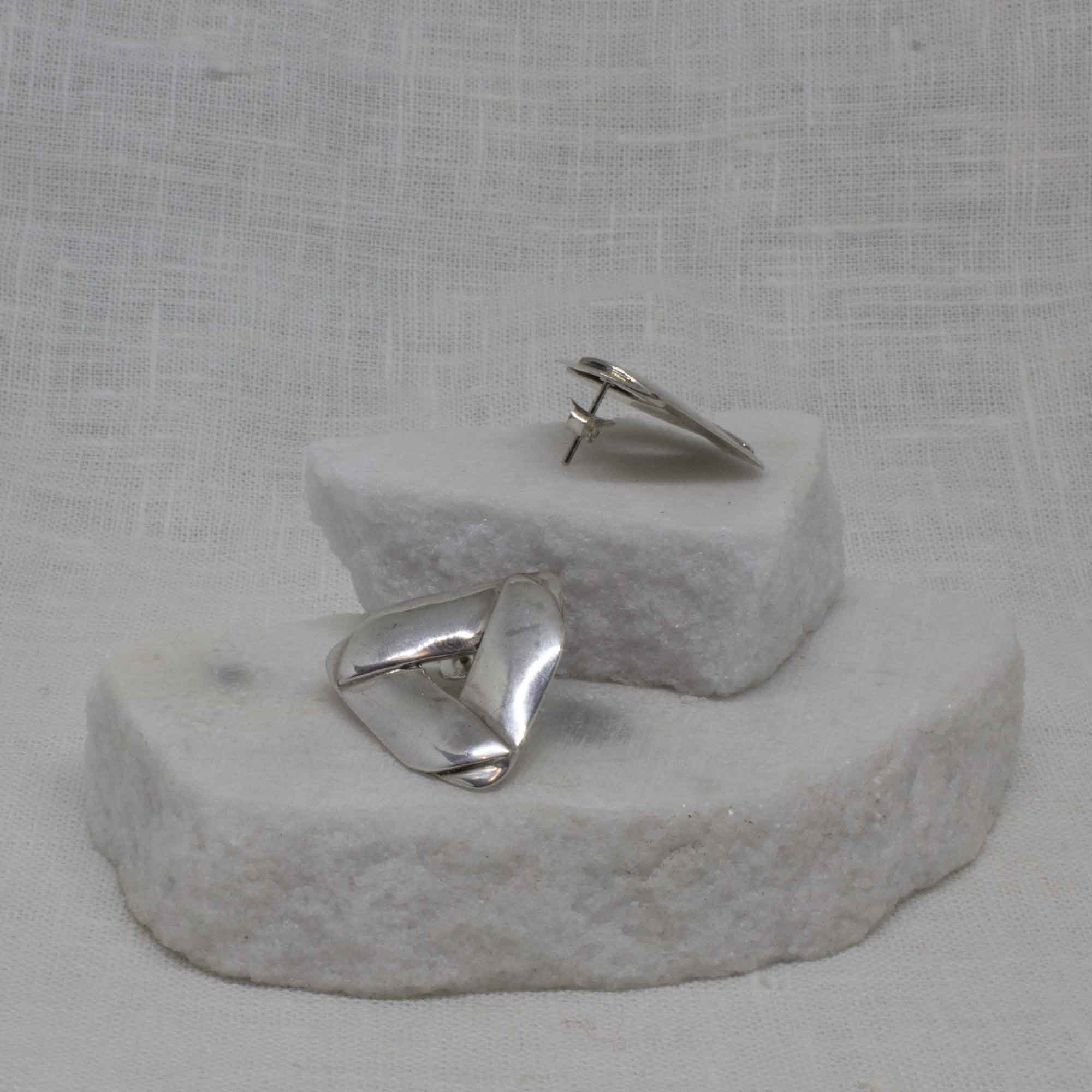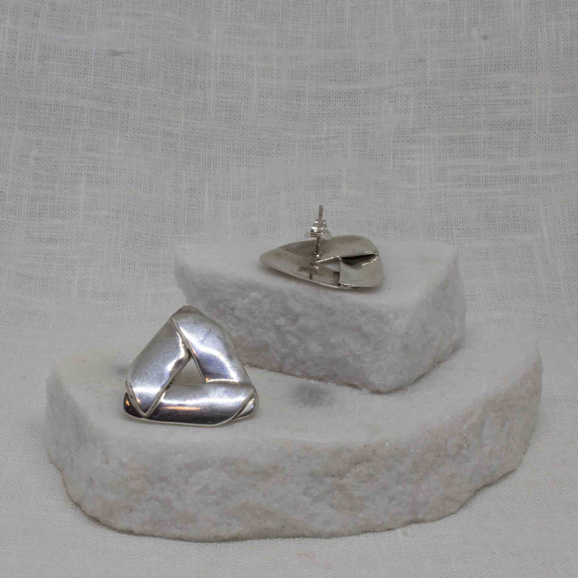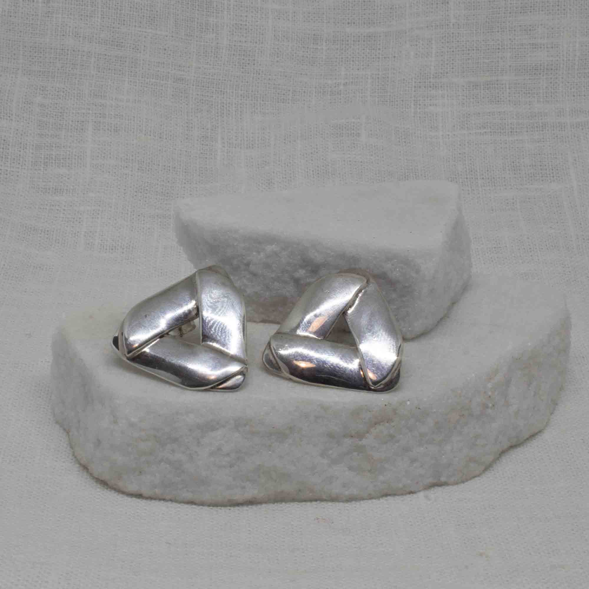 Triangle shaped stud earrings, handmade in sterling silver with infinity overlapping detail and a post fitting.