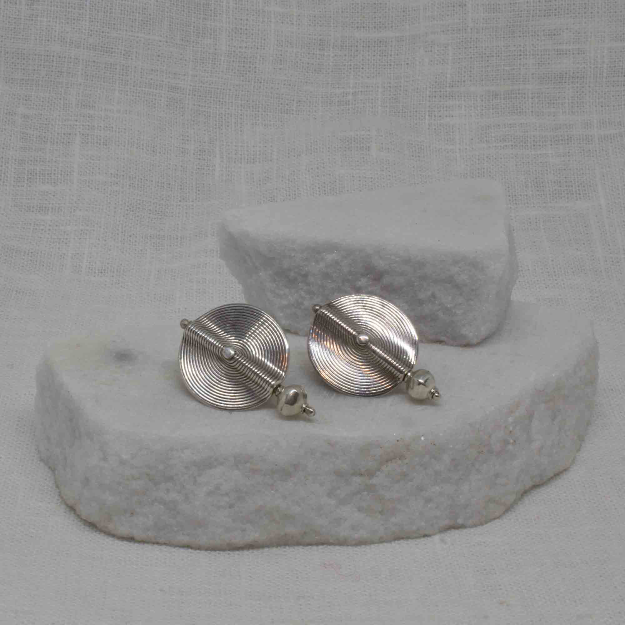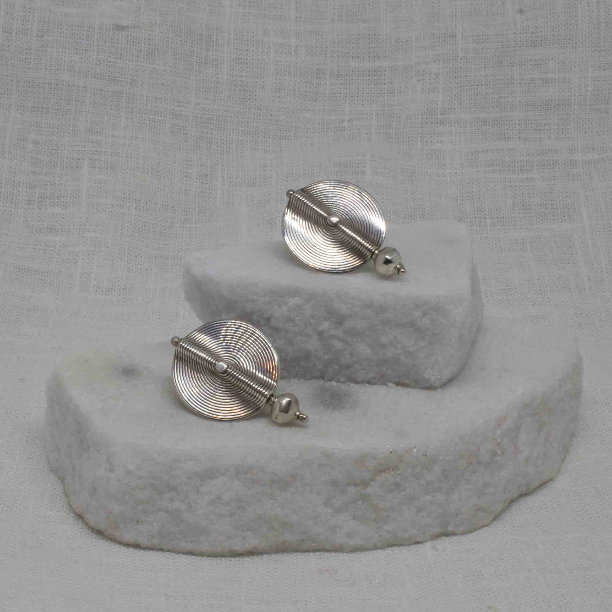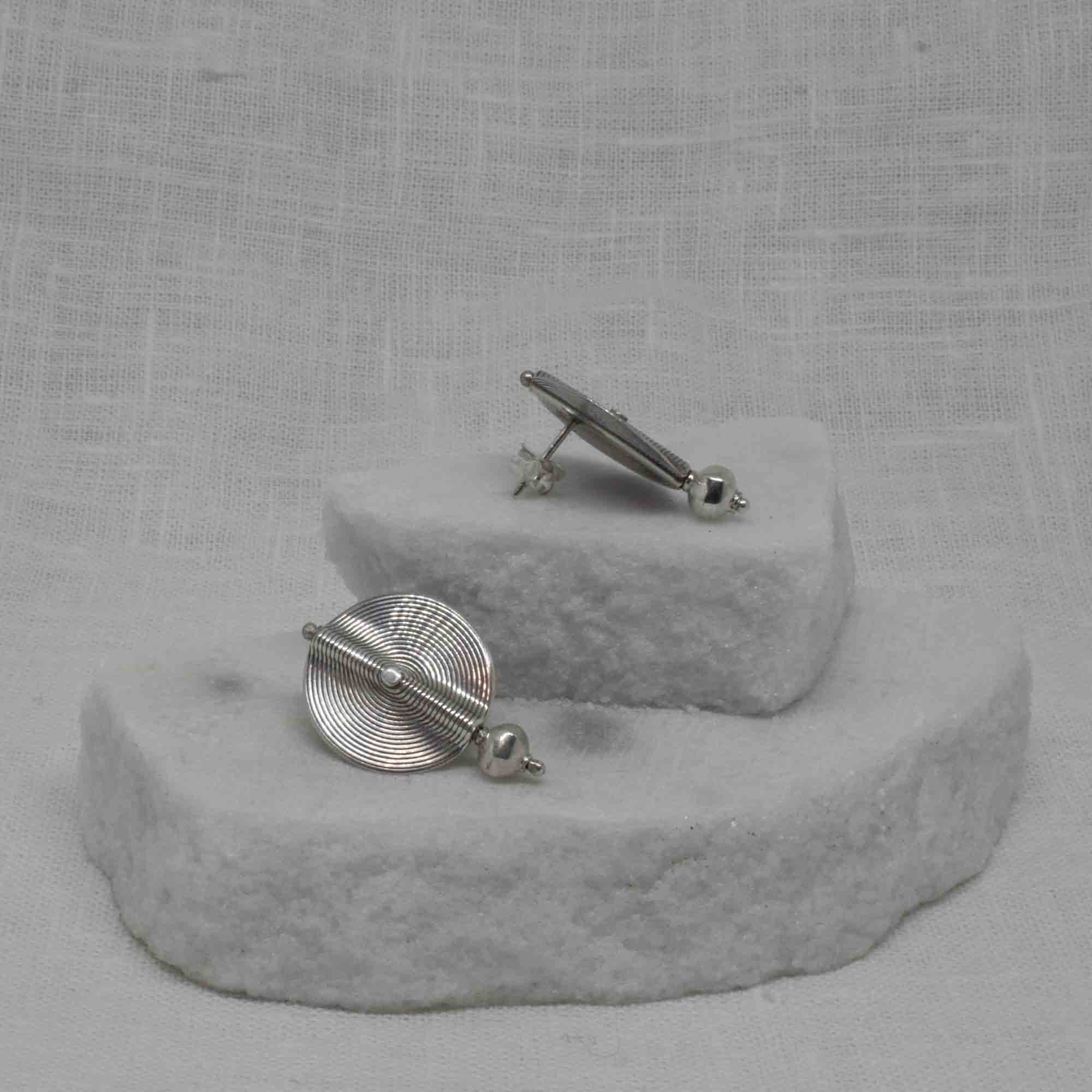 Our sterling silver wirework disc earrings are an easy-to-wear medium sized stud, with subtle wirework detail and a post fitting.