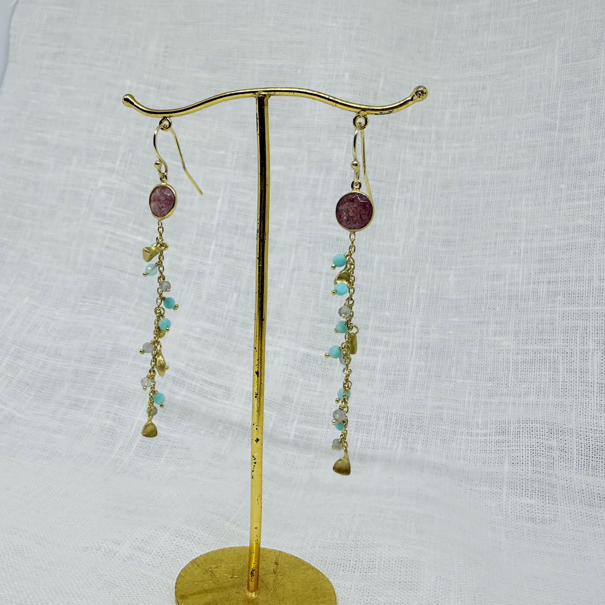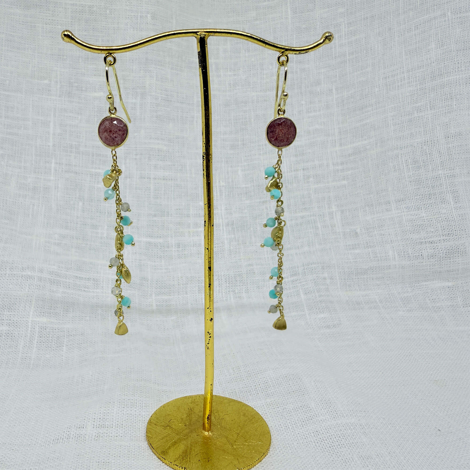 Strawberry Quartz, Amazonite and Labradorite Cluster Earrings