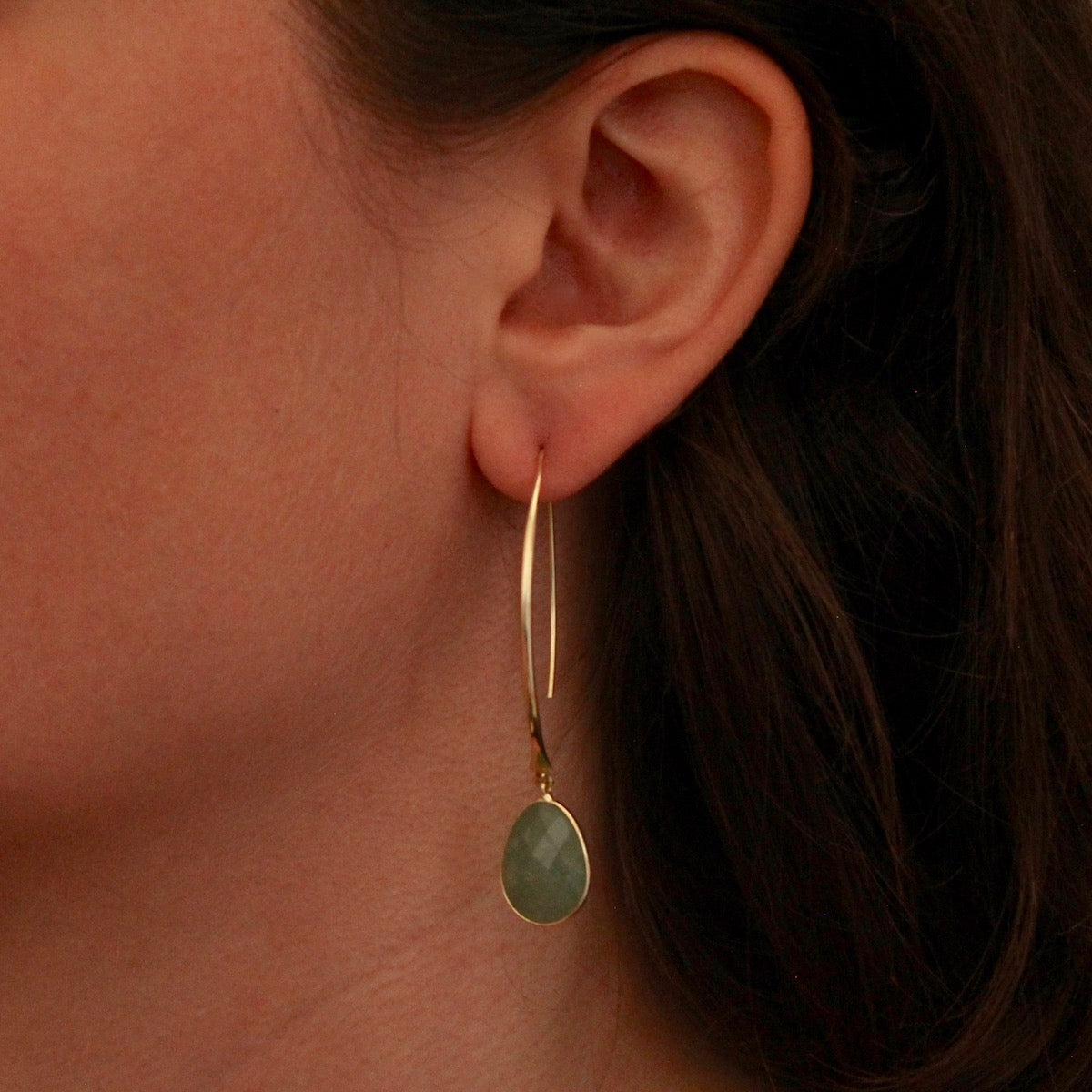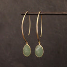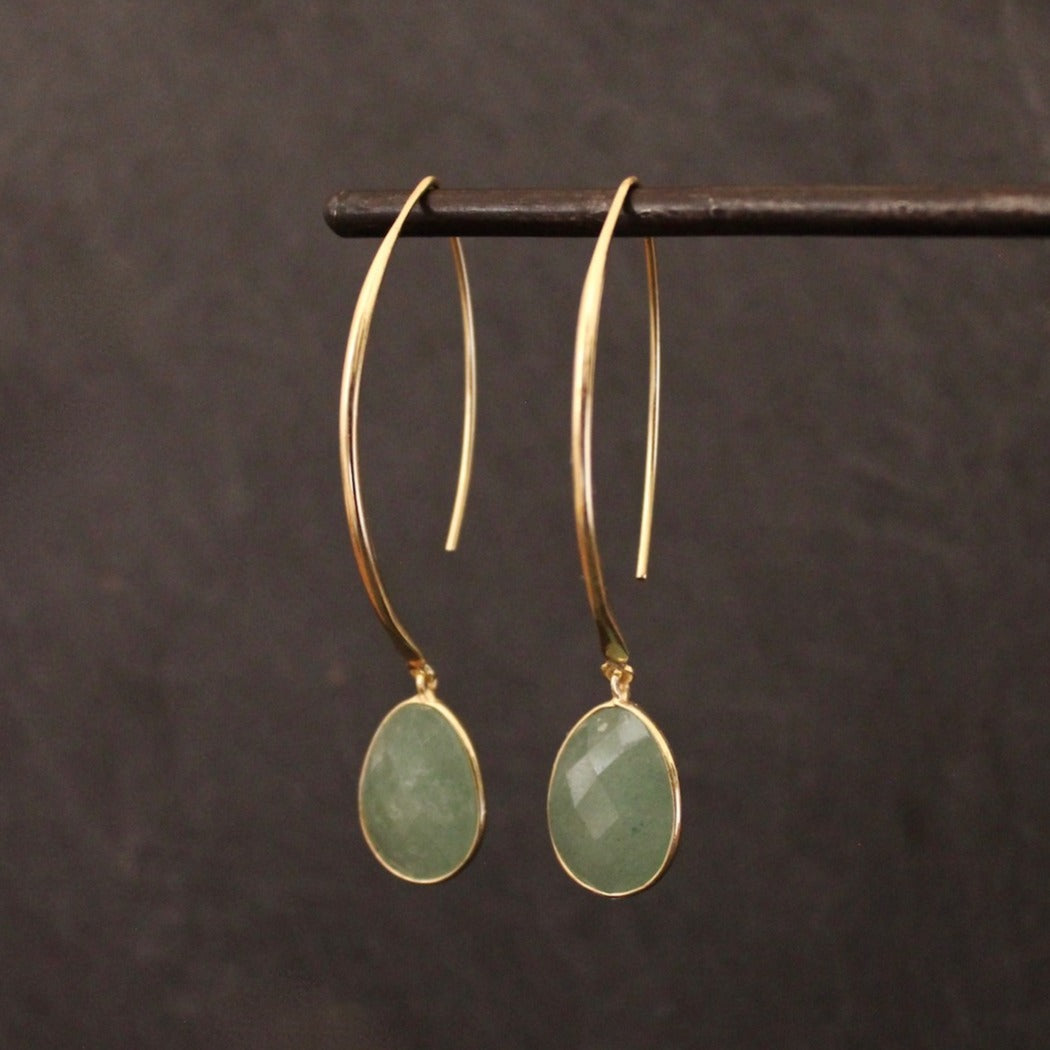 Marquise shaped hoop earrings with faceted aventurine charm drops.