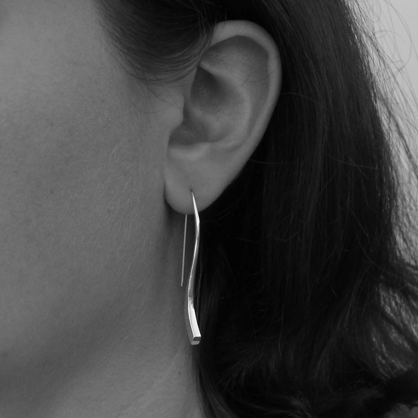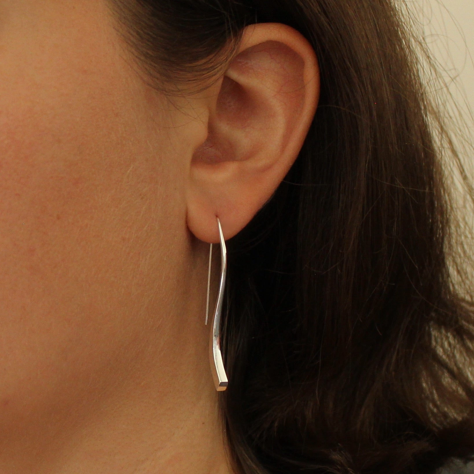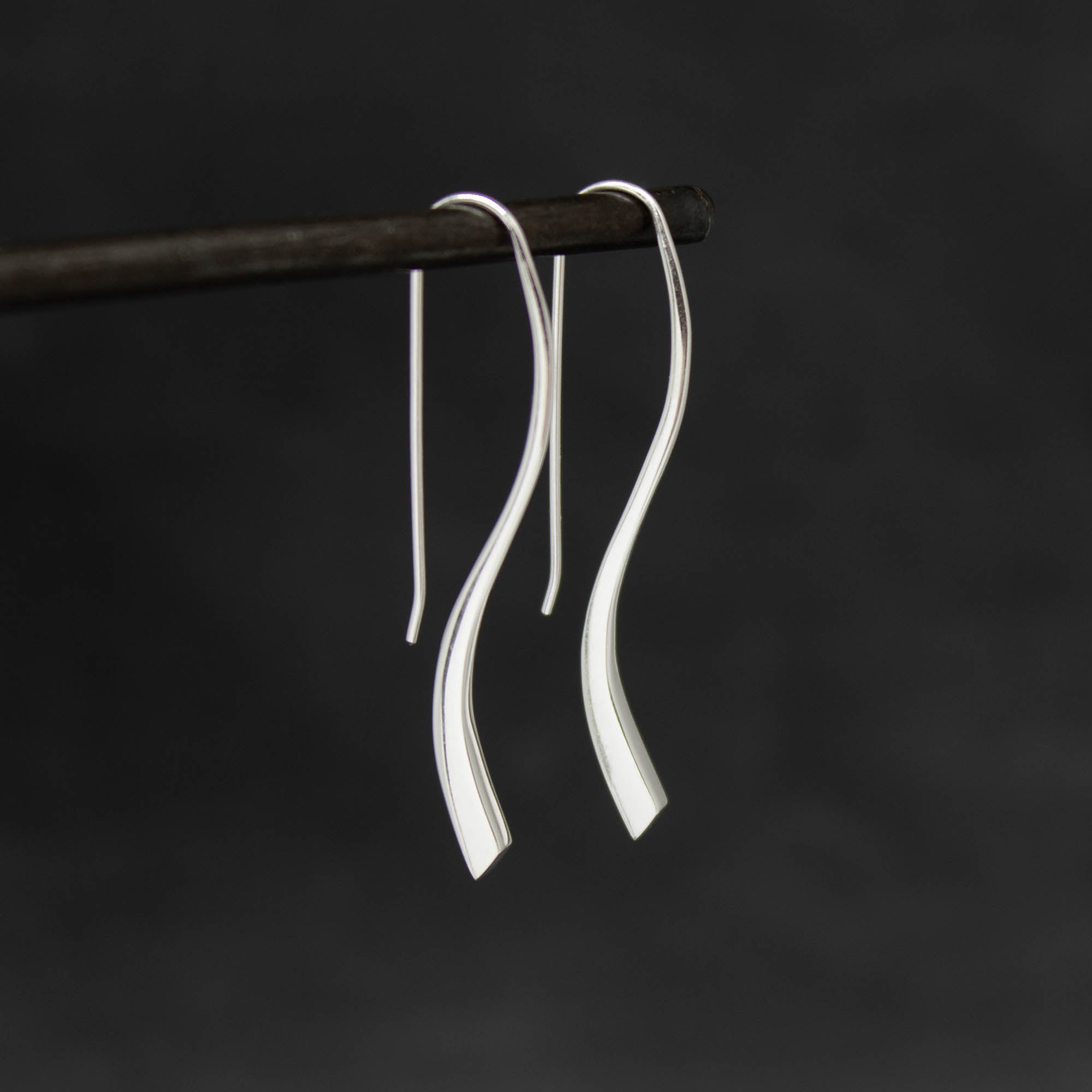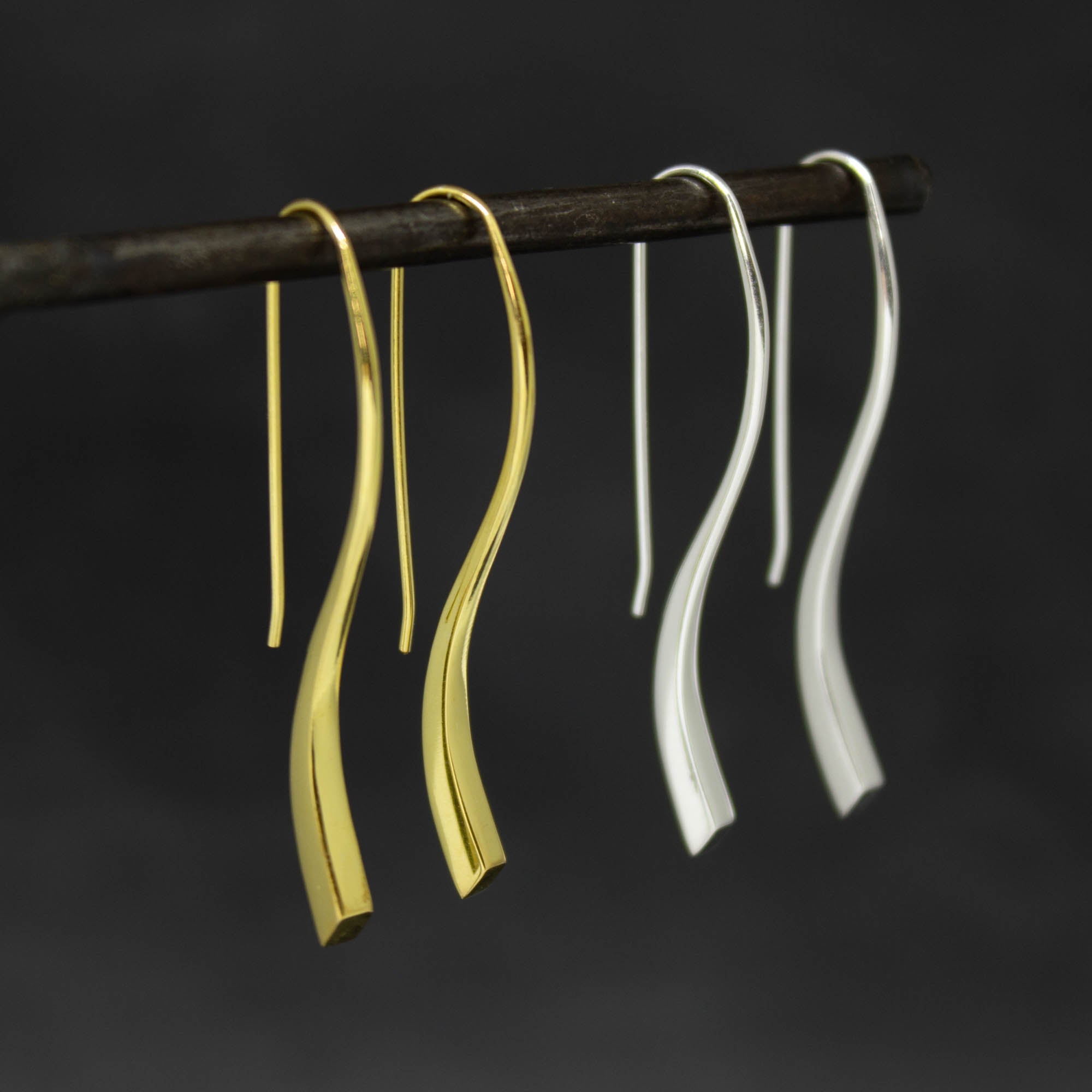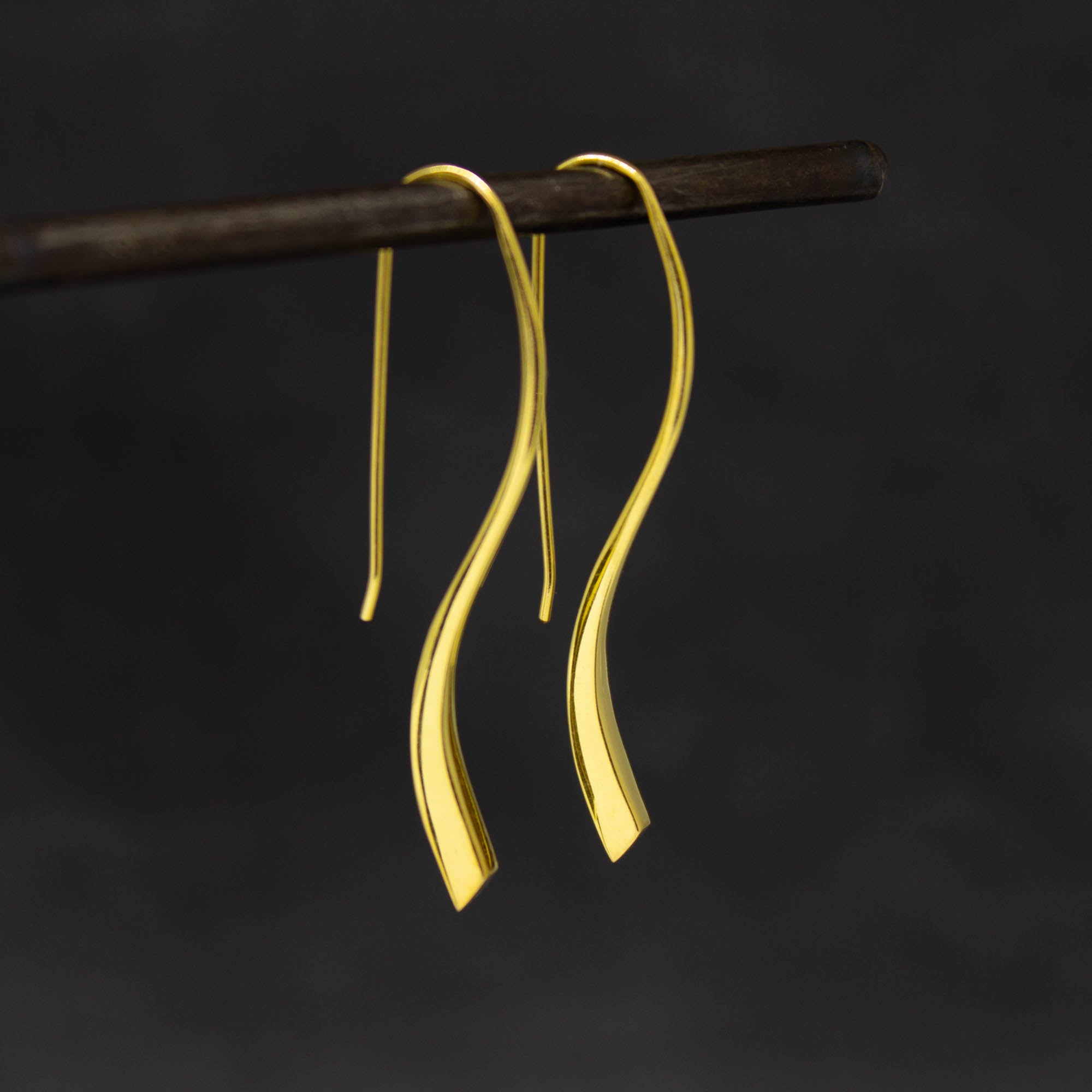 These stylish and elegant 'flick' drop earrings are handmade in 18ct gold plated silver, with either a brushed or shiny finished. Perfect for day and evening wear!