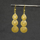 These triple drop teardrop earrings are handmade in sterling silver with 18k gold plating and delicate filigree detail. These long dangle earrings have a simple hook fitting and a lovely gentle movement when worn.