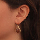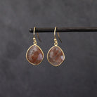 Irregular shaped faceted strawberry quartz in a simple gold vermeil setting, with a hook fitting.