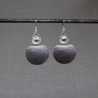 A stunning pair of statement earrings with a concave teardrop hook and textured granulation finish. Handmade in sterling silver, with oxidised detail.