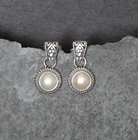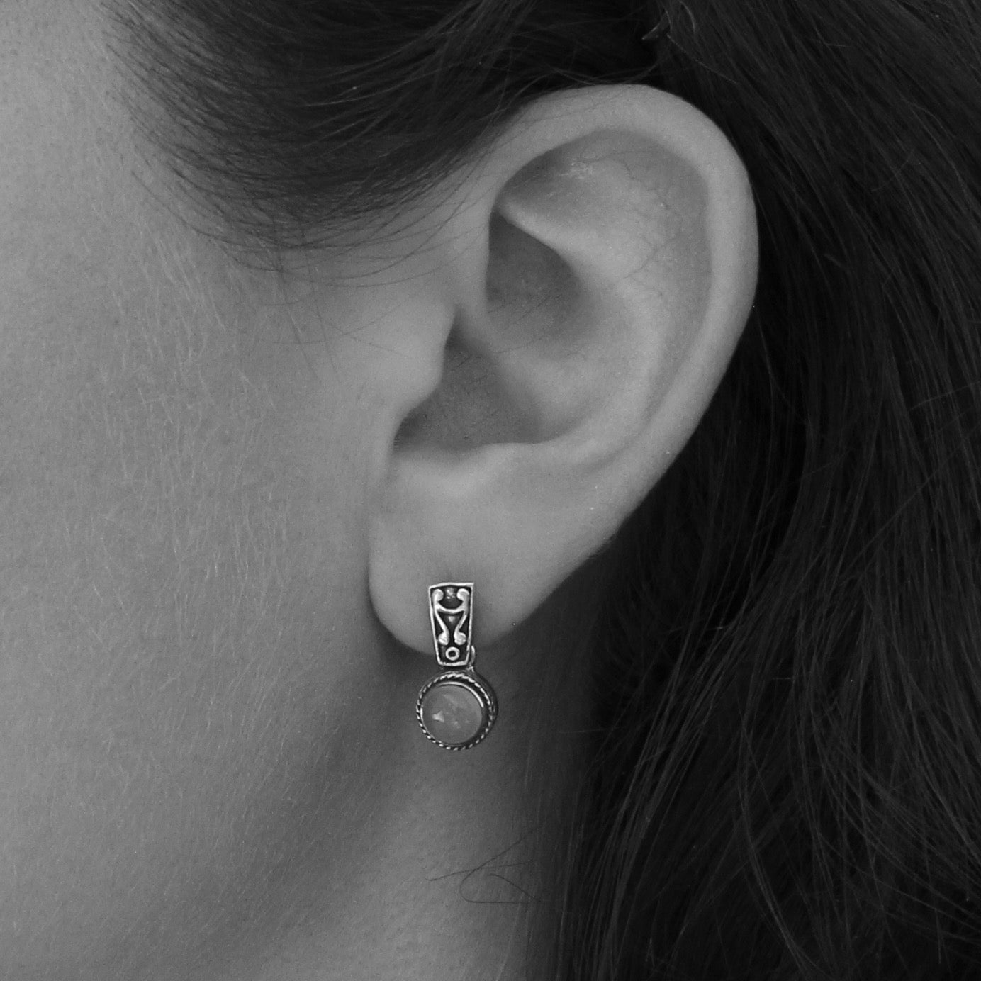 A delicate pair of stud earrings with handmade silver detail and a freshwater pearl drop.