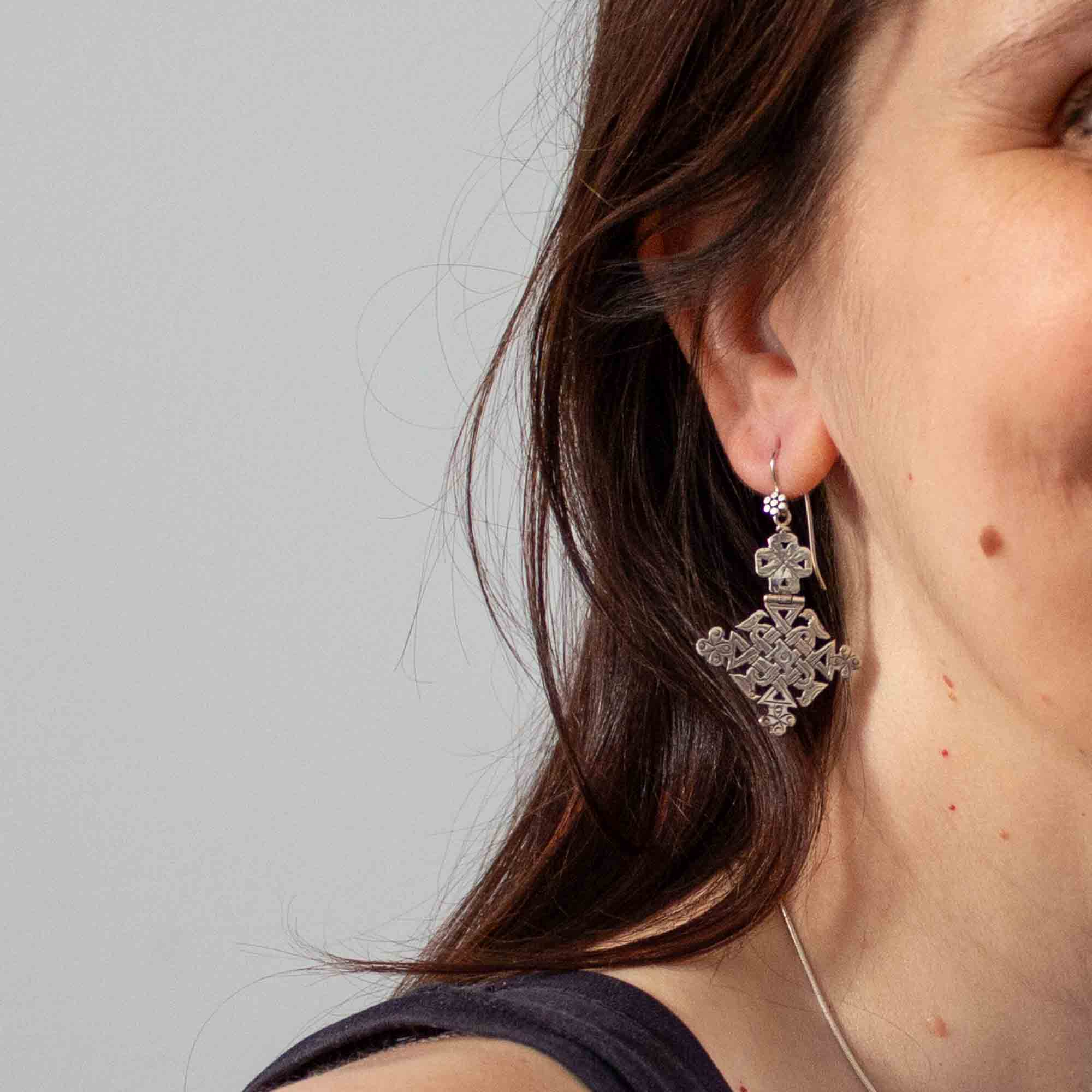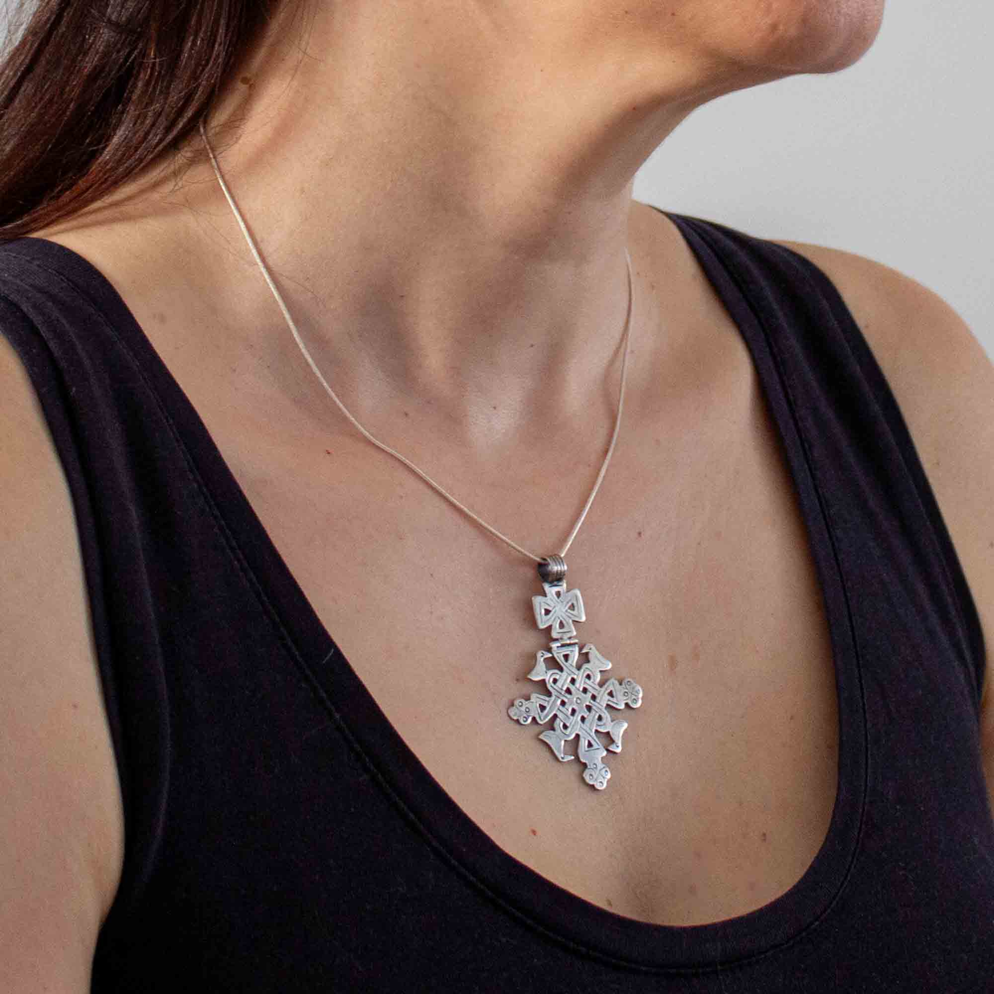 A stunning handmade sterling pendant inspired by a traditional coptic cross from Lalibela in Ethiopia which has been oxidised to give an antique finish.